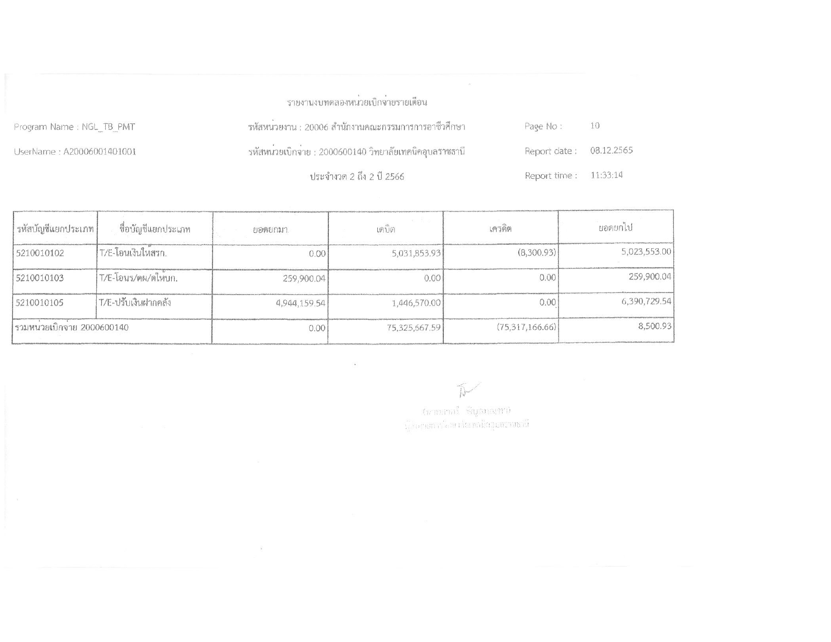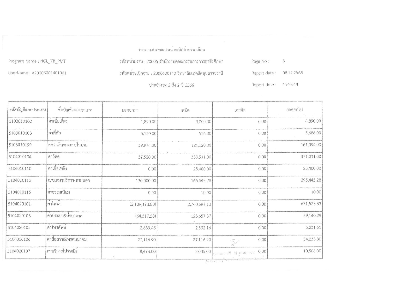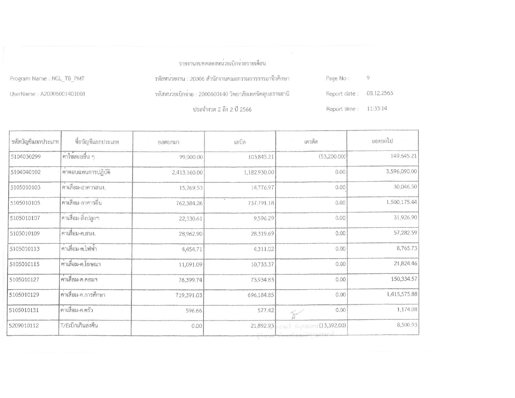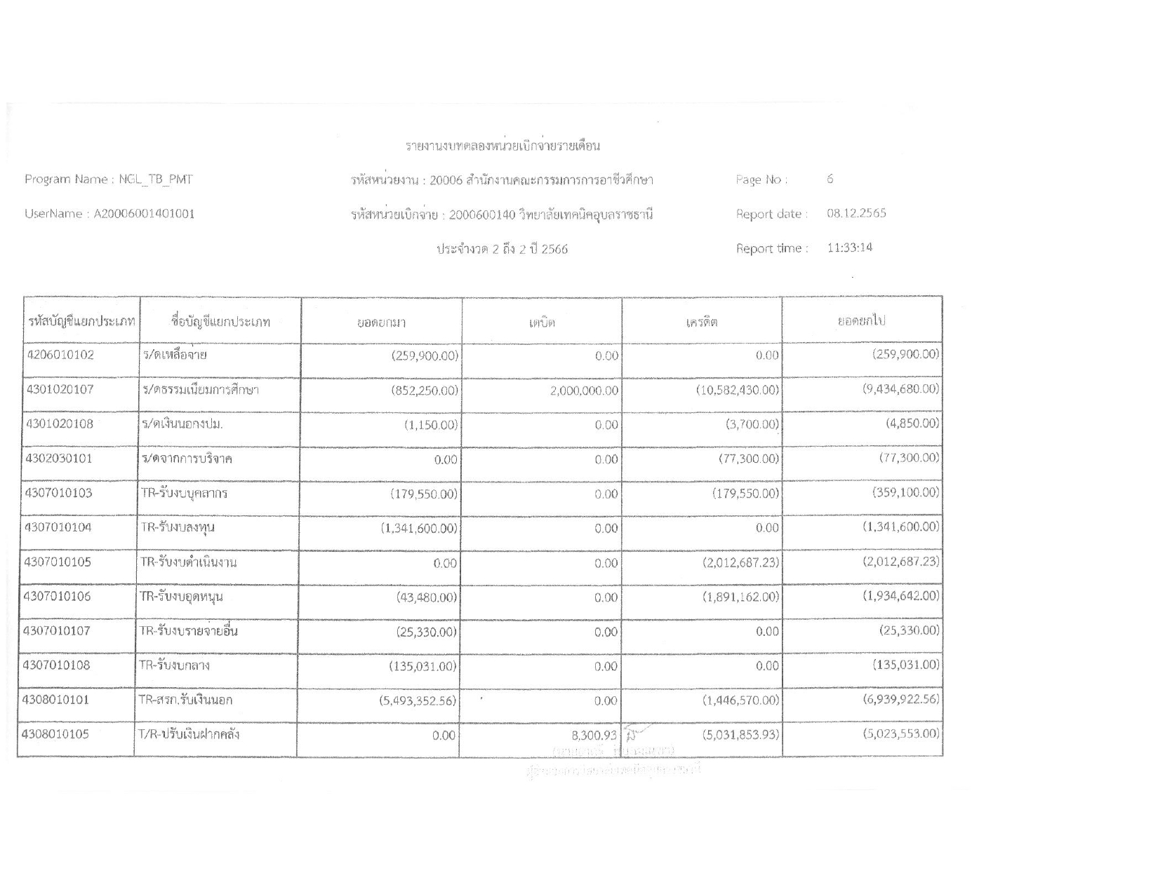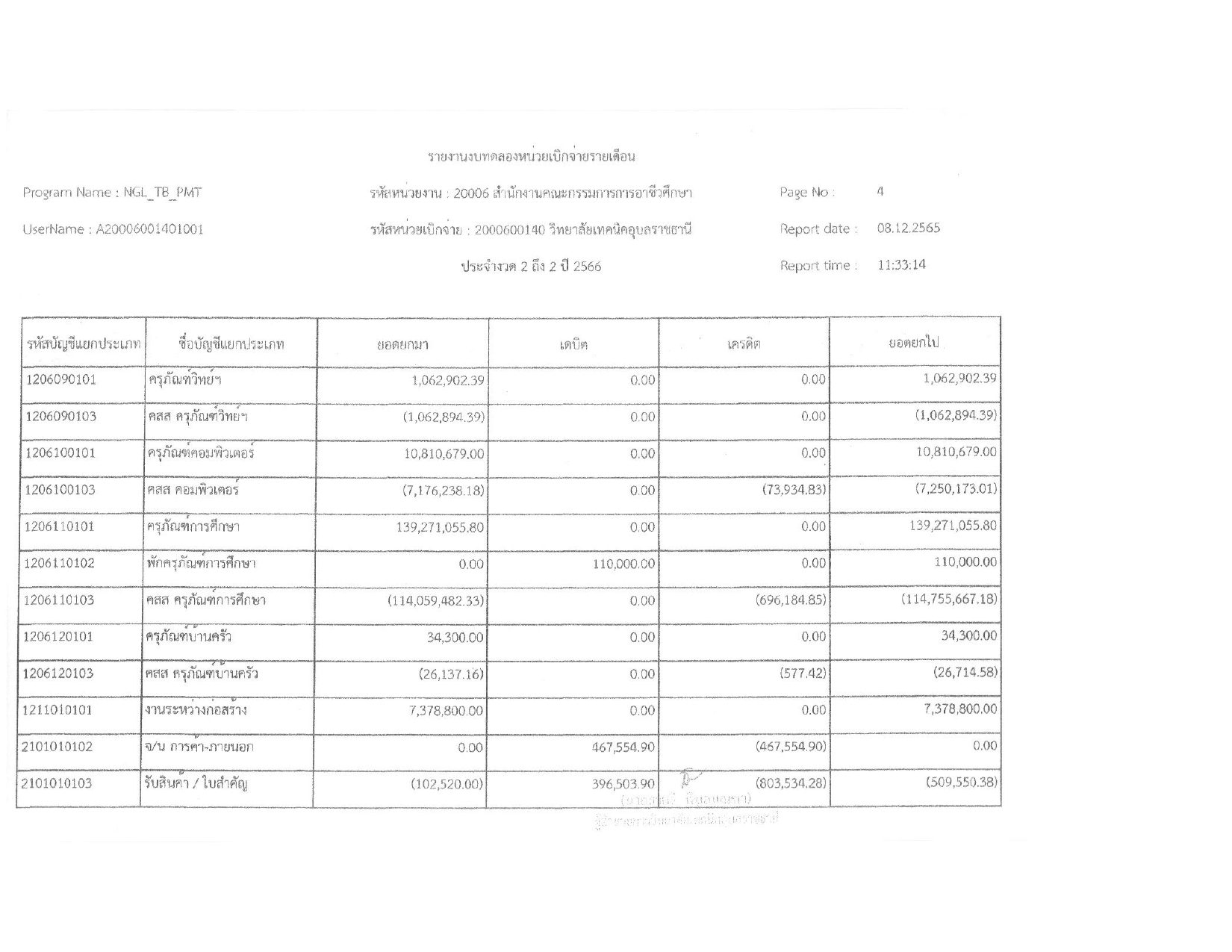 รายงานงบทดลองประจำเดือน พฤศจิกายน 2565