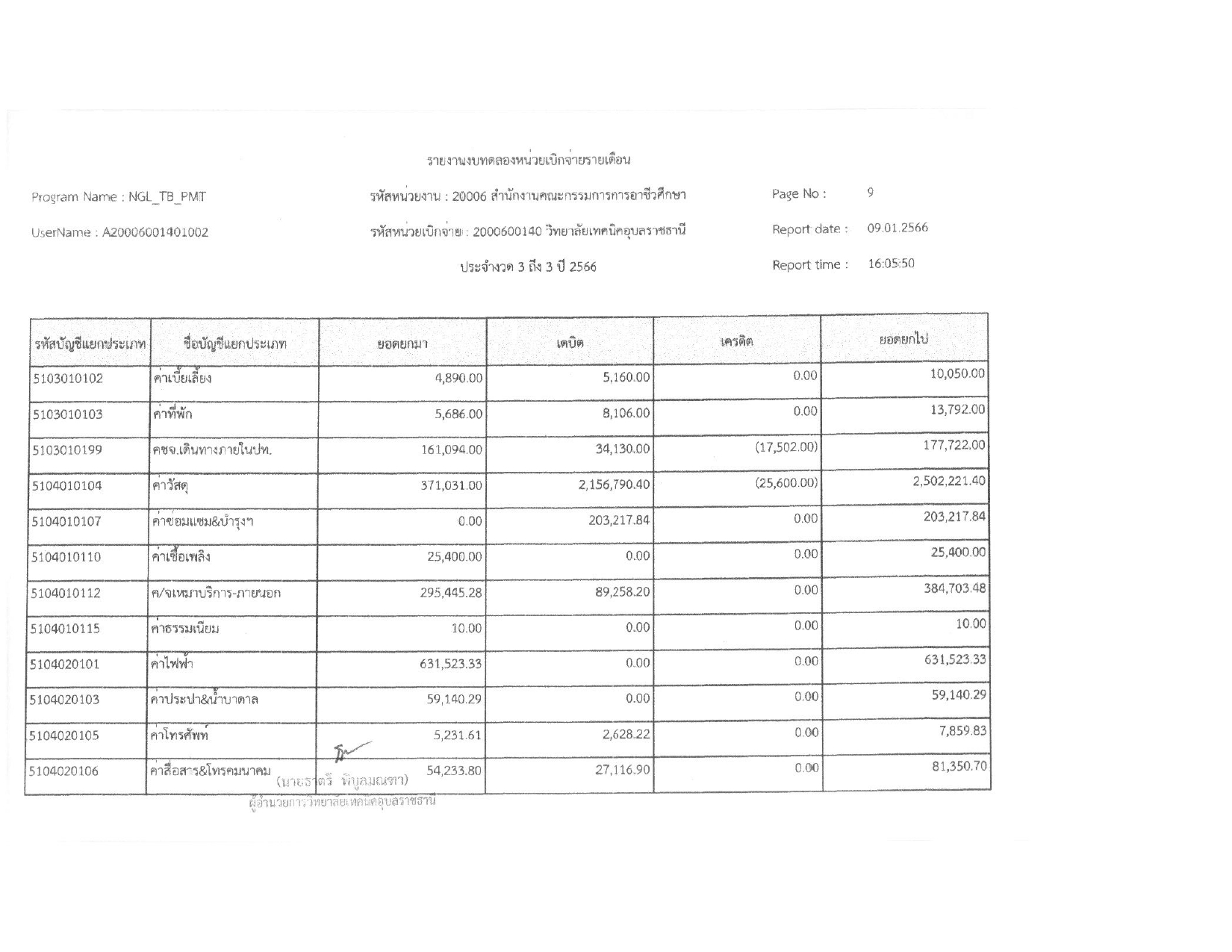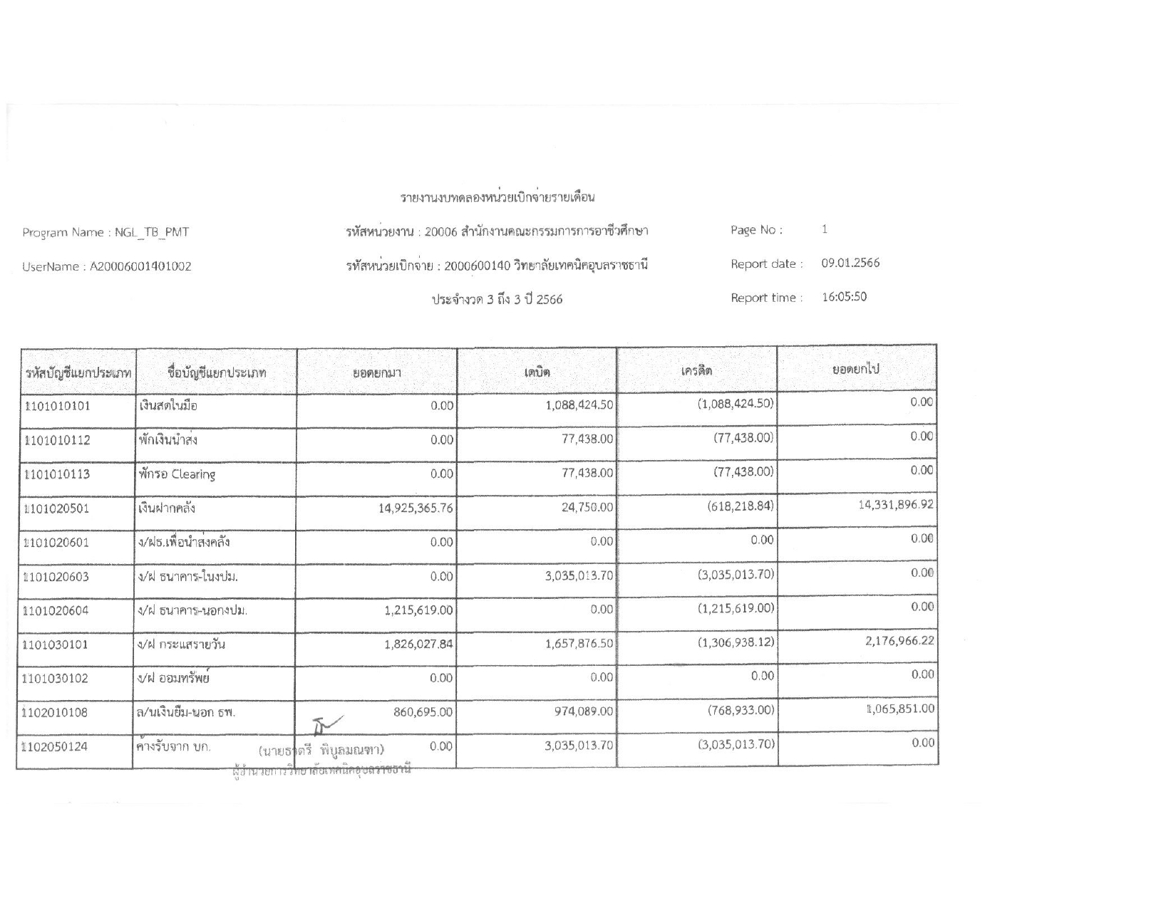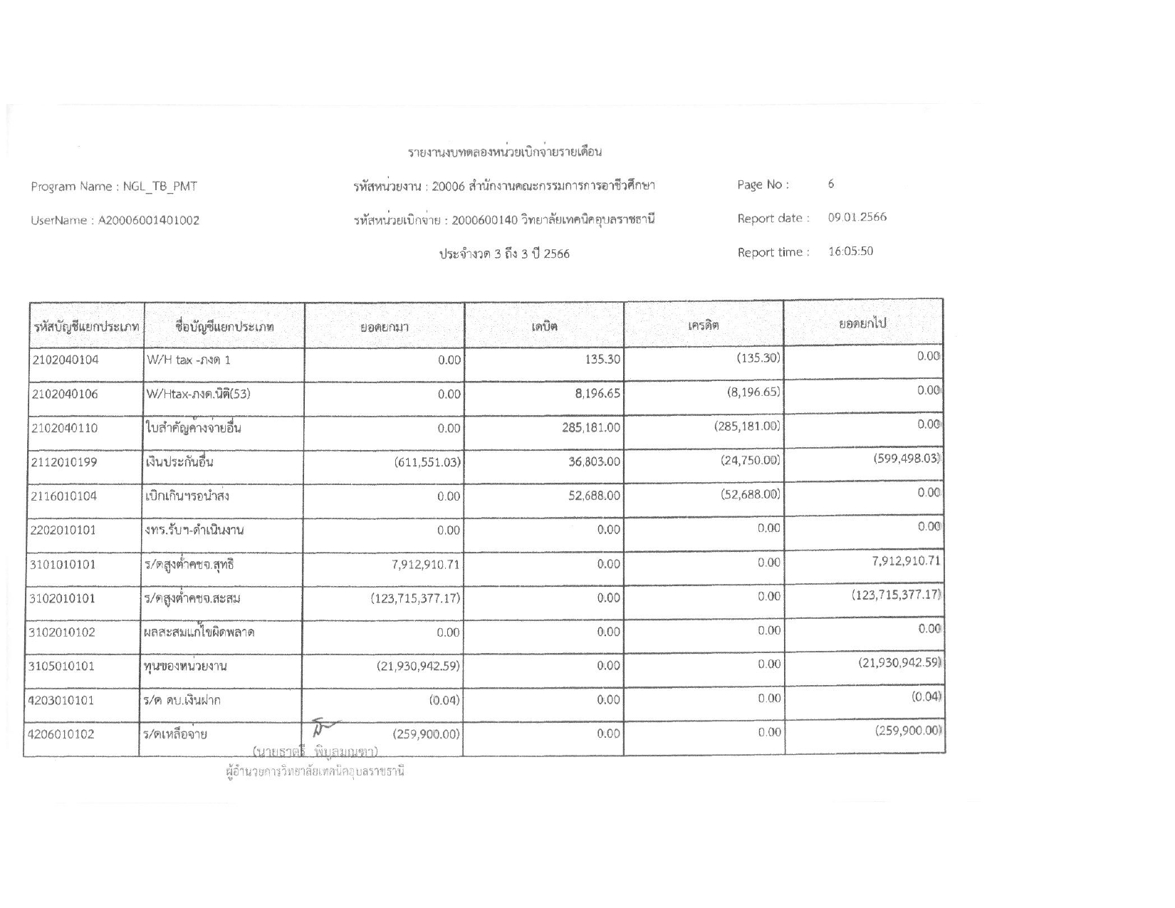 รายงานงบทดลองประจำเดือน ธันวาคม 2565