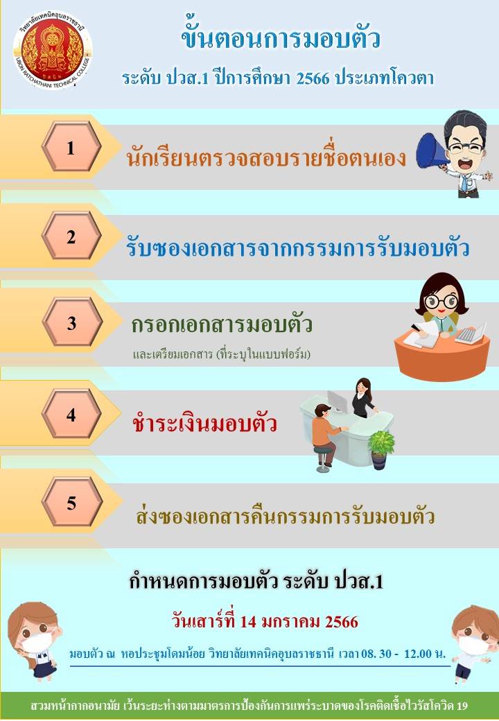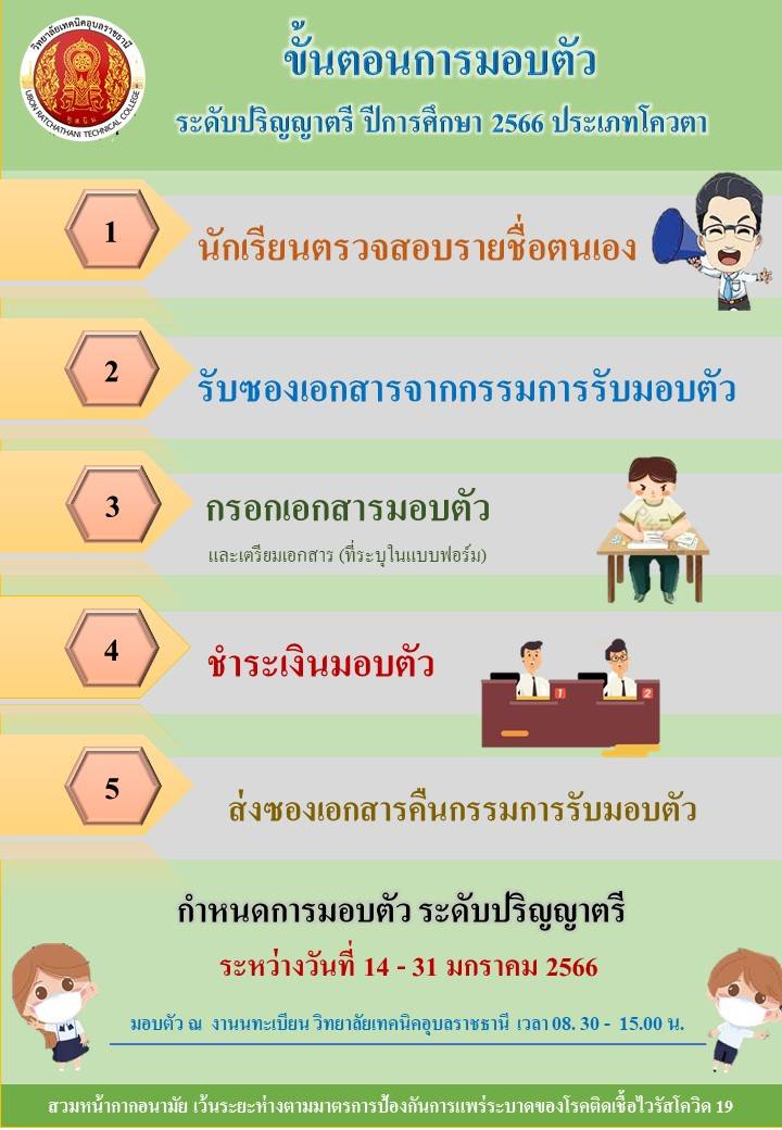 กำหนดวันรายงายตัวนักศึกษาใหม่วิทยาลัยเทคนิคอุบลราชธานี ระดับชั้น ปวช.1,ปวส.1 และ ปริญญาตรี