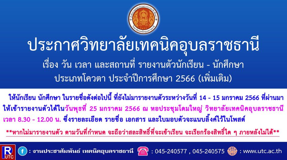 FacebookTwitterLine📣📣ประกาศวิทยาลัยเทคนิคอุบลราชธานี📣📣
