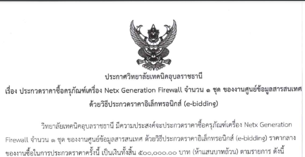 ประกาศรายชื่อผู้ชนะการเสนอราคา ประกวดราคาจ้างก่อสร้างรั้ววิทยาลัยเทคนิคอุบลราชธานี ด้วยวิธี ประกวดราคาอิเล็กทรนิกส์ (e-bidding)