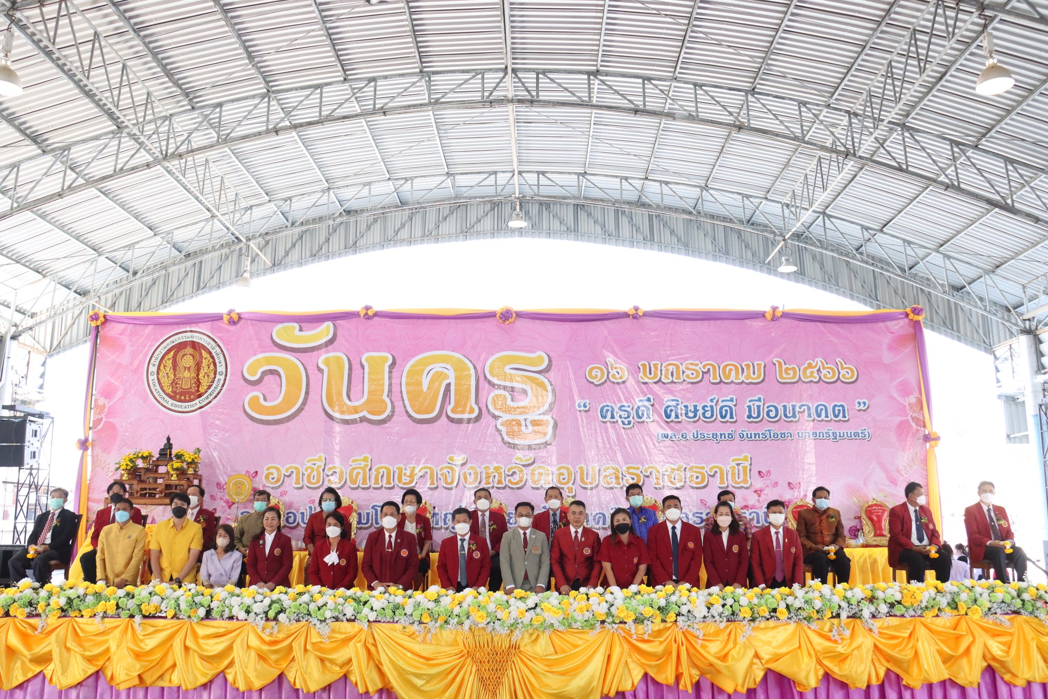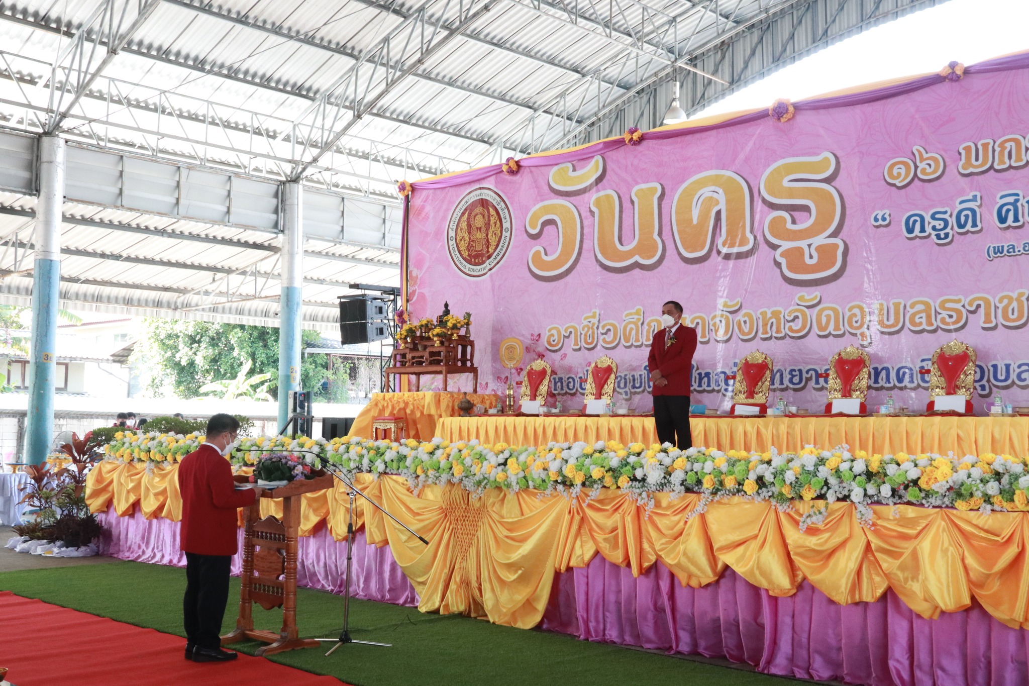 วันที่ ๑๖ มกราคม ๒๕๖๖ เวลา ๐๘.๓๐ น. นายธาตรี พิบูลมณฑา ผู้อำนวยการวิทยาลัยเทคนิคอุบลราชธานี ประธานกรรมการอาชีวศึกษาจังหวัดอุบลราชธานี นำคณะผู้บริหาร ครู และบุคลากรทางการศึกษาสังกัดอาชีวศึกษาจังหวัดอุบลราชธานี ร่วมพิธีเชิดชูเกียรติ เนื่องในโอกาสวันครู ครั้งที่ ๖๗ ประจำปีพุทธศักราช ๒๕๖๖ ในการนี้ได้รับเกียรติจาก นายลิขิต พลเหลา ผู้อำนวยการสถาบันการอาชีวศึกษาภาคตะวันออกเฉียงเหนือ ๔ เป็นประธานในพิธี ทั้งนี้เพื่อเชิดชูเกียรติผู้บริหาร ครู และบุคลากรทางการศึกษา สถานศึกษาในสังกัดอาชีวศึกษาจังหวัดอุบลราชธานีทั้งภาครัฐ และเอกชนอีกด้วย