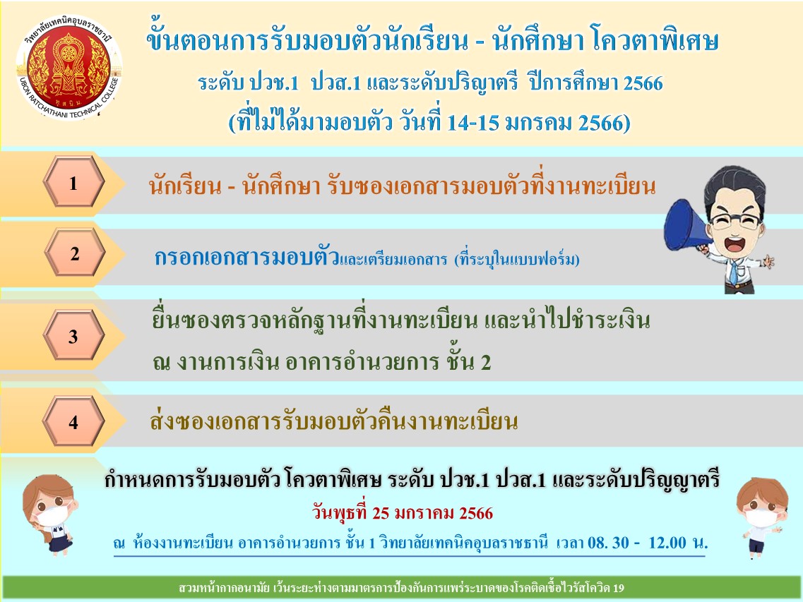 ขั้นตอนการรับสมัครและรับมอบตัวนักเรียน นักศึกษา ระดับประกาศนียบัตรวิชาชีพ (ปวช.) ระดับประกาศนียบัตรวิชาชีพชั้นสูง (ปวส.) และระดับปริญญาตรีเทคโนโลยีบัณฑิต (ทล.บ.) ต่อเนื่อง ปีการศึกษา 2566