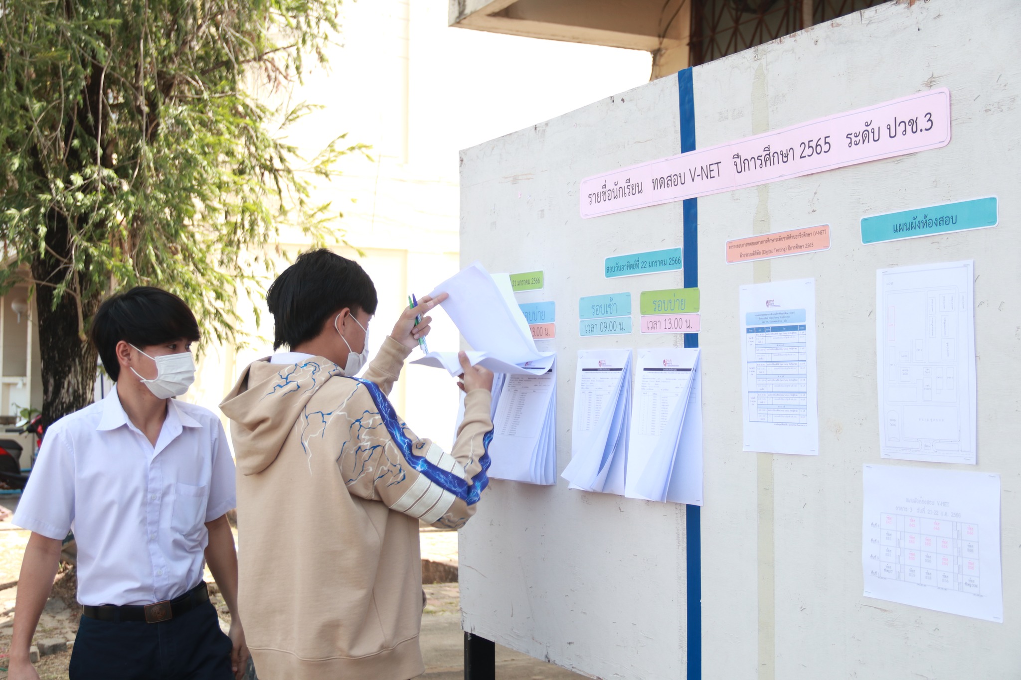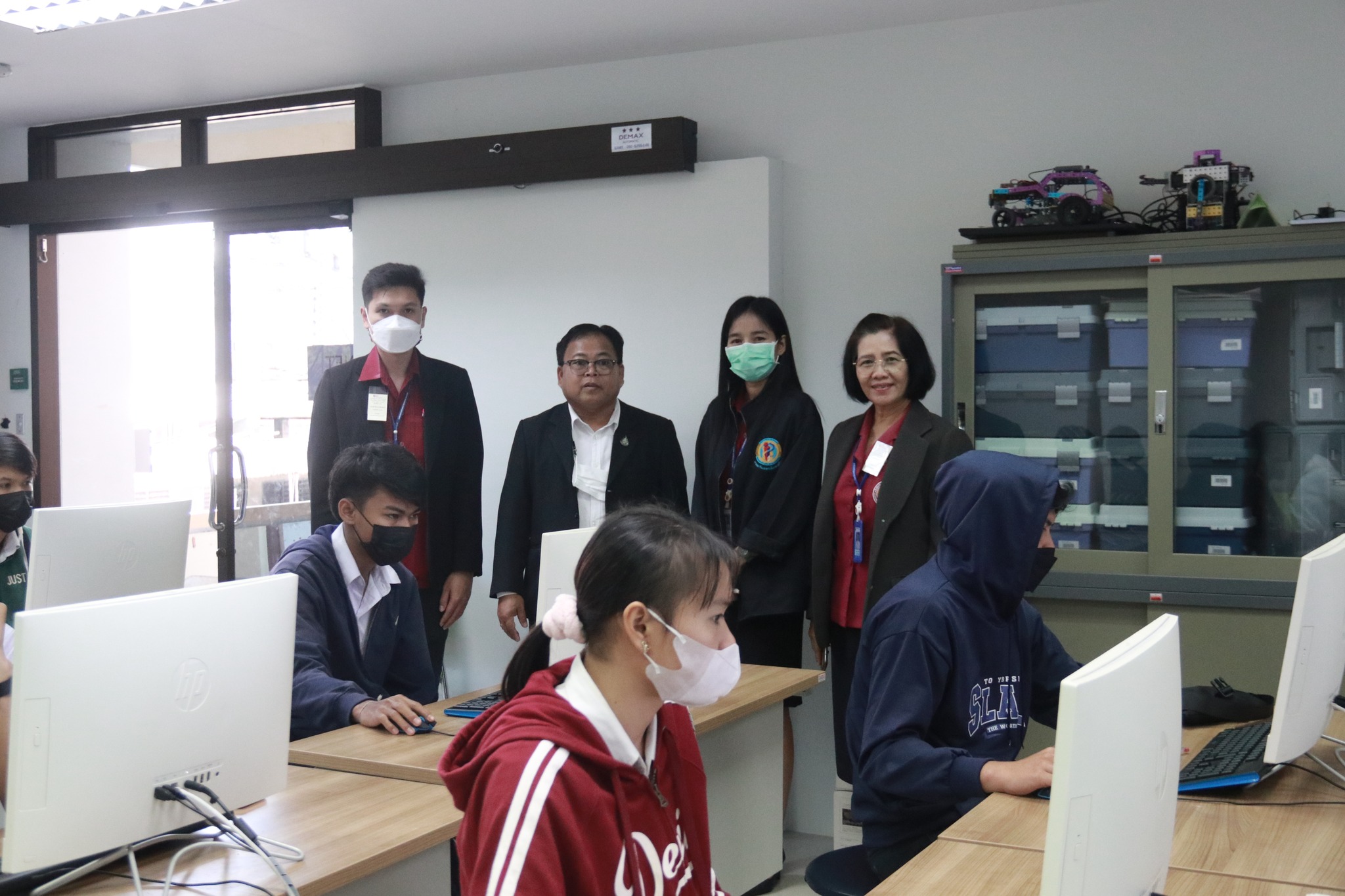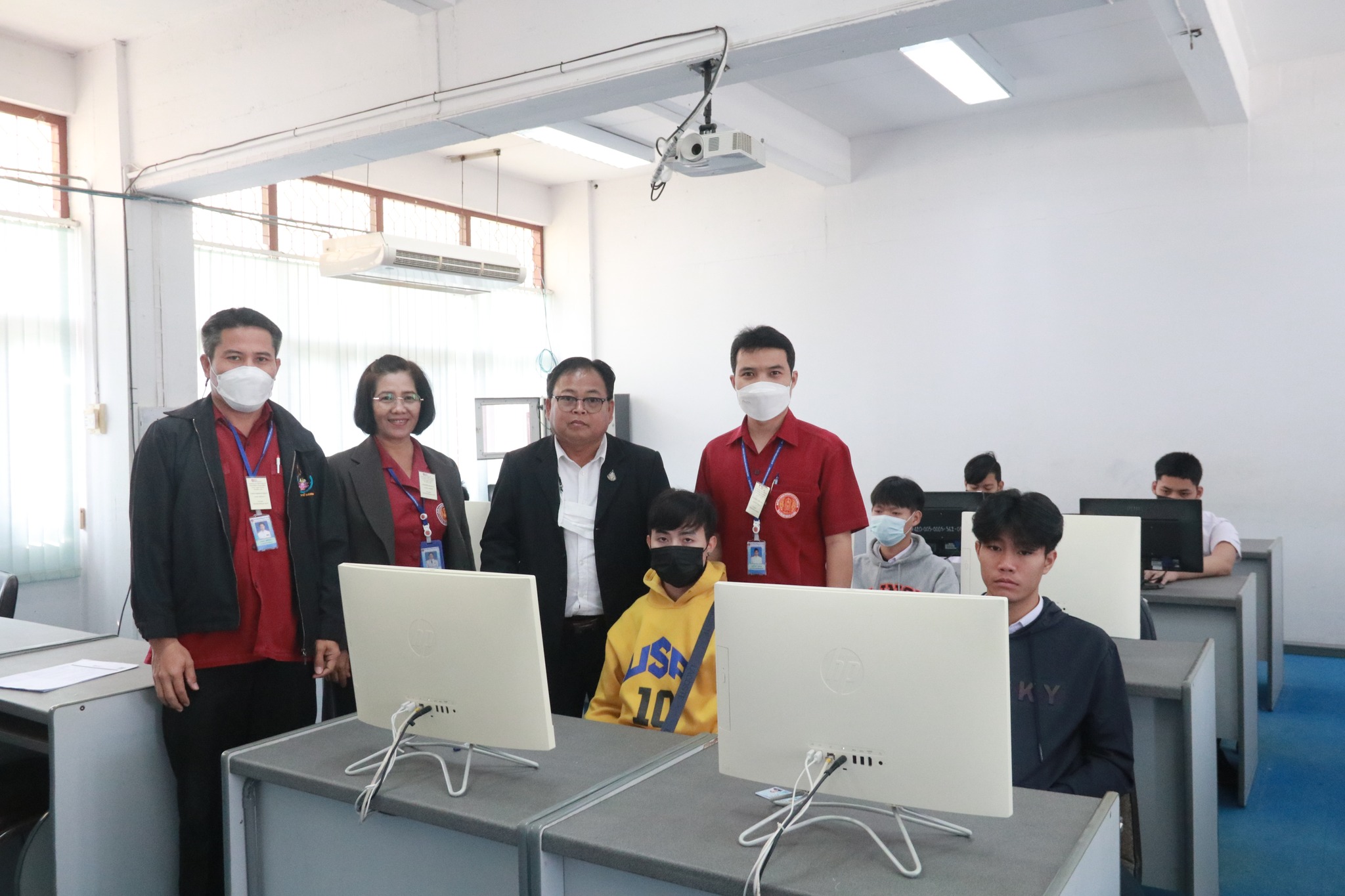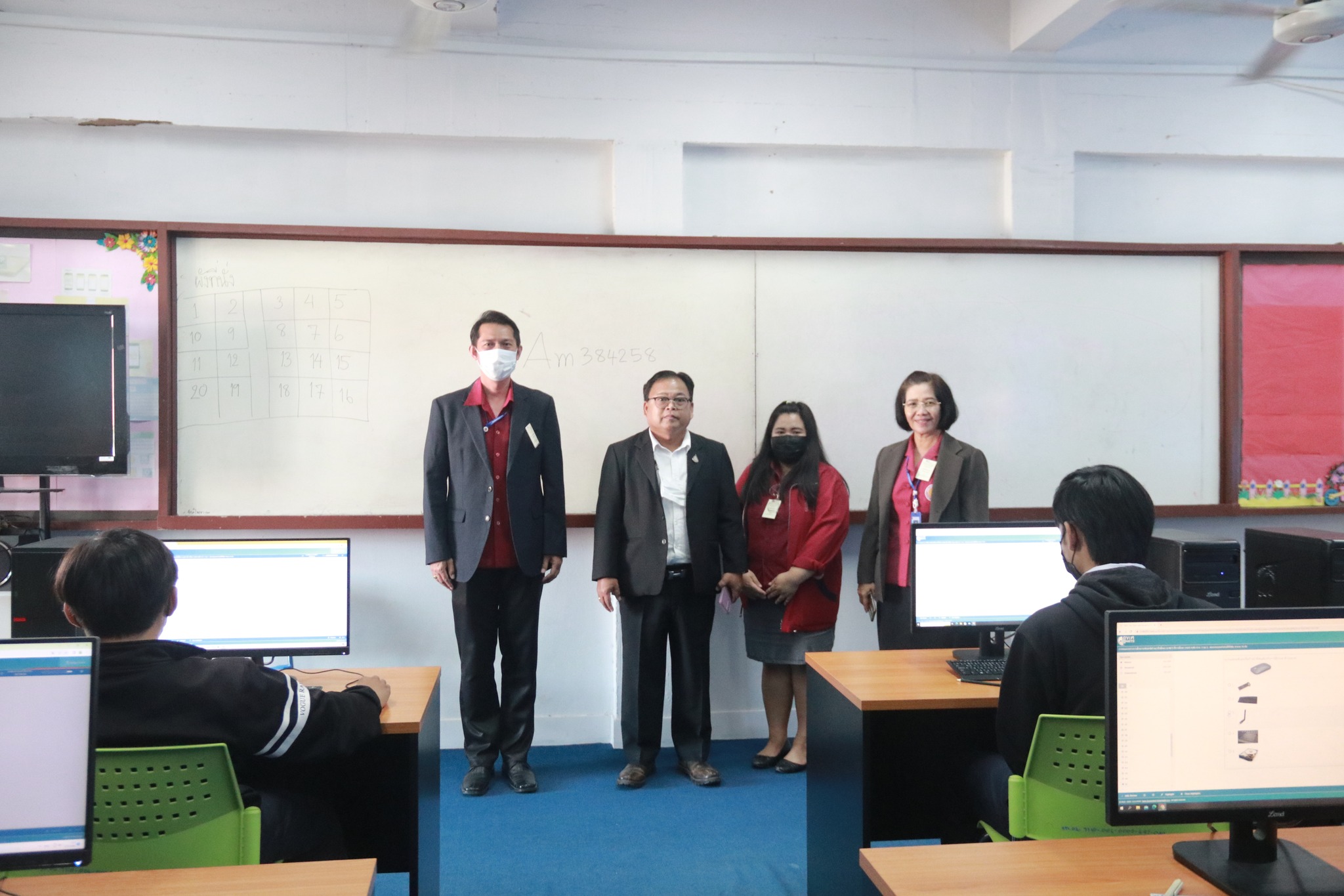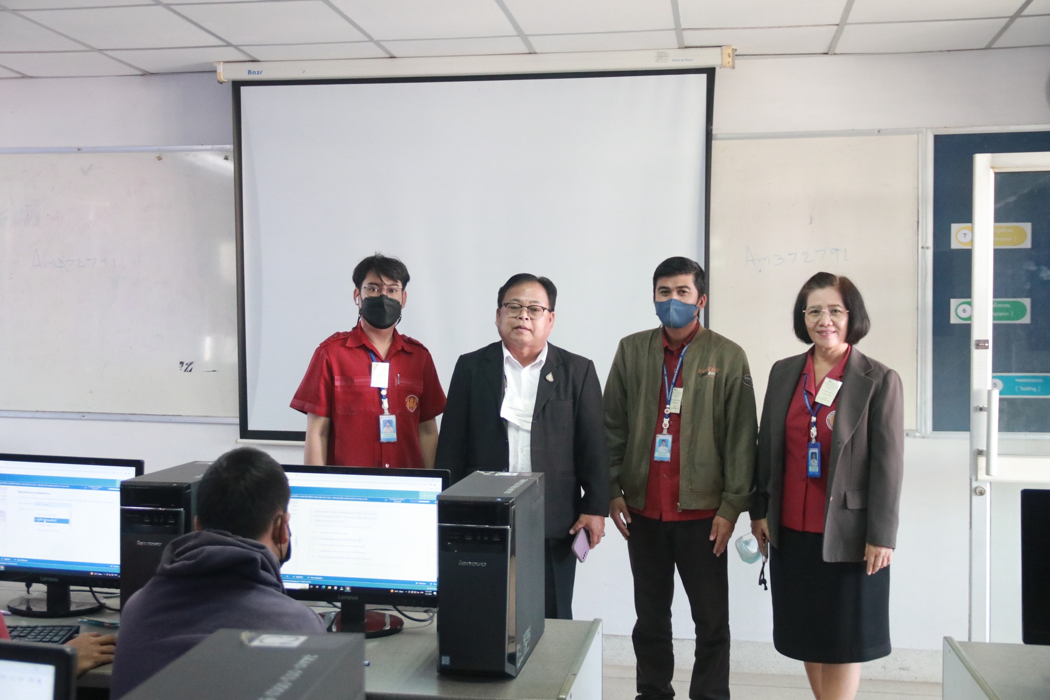 รองผู้อำนวยการฝ่ายวิชาการ พร้อมด้วย นางพนิดา องค์สวัสดิ์ หัวหน้างานวัดผลและประเมินผล ตรวจเยี่ยมการดำเนินการทดสอบทางการศึกษาระดับชาติด้านอาชีวศึกษา (V-NET) ด้วยระบบดิจิทัล ปีการศึกษา ๒๕๖๕