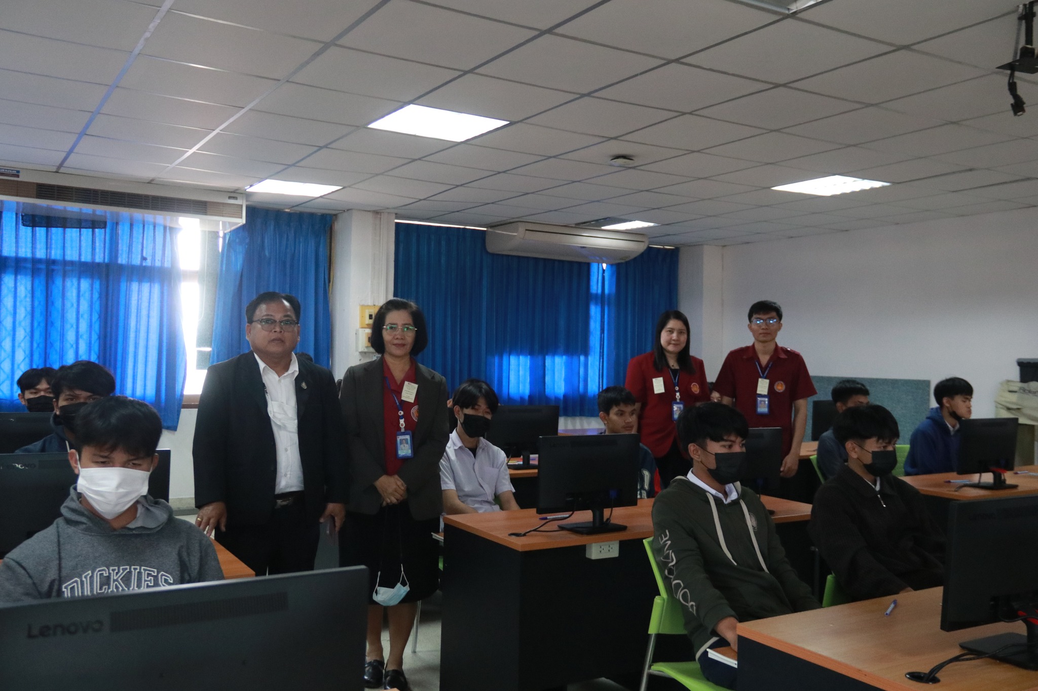 วันที่ ๒๑ มกราคม ๒๕๖๖ เวลา ๑๑.๐๐ น. นายธาตรี พิบูลมณฑา ผู้อำนวยการวิทยาลัยเทคนิคอุบลราชธานี ได้มอบหมายให้ นายสุวิชา มั่นยืน รองผู้อำนวยการฝ่ายวิชาการ พร้อมด้วย นางพนิดา องค์สวัสดิ์ หัวหน้างานวัดผลและประเมินผล ตรวจเยี่ยมการดำเนินการทดสอบทางการศึกษาระดับชาติด้านอาชีวศึกษา (V-NET) ด้วยระบบดิจิทัล ปีการศึกษา ๒๕๖๕ ณ อาคาร ๓ แผนกวิชาเทคโนโลยีคอมพิวเตอร์ วิทยาลัยเทคนิคอุบลราชธานี ซึ่งจัดสอบในวันที่ ๒๑ – ๒๒ มกราคม ๒๕๖๖ ทั้งนี้เพื่อให้การดำเนินงานเป็นไปด้วยความเรียบร้อย โปร่งใส ยุติธรรม และมีประสิทธิภาพสอดคล้องกับแนวทางและวิธีการดำเนินงานของการทดสอบทางการศึกษาระดับชาติ รวมทั้งเป็นไปตามมาตรฐานการทดสอบทางการศึกษาแห่งชาติต่อไป