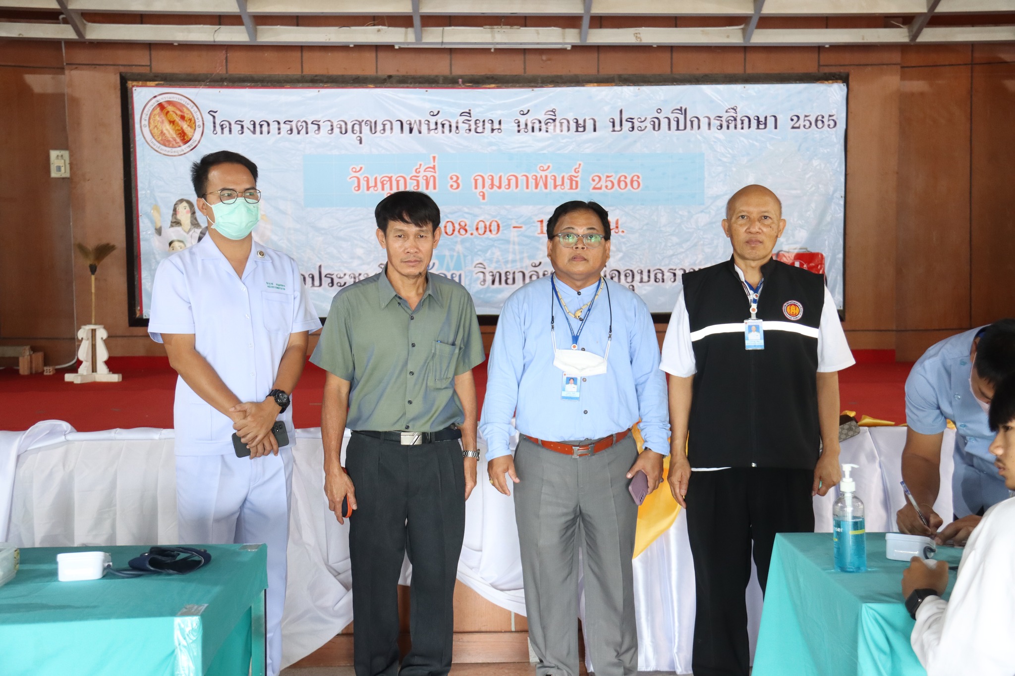 วันที่ ๓ กุมภาพันธ์ ๒๕๖๖ เวลา ๐๘.๓๐ น. นายธาตรี พิบูลมณฑา ผู้อำนวยการวิทยาลัยเทคนิคอุบลราชธานี ได้มอบหมายให้ นางสาวสายฝนสาระผล รองผู้อำนวยการฝ่ายบริหารทรัพยากร นายไวพจน์ ศรีธัญ รองผู้อำนวยการฝ่ายพัฒนากิจการนักเรียนนักศึกษา และนายสุวิชา มั่นยืน รองผู้อำนวยการฝ่ายวิชาการ นำคณะครู นักเรียน นักศึกษา เข้าร่วมโครงการตรวจสุขภาพนักเรียน นักศึกษา ครั้งที่ ๒ ประจำปีการศึกษา ๒๕๖๕ โดยได้รับความอนุเคราะห์คณะแพทย์ พยาบาล และเจ้าหน้าที่จาก โรงพยาบาลนาคราชอินเตอร์เนชั่นแนล จังหวัดสมุทรปราการ โดยมีนักเรียน นักศึกษา ระดับชั้น ปวช.๓ และ ปวส.๒ เข้าร่วมการตรวจสุขภาพอย่างพร้อมเพรียง ณ หอประชุมโดมน้อย วิทยาลัยเทคนิคอุบลราชธานี ทั้งนี้เพื่อดำเนินการตรวจสุขภาพให้แก่นักเรียน นักศึกษาที่กลับจากฝึกงาน และนักเรียน นักศึกษา ที่ยังไม่ได้เข้ารับการตรวจสุขภาพ ครั้งที่ ๑ อีกด้วย