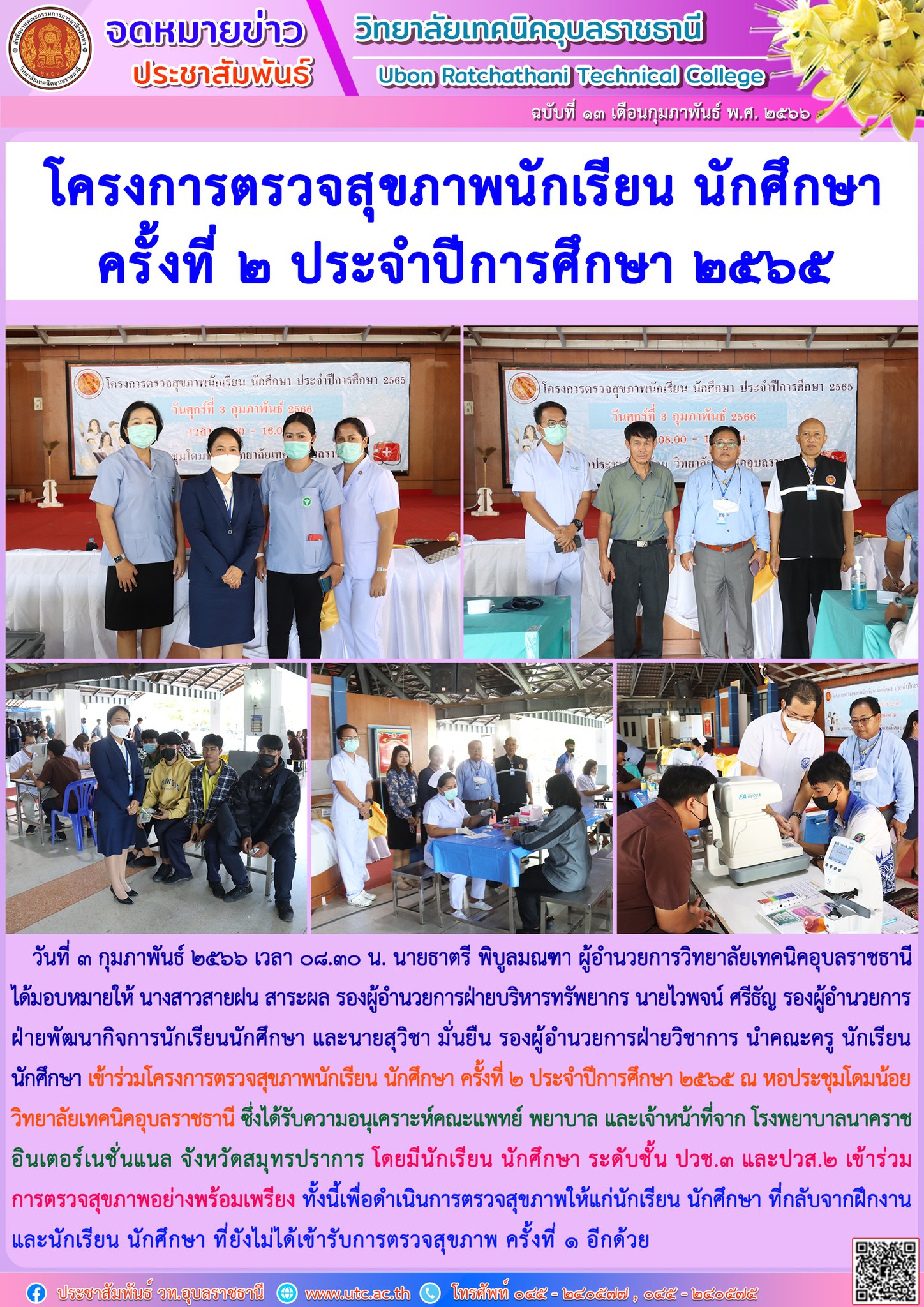 โครงการตรวจสุขภาพนักเรียน นักศึกษา ครั้งที่ ๒ ประจำปีการศึกษา ๒๕๖๕