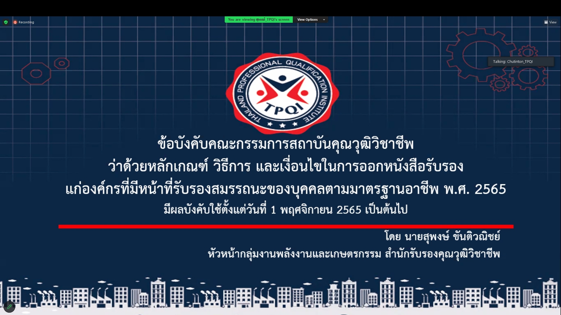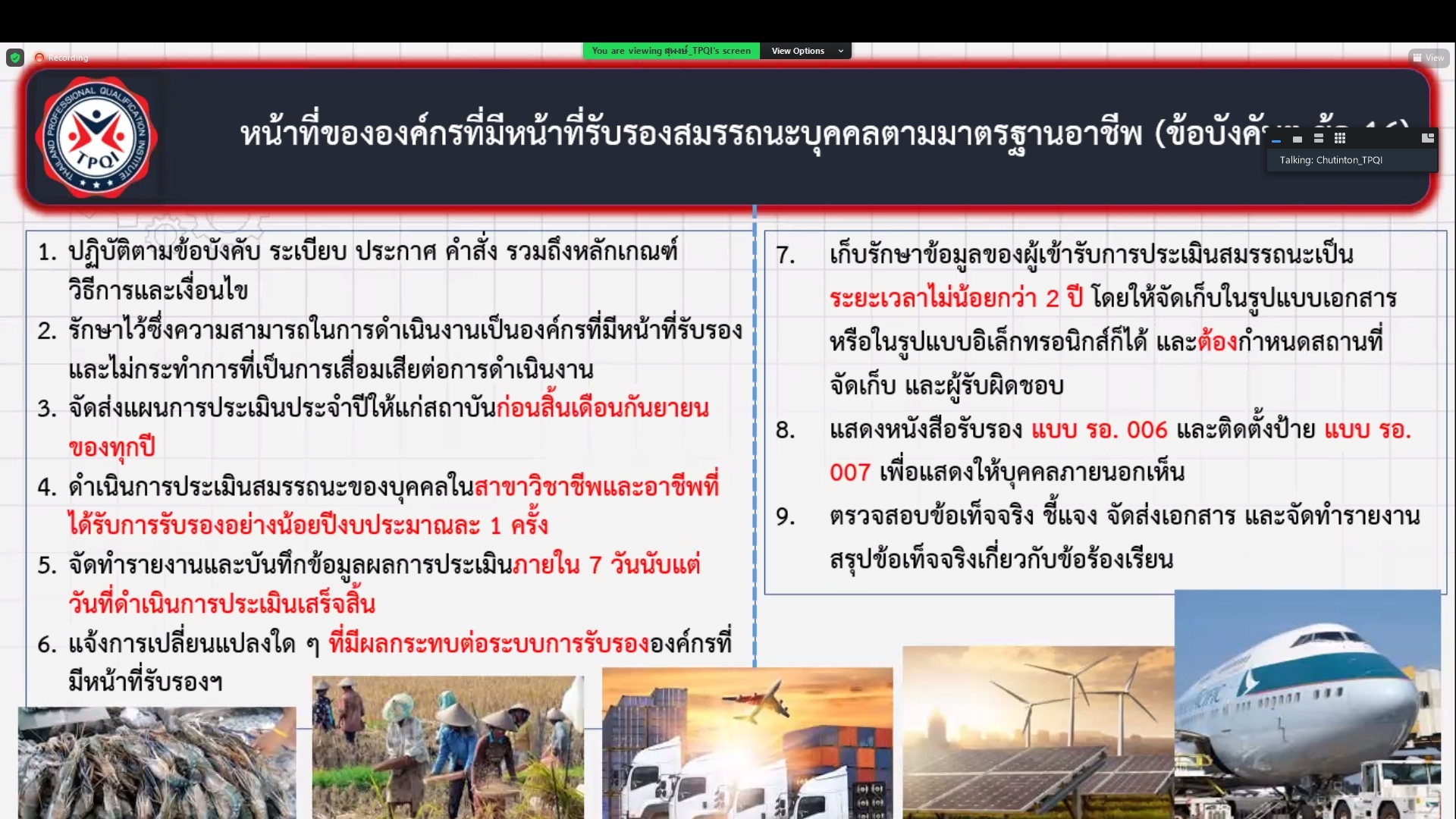 เข้าร่วมการประชุมหารือแนวทางการสนับสนุนหน่วยงานเพื่อเป็นองค์กรที่มีหน้าที่รับรองสมรรถนะบุคคลตามมาตรฐานอาชีพเกี่ยวกับธุรกิจการบินและอากาศยาน ซึ่งดำเนินการประชุมโดยสถาบันคุณวุฒิวิชาชีพ ผ่านระบบออนไลน์ Zoom