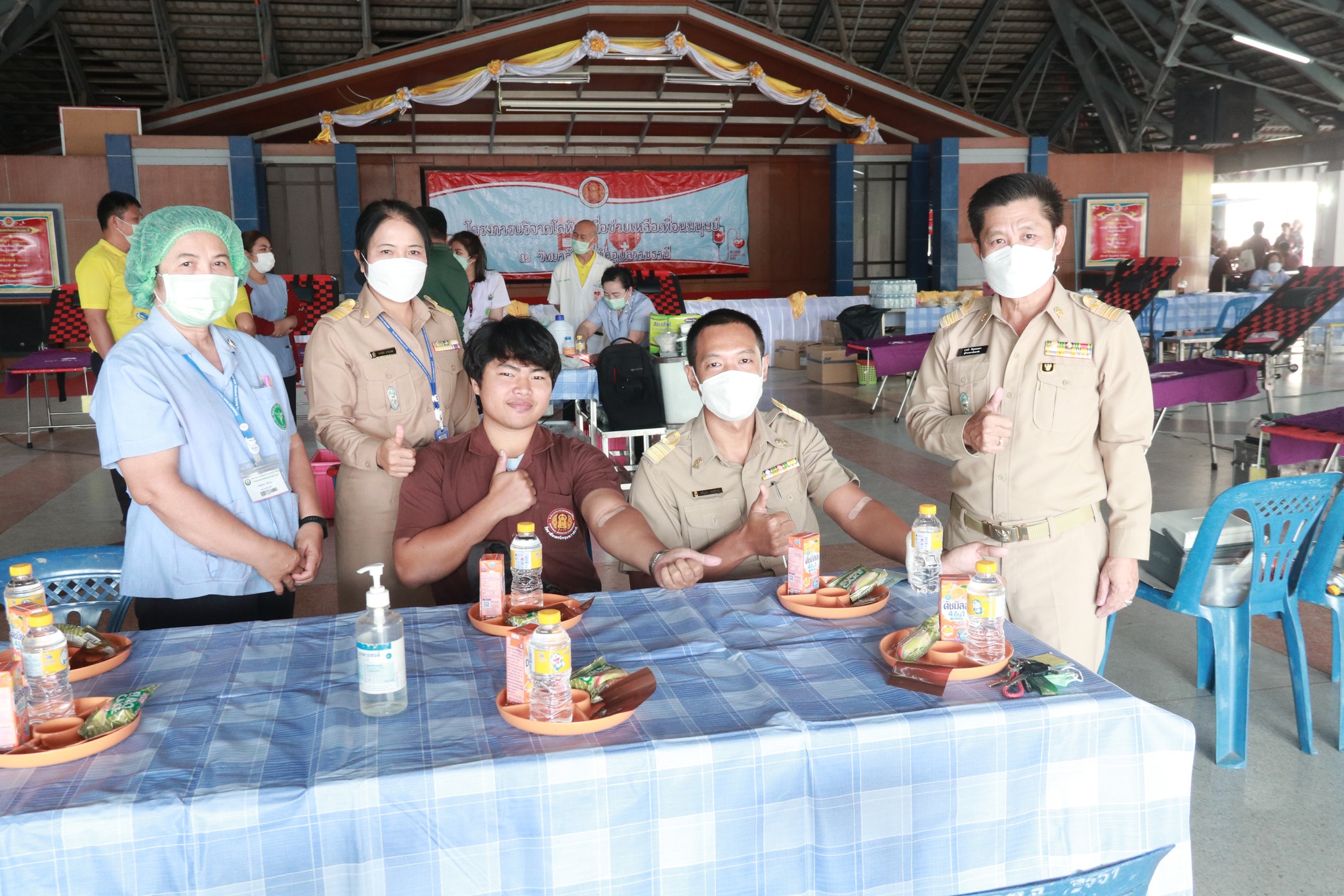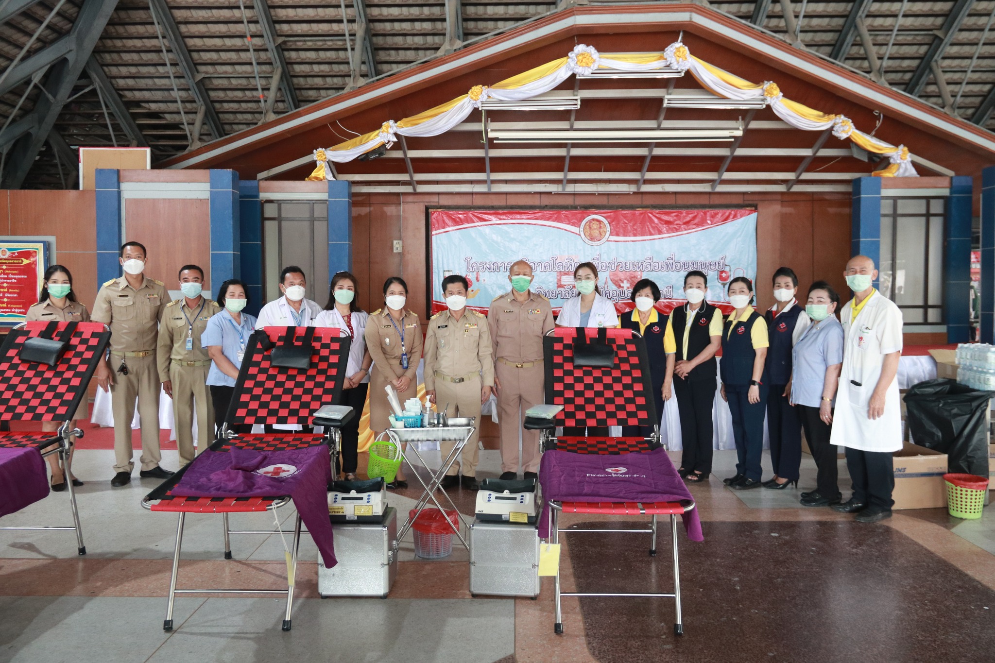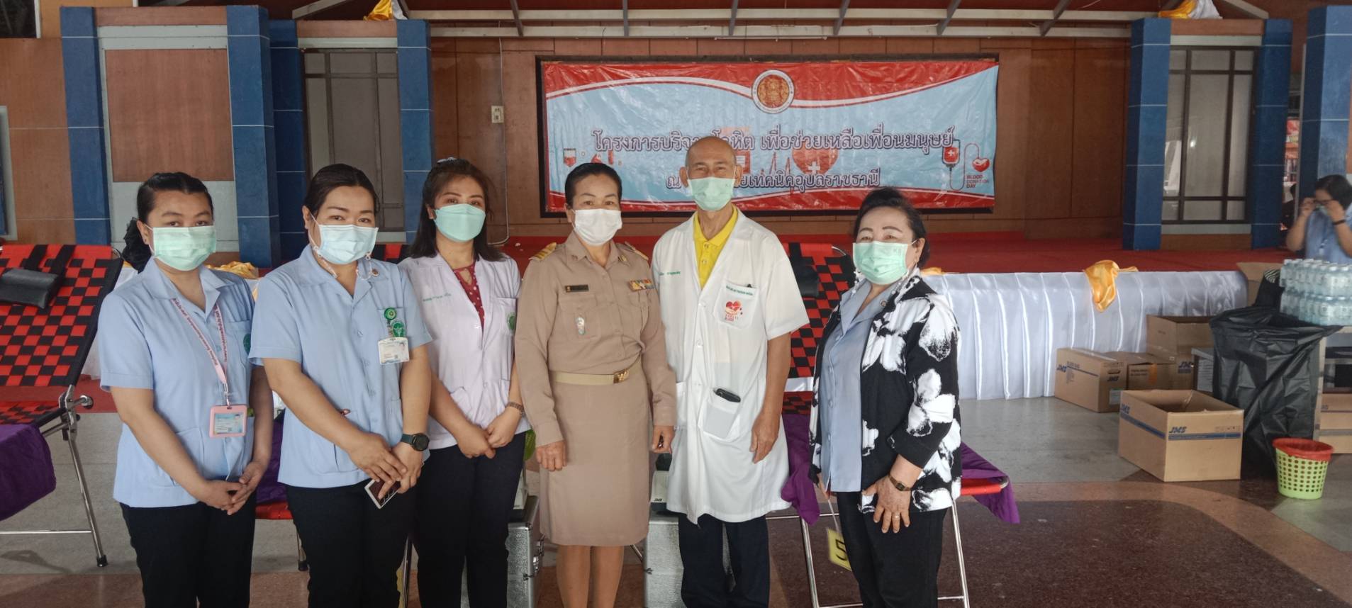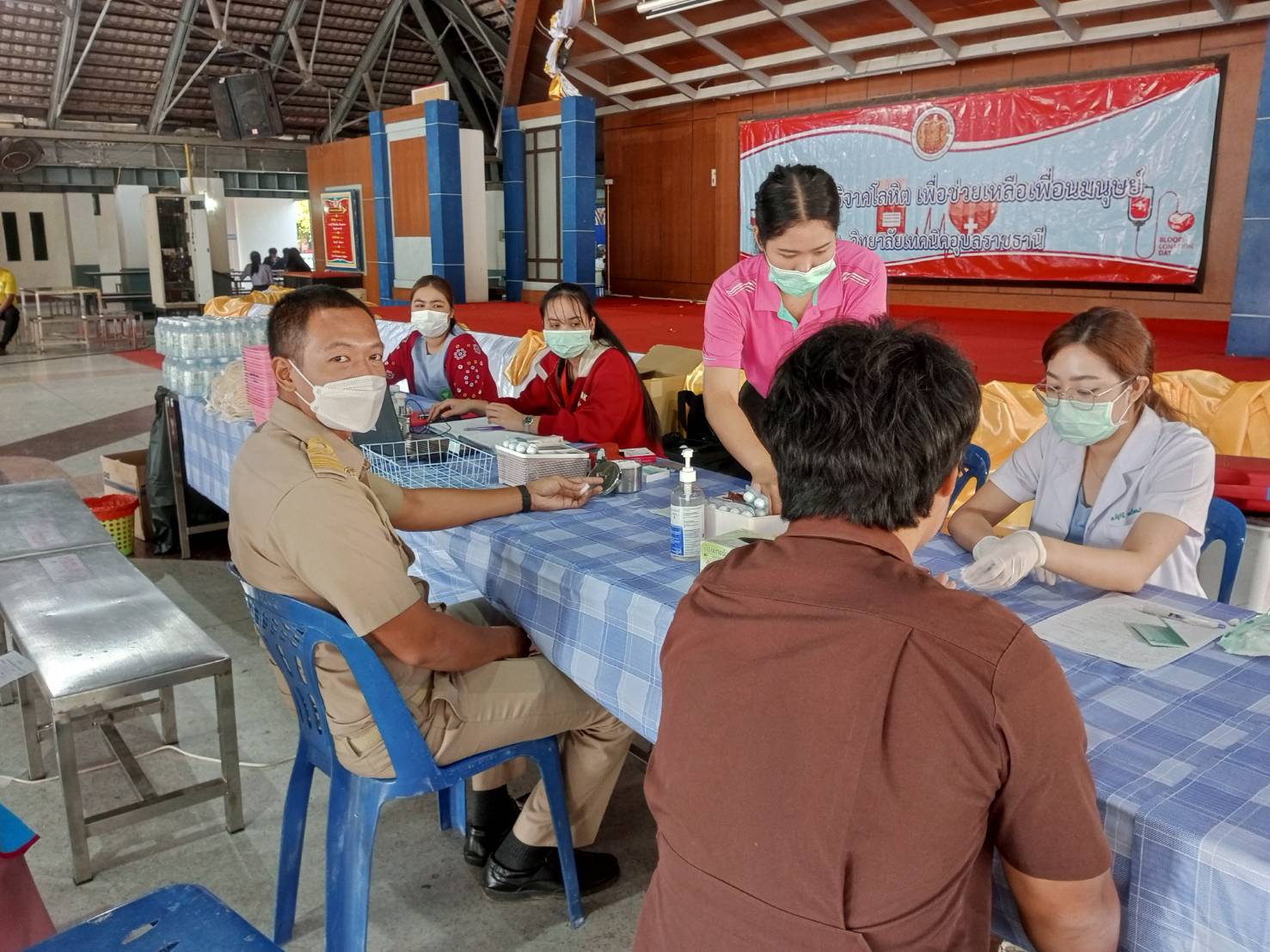 วันที่ ๒๐ กุมภาพันธ์ ๒๕๖๖ เวลา ๐๙.๓๐ น. นายธาตรี พิบูลมณฑา ผู้อำนวยการวิทยาลัยเทคนิคอุบลราชธานี พร้อมด้วย นางสาวสายฝน สาระผล รองผู้อำนวยการฝ่ายบริหารทรัพยากร นางราตรี สะดีวงศ์ รองผู้อำนวยการฝ่ายแผนงานและความร่วมมือ และนายไวพจน์ ศรีธัญ รองผู้อำนวยการฝ่ายพัฒนากิจการนักเรียนนักศึกษา นำคณะครู นักเรียน นักศึกษา เข้าร่วมโครงการบริจาคโลหิต ประจำปีการศึกษา ๒๕๖๕ (ครั้งที่ ๓) ณ หอประชุมโดมน้อย วิทยาลัยเทคนิคอุบลราชธานี โดยได้รับความอนุเคราะห์คณะแพทย์ พยาบาล และเจ้าหน้าที่จากโรงพยาบาลสรรพสิทธิประสงค์ จังหวัดอุบลราชธานี มาให้บริการรับบริจาคโลหิต โดยมีครู บุคลากรทางการศึกษา และนักเรียน นักศึกษา เข้าร่วมกิจกรรมอย่างพร้อมเพรียง ทั้งนี้เพื่อนำโลหิตไปช่วยเหลือในการรักษาผู้ป่วยต่อไป