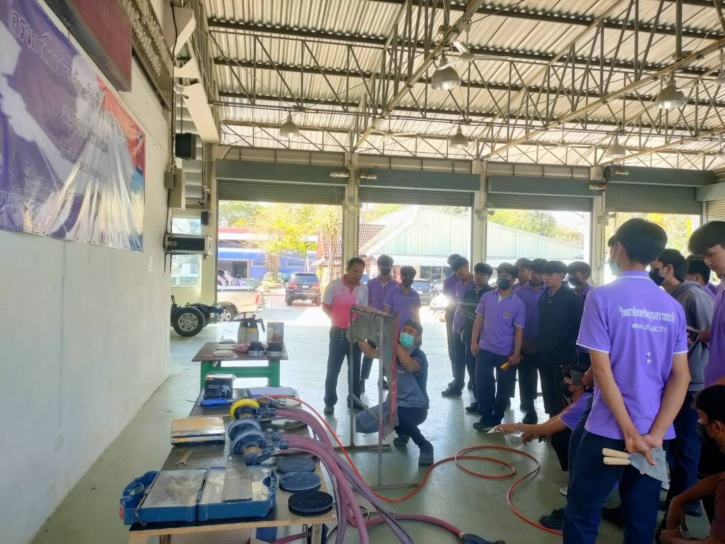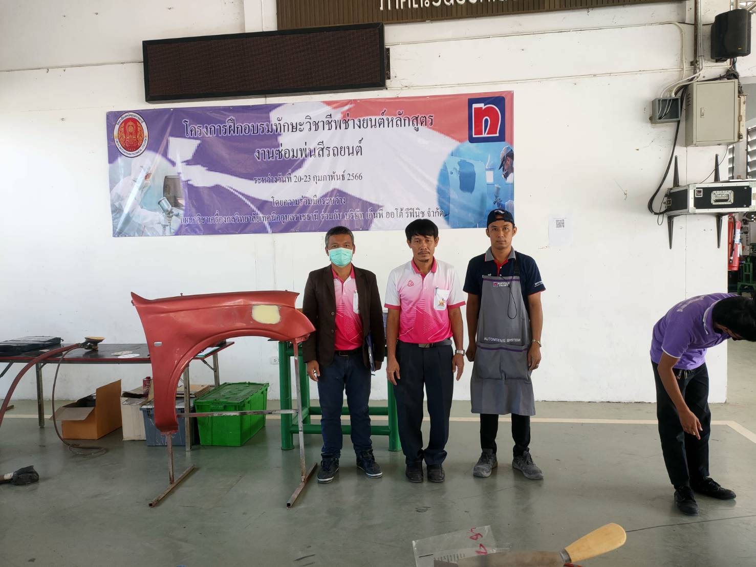 วันที่ ๒๑ กุมภาพันธ์ ๒๕๖๖ เวลา ๑๐.๐๐ น. นายธาตรี พิบูลมณฑา ผู้อำนวยการวิทยาลัยเทคนิคอุบลราชธานี ได้มอบหมายให้ นายกตนนท์นาทัน หัวหน้าแผนกวิชาช่างยนต์/เครื่องกล พร้อมด้วยคณะครู แผนกวิชาช่างยนต์/เครื่องกล นำนักศึกษา ระดับชั้น ปวส.๒ แผนกวิชาช่างยนต์/เครื่องกล เข้าร่วมโครงการฝึกอบรมทักษะวิชาชีพช่างยนต์ หลักสูตรงานซ่อมพ่นสีรถยนต์ ประจำปีการศึกษา ๒๕๖๕ ณ แผนกวิชาช่างยนต์ วิทยาลัยเทคนิคอุบลราชธานี โดยดำเนินโครงการระหว่างวันที่ ๒๐ – ๒๒ กุมภาพันธ์ ๒๕๖๖ ในการนี้ได้รับความอนุเคราะห์วิทยากรจาก บริษัท เอ็นพี ออโต้ รีฟินิช จำกัด ทั้งนี้เพื่อถ่ายทอดความรู้ให้แก่คณะครูและนักเรียน นักศึกษา แผนกวิชาช่างยนต์/เครื่องกล วิทยาลัยเทคนิคอุบลราชธานี ประจำปีการศึกษา ๒๕๖๕ ต่อไป