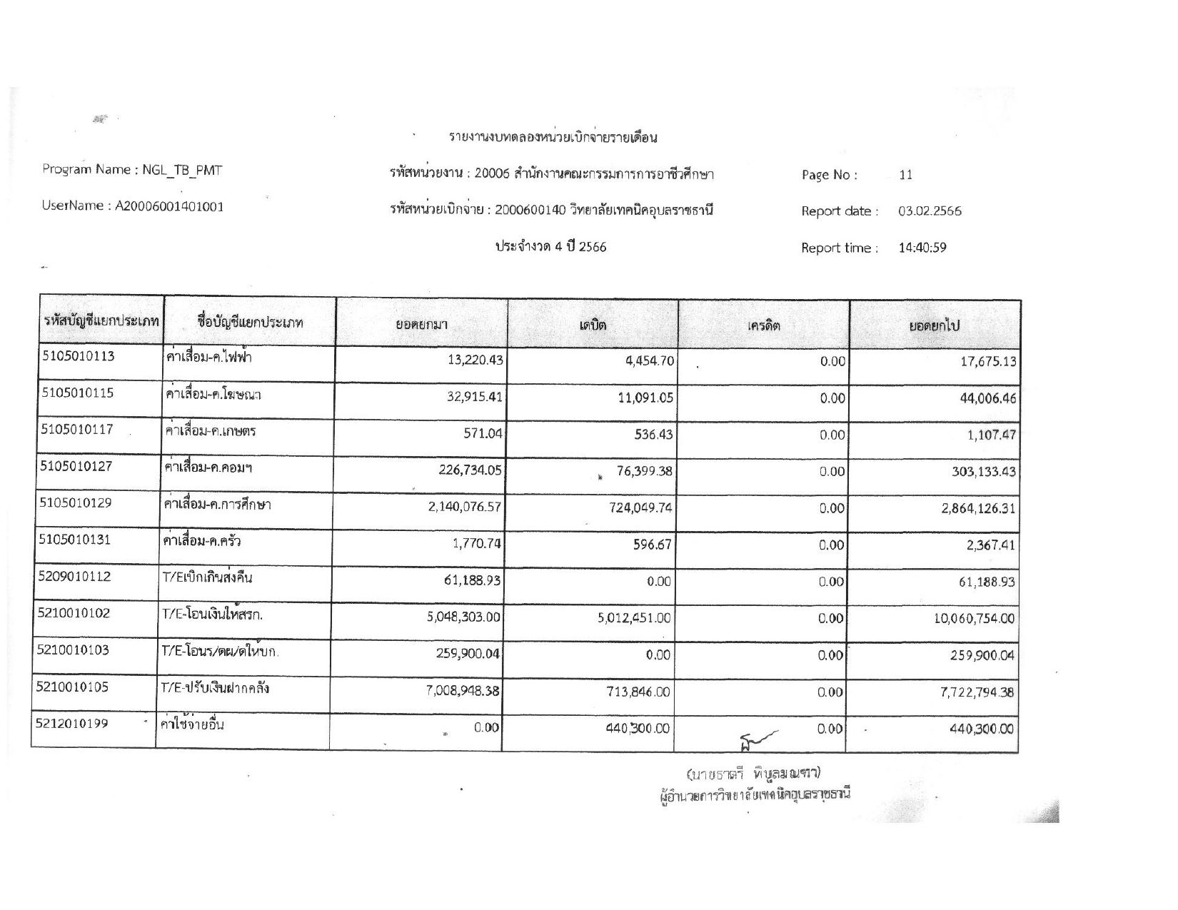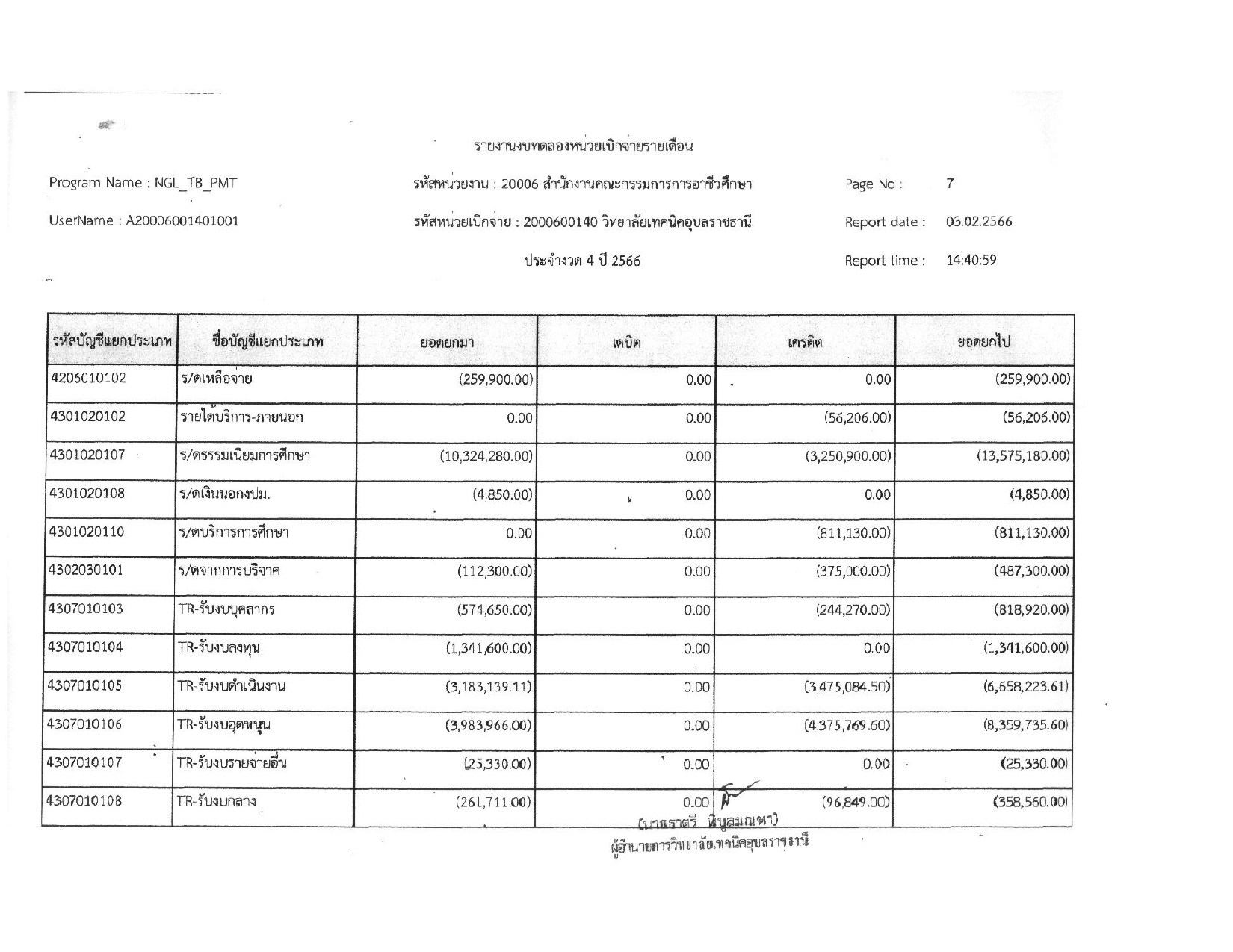รายงานงบทดลองประจำเดือน มกราคม 2566