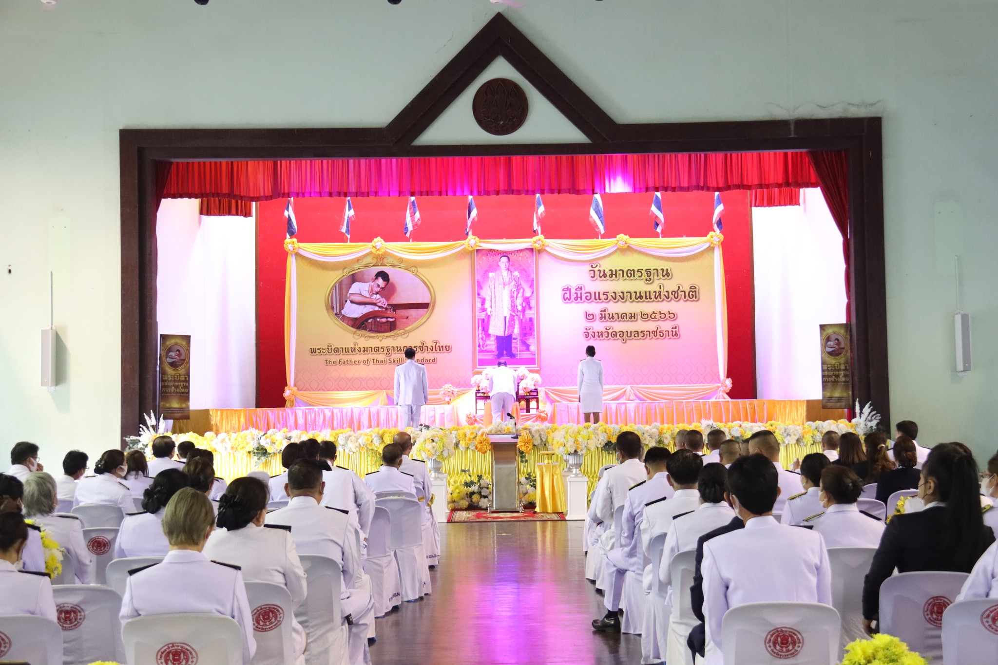 วันที่ ๒ มีนาคม ๒๕๖๖เวลา ๐๘.๐๐ น. นายธาตรี พิบูลมณฑา ผู้อำนวยการวิทยาลัยเทคนิคอุบลราชธานี ปฏิบัติหน้าที่ผู้อำนวยการสำนักงานอาชีวศึกษาจังหวัดอุบลราชธานี พร้อมด้วย นายไวพจน์ ศรีธัญ รองผู้อำนวยการฝ่ายพัฒนากิจการนักเรียนนักศึกษา นายฐิติพันธ์ พิมพ์ชาย ครูแผนกวิชาเทคนิคพื้นฐาน และนายธีรวัฒน์ ศรีกะกุล ครูแผนกวิชาช่างกลโรงงาน เข้าร่วมพิธีถวายราชสักการะแด่พระบาทสมเด็จพระบรมชนกาธิเบศร มหาภูมิพลอดุลยเดชมหาราช บรมนาถบพิตร “พระบิดาแห่งมาตรฐานการช่างไทย” เนื่องในวันมาตรฐานฝีมือแรงงานแห่งชาติ ประจำปี ๒๕๖๖ ณ สถาบันพัฒนาฝีมือแรงงาน ๗ อุบลราชธานี ในการนี้ได้รับเกียรติจาก นายชลธี ยังตรง ผู้ว่าราชการจังหวัดอุบลราชธานี เป็นประธานในพิธี ทั้งนี้เพื่อเป็นการน้อมรำลึกในพระมหากรุณาธิคุณ และเทิดพระเกียรติแด่พระบาทสมเด็จพระบรมชนกาธิเบศร มหาภูมิพลอดุลยเดชมหาราช บรมนาถบพิตร ในฐานะที่พระองค์ทรงเป็น “พระบิดาแห่งมาตรฐานการช่างไทย”