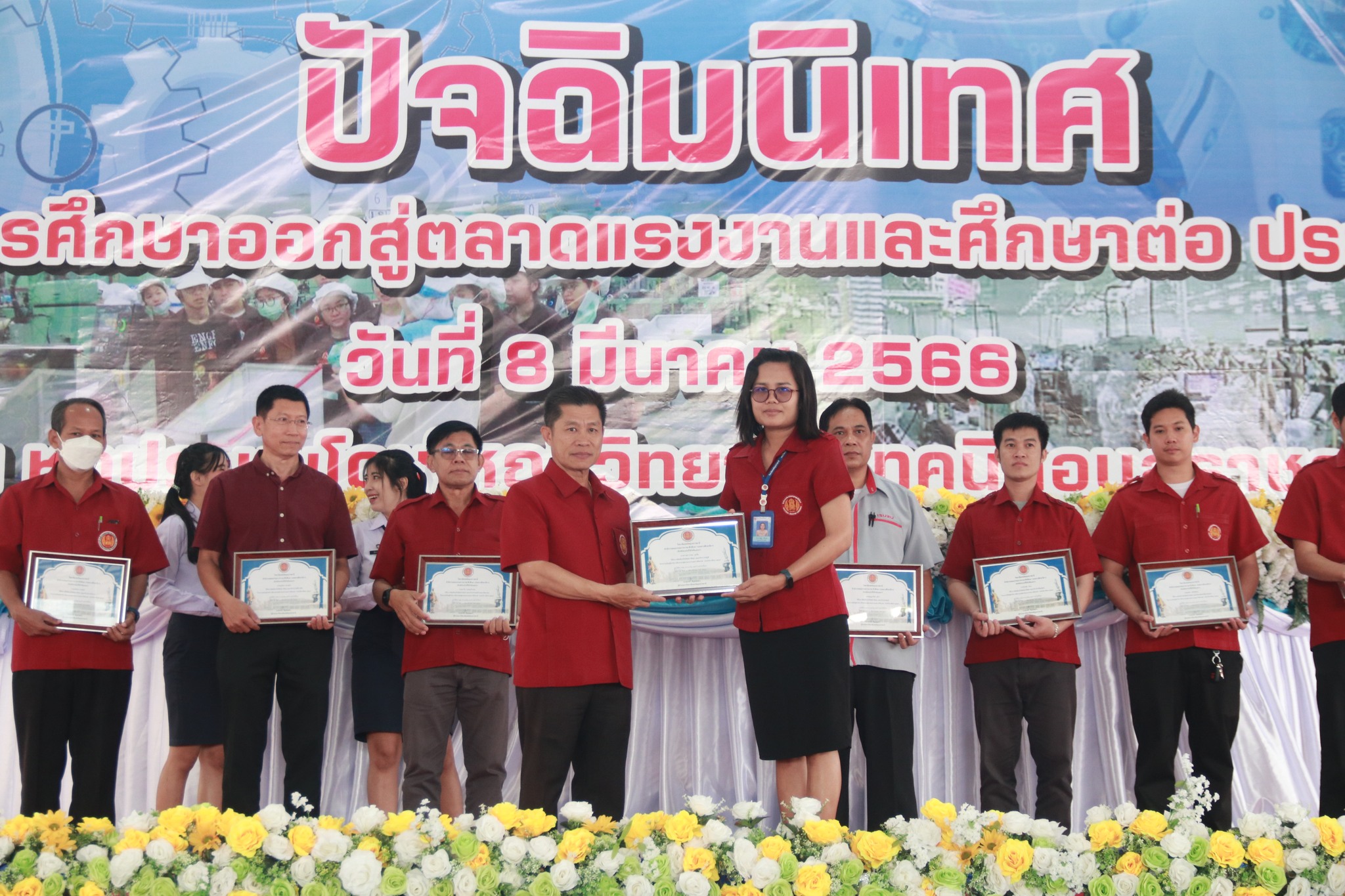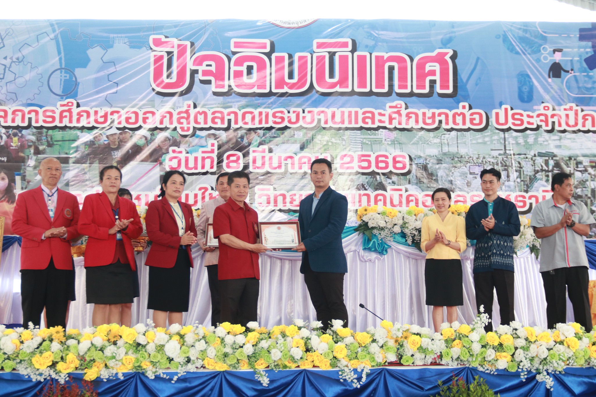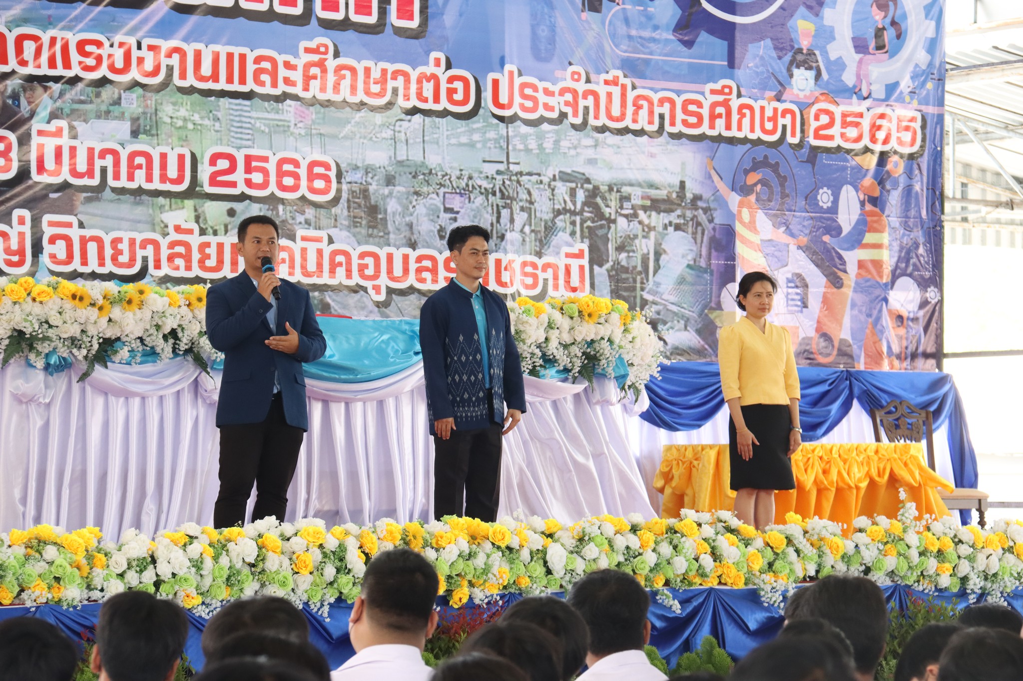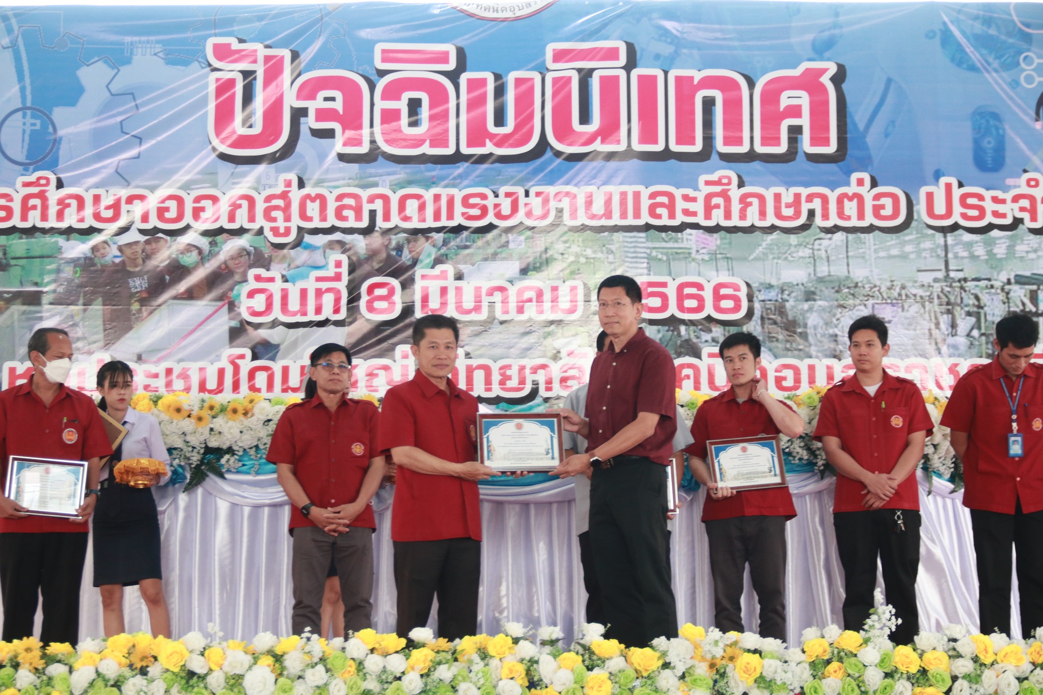 วันที่ ๘ มีนาคม ๒๕๖๖ เวลา ๐๘.๓๐ น. นายธาตรี พิบูลมณฑาผู้อำนวยการวิทยาลัยเทคนิคอุบลราชธานี ให้เกียรติเป็นประธานเปิดโครงการเตรียมความพร้อมผู้สำเร็จการศึกษาออกสู่ตลาดแรงงานและศึกษาต่อ (ปัจฉิมนิเทศ) ประจำปีการศึกษา ๒๕๖๕ ในการนี้มี นายไวพจน์ ศรีธัญ รองผู้อำนวยการฝ่ายพัฒนากิจการนักเรียนนักศึกษา เป็นผู้กล่าวรายงาน โดยมี นางสาวสายฝน สาระผล รองผู้อำนวยการฝ่ายบริหารทรัพยากร นางราตรี สะดีวงศ์ รองผู้อำนวยการฝ่ายแผนงานและความร่วมมือ พร้อมด้วยหัวหน้าแผนกวิชา หัวหน้างาน ครู และบุคลากรทางการศึกษาที่เกี่ยวข้อง นำนักเรียนระดับประกาศนียบัตรวิชาชีพ ชั้นปีที่ ๓ (ปวช.๓) และนักศึกษาระดับประกาศนียบัตรวิชาชีพชั้นสูง ชั้นปีที่ ๒ (ปวส.๒) เข้าร่วมพิธีอย่างพร้อมเพรียง ในการนี้ได้รับความอนุเคราะห์วิทยากรจากหน่วยงานต่างๆ ดังนี้ ๑.นายมงคล จุลทัศน์ ประธานหอการค้าจังหวัดอุบลราชธานี ๒.นายวินัย จันทรเกษม ผู้ช่วยผู้อำนวยการสถาบันการอาชีวศึกษาภาคตะวันออกเฉียงเหนือ ๔ ๓.รองศาสตราจารย์เอกรินทร์ วทัญญูเลิศสกุล อาจารย์คณะเทคโนโลยีอุตสาหกรรม มหาวิทยาลัยราชภัฏอุบลราชธานี ๔.นายพิชญุตม์ ทองปทุม นักวิชาการวัฒนธรรมปฏิบัติการ วัฒนธรรมจังหวัดอุบลราชธานี ให้เกียรติบรรยายให้ความรู้แก่นักเรียน นักศึกษา ณ หอประชุมโดมใหญ่ วิทยาลัยเทคนิคอุบลราชธานี
