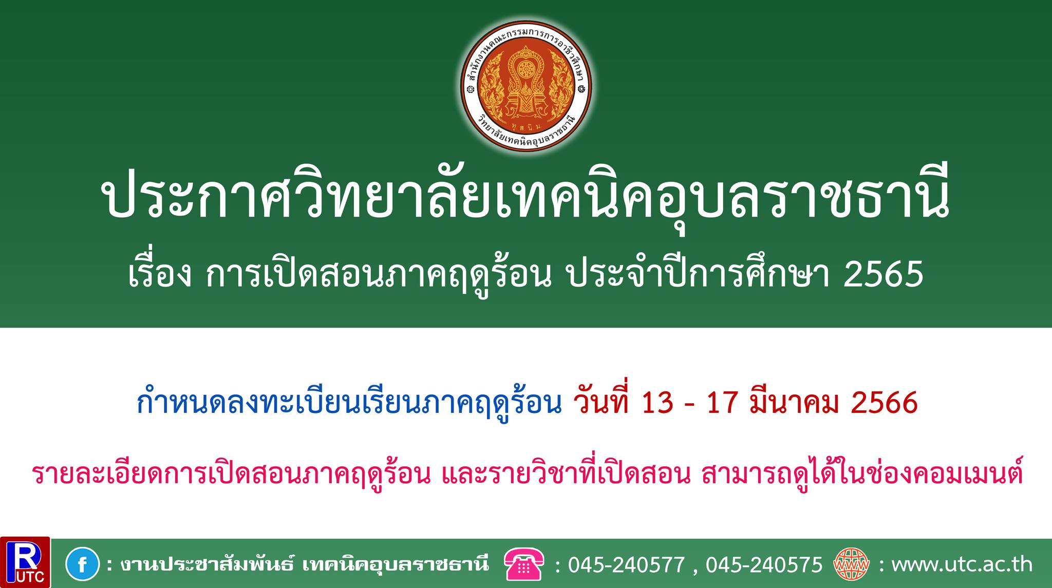 ประกาศวิทยาลัยเทคนิคอุบลราชธานี เรื่อง การเปิดสอนภาคฤดูร้อน ประจำปีการศึกษา 2565