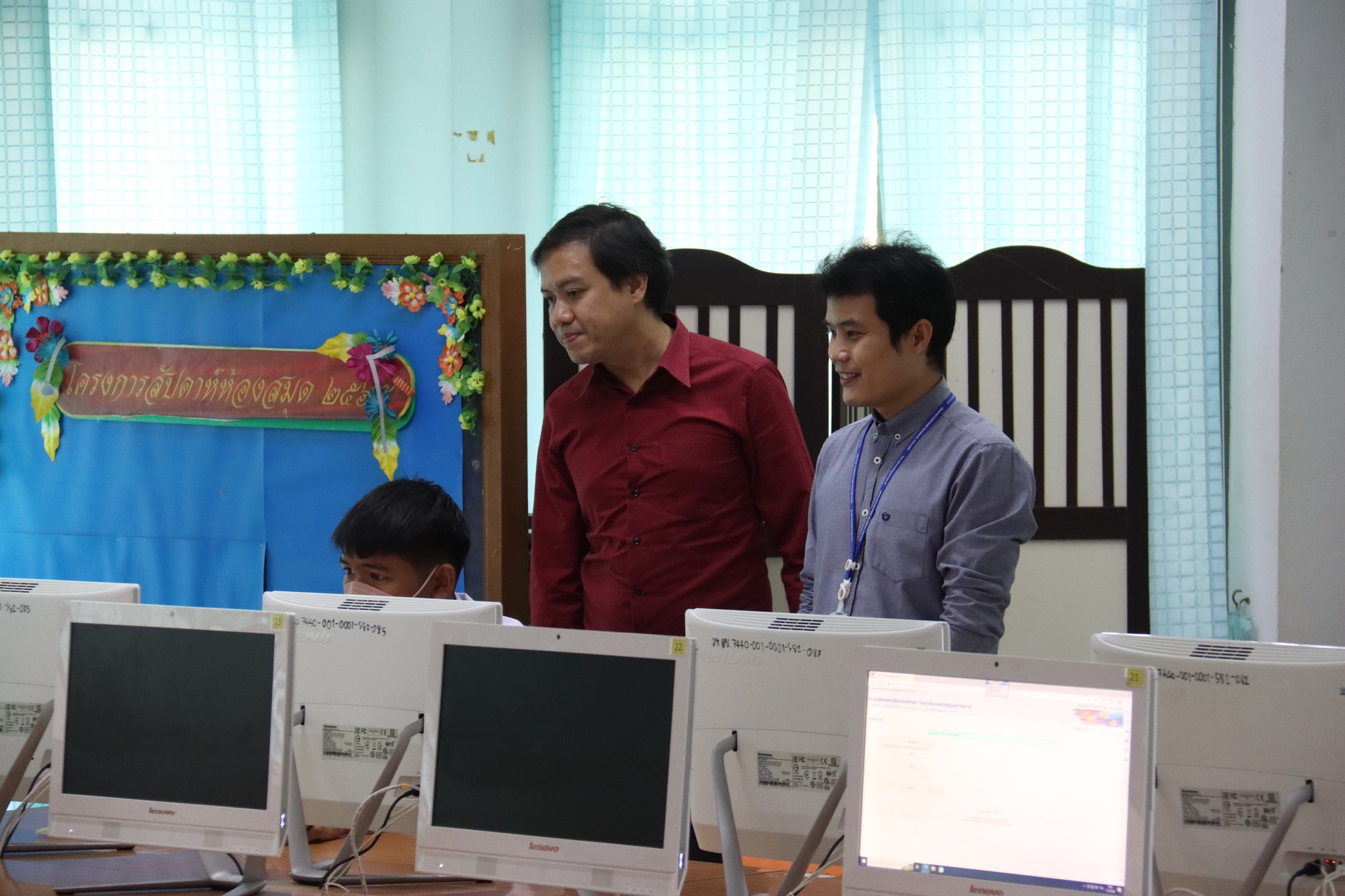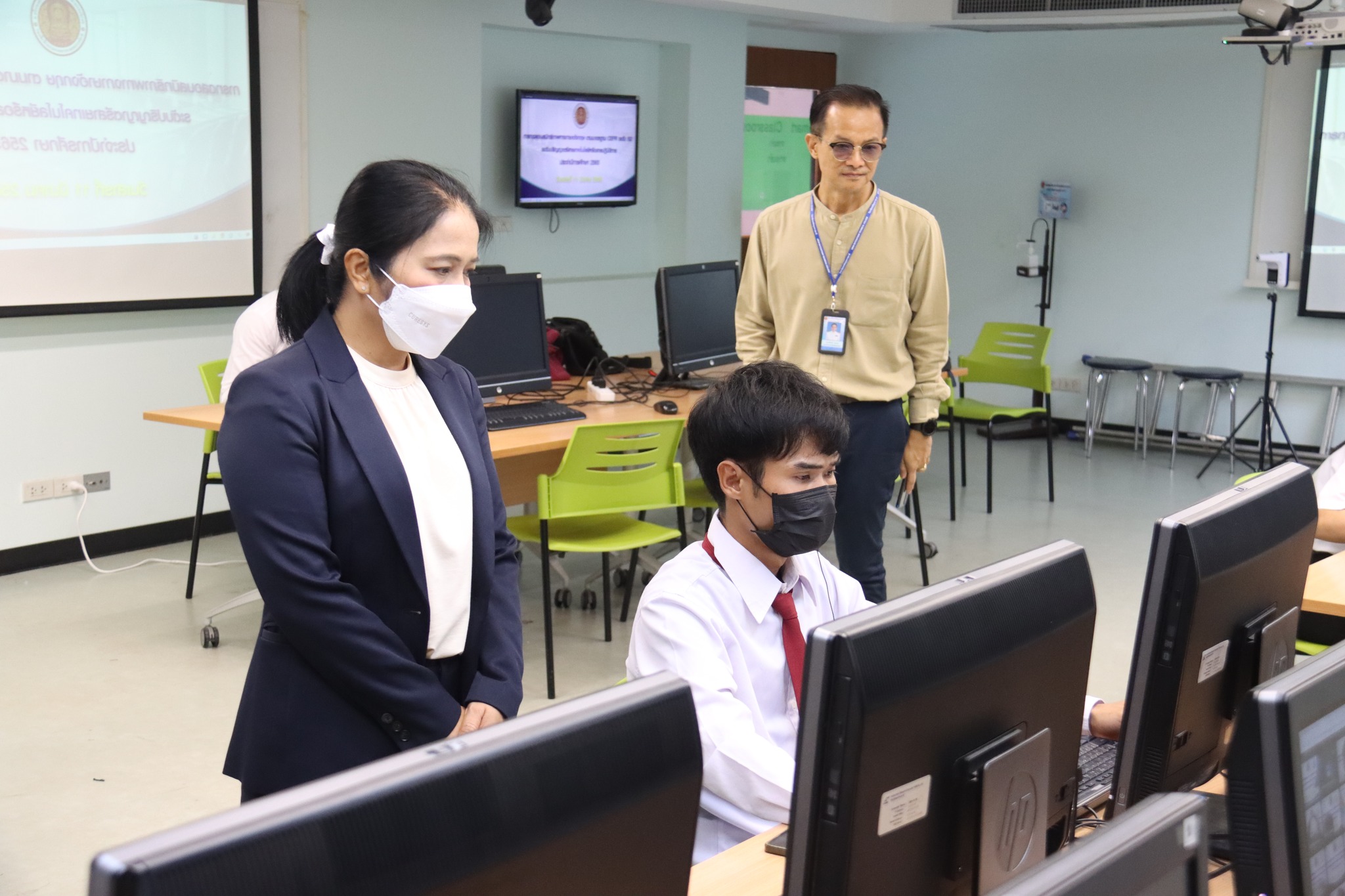 วันที่ ๑๑ มีนาคม ๒๕๖๖เวลา ๑๐.๐๐ น. นายธาตรี พิบูลมณฑา ผู้อำนวยการวิทยาลัยเทคนิคอุบลราชธานี ได้มอบหมายให้ นางสาวสายฝน สาระผล รองผู้อำนวยการฝ่ายบริหารทรัพยากร นายไวพจน์ ศรีธัญ รองผู้อำนวยการฝ่ายพัฒนากิจการนักเรียนนักศึกษา นายสวัสดิ์ ธงไชย หัวหน้างานทะเบียน และนายชนินทร์ พบลาภ หัวหน้างานสื่อการเรียนการสอน เข้าตรวจเยี่ยมและให้กำลังใจนักเรียน นักศึกษา ที่เข้าร่วมการสอบวัดแวว เพื่อเข้าศึกษาต่อในวิทยาลัยเทคนิคอุบลราชธานี ณ อาคารวิทยบริการและห้องสมุด ซึ่งจัดสอบในวันที่ ๑๑ – ๑๕ มีนาคม ๒๕๖๖ ต่อมาได้เข้าตรวจเยี่ยมและให้กำลังใจนักศึกษาระดับปริญญาตรี ที่เข้ารับการทดสอบสมิทธิภาพทางภาษาอังกฤษ ตามมาตรฐาน CEFR ระดับ B2 ระดับปริญญาตรีสายเทคโนโลยีหรือสายปฏิบัติการ ประจำปีการศึกษา ๒๕๖๕ ณ ห้องเรียนอัจฉริยะ Smart Classroom ทั้งนี้เพื่อให้การดำเนินงานเป็นไปด้วยความเรียบร้อย โปร่งใส ยุติธรรม และมีประสิทธิภาพสอดคล้องกับแนวทางและวิธีการดำเนินงานต่อไป