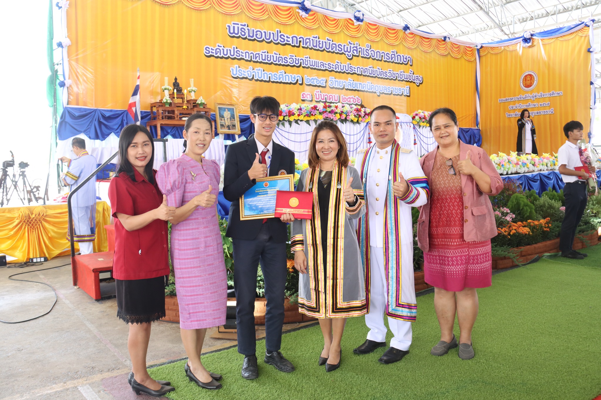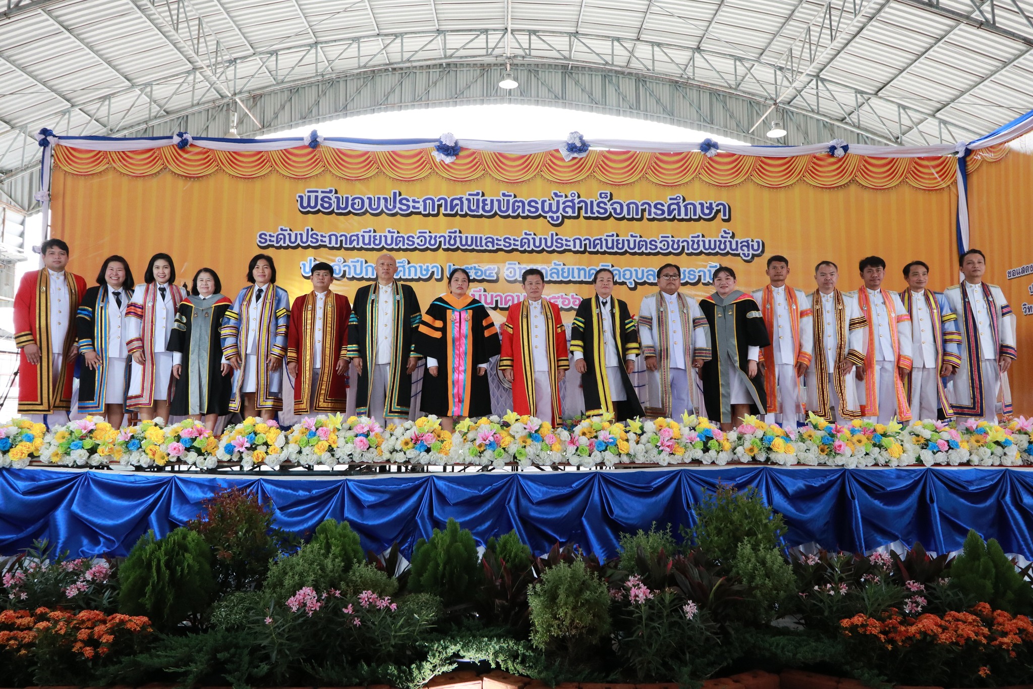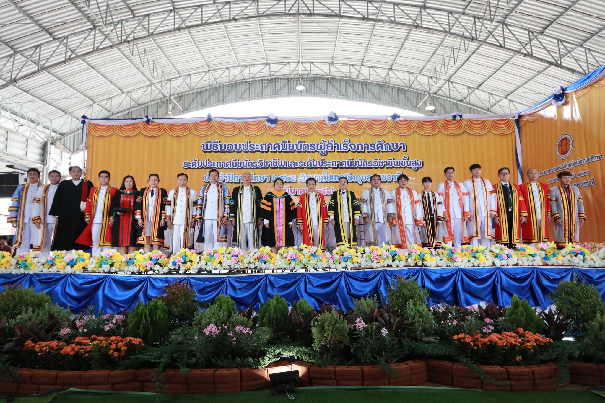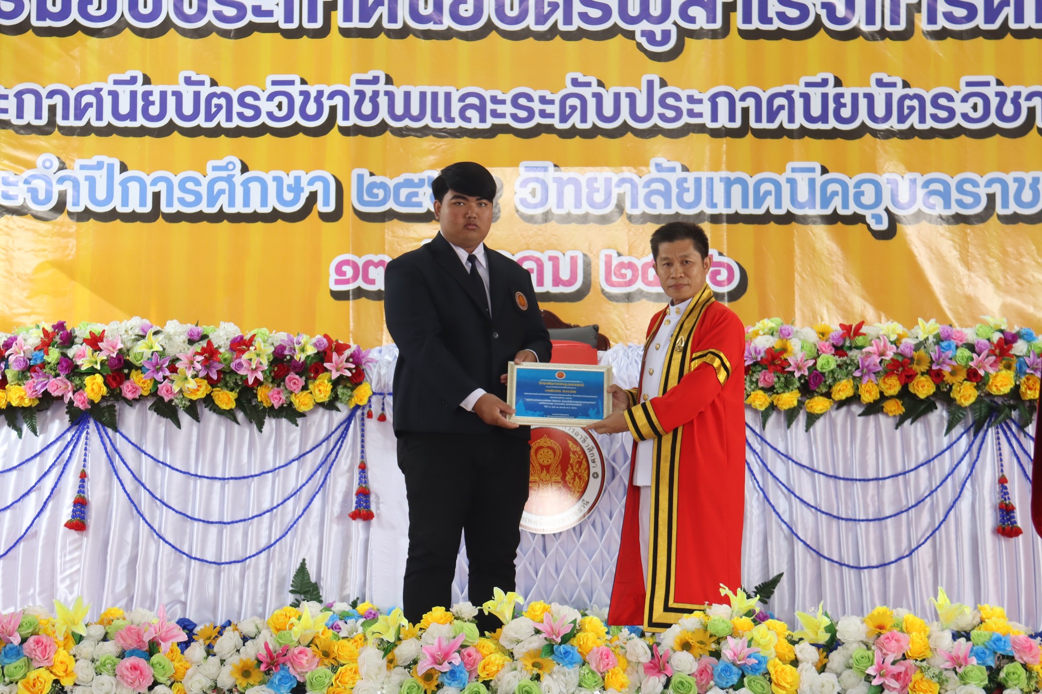 วันที่ ๑๓ มีนาคม ๒๕๖๖ เวลา ๐๘.๐๐ น. นายธาตรี พิบูลมณฑาผู้อำนวยการวิทยาลัยเทคนิคอุบลราชธานี ให้เกียรติเป็นประธานในพิธีมอบประกาศนียบัตรแก่ผู้สำเร็จการศึกษาระดับประกาศนียบัตรวิชาชีพ และระดับประกาศนียบัตรวิชาชีพชั้นสูง ประจำปีการศึกษา ๒๕๖๕ ณ หอประชุมโดมใหญ่ วิทยาลัยเทคนิคอุบลราชธานี โดยมี นางสาวสายฝน สาระผล รองผู้อำนวยการฝ่ายบริหารทรัพยากร เป็นผู้กล่าวรายงานในพิธี ในการนี้มี นางราตรี สะดีวงศ์ รองผู้อำนวยการฝ่ายแผนงานและความร่วมมือ นายไวพจน์ ศรีธัญ รองผู้อำนวยการฝ่ายพัฒนากิจการนักเรียนนักศึกษา นายสุวิชา มั่นยืน รองผู้อำนวยการฝ่ายวิชาการ พร้อมด้วยคณะหัวหน้าแผนกวิชา หัวหน้างาน ครู และบุคลากรทางการศึกษา นำนักเรียน นักศึกษา ระดับชั้นปวช.๓ และปวส.๒ เข้าร่วมพิธีอย่างพร้อมเพรียง ทั้งนี้เพื่อแสดงความยินดี และยกย่องเชิดชูเกียรติแก่นักเรียน นักศึกษา ที่สำเร็จการศึกษาอีกด้วย
