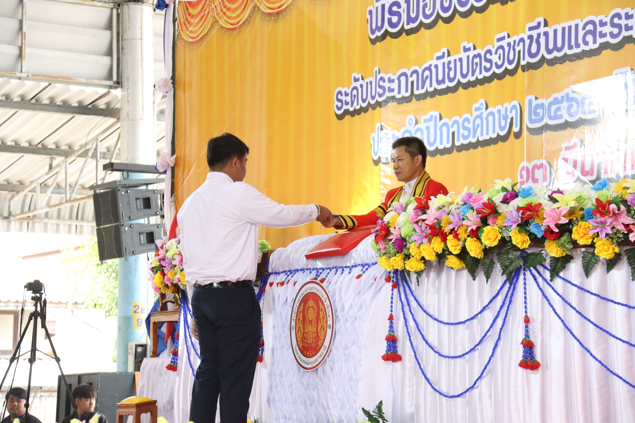 พิธีมอบประกาศนียบัตรแก่ผู้สำเร็จการศึกษาระดับประกาศนียบัตรวิชาชีพ และระดับประกาศนียบัตรวิชาชีพชั้นสูง ประจำปีการศึกษา ๒๕๖๕
