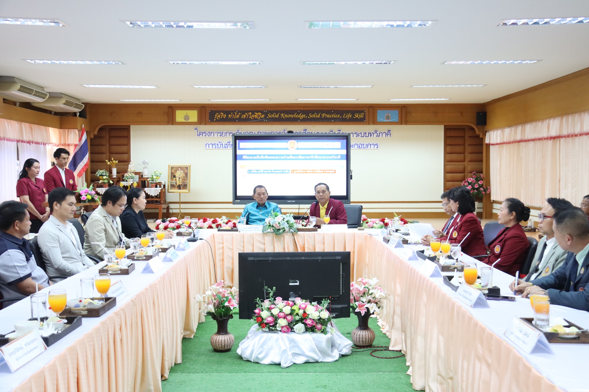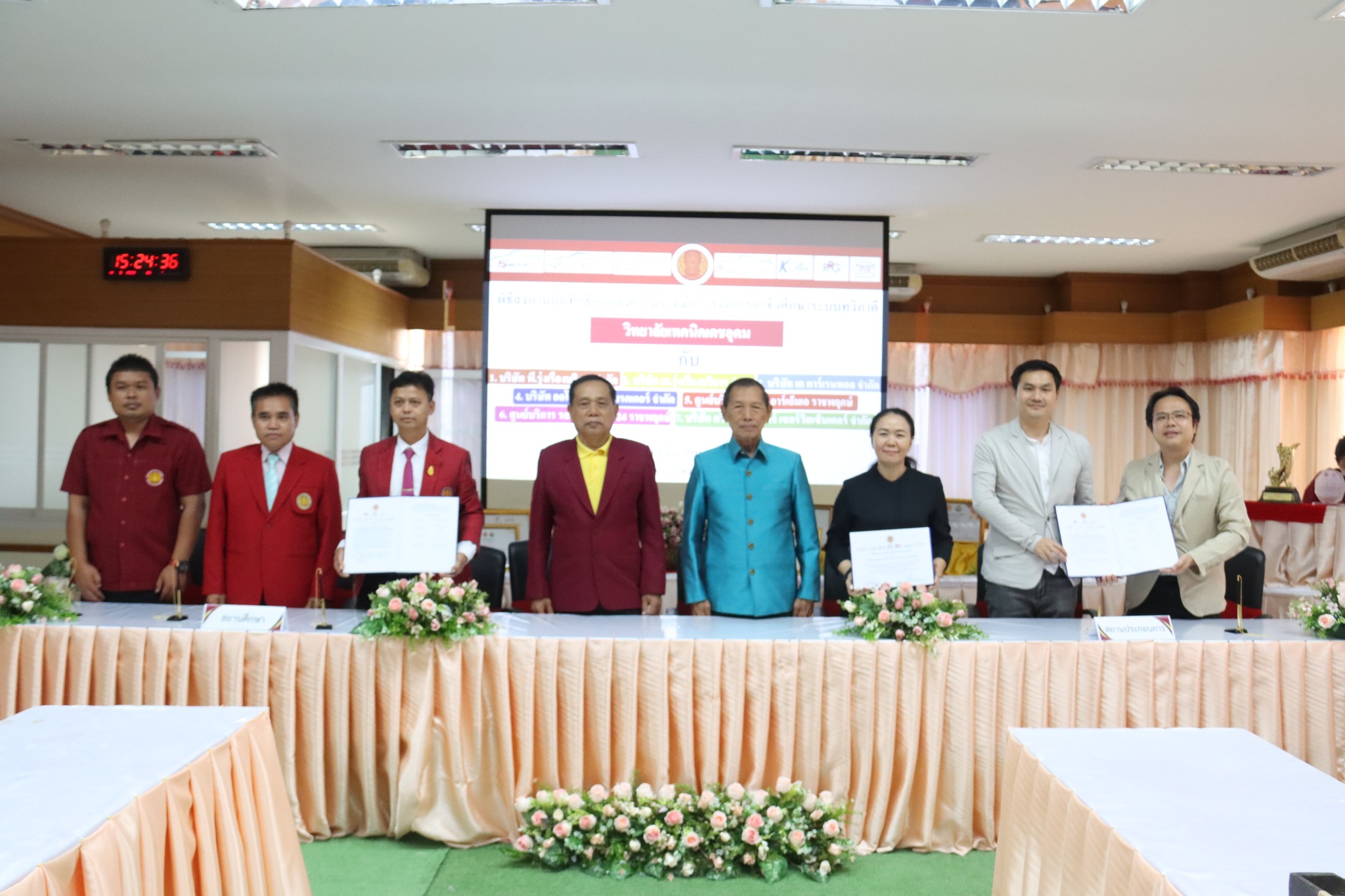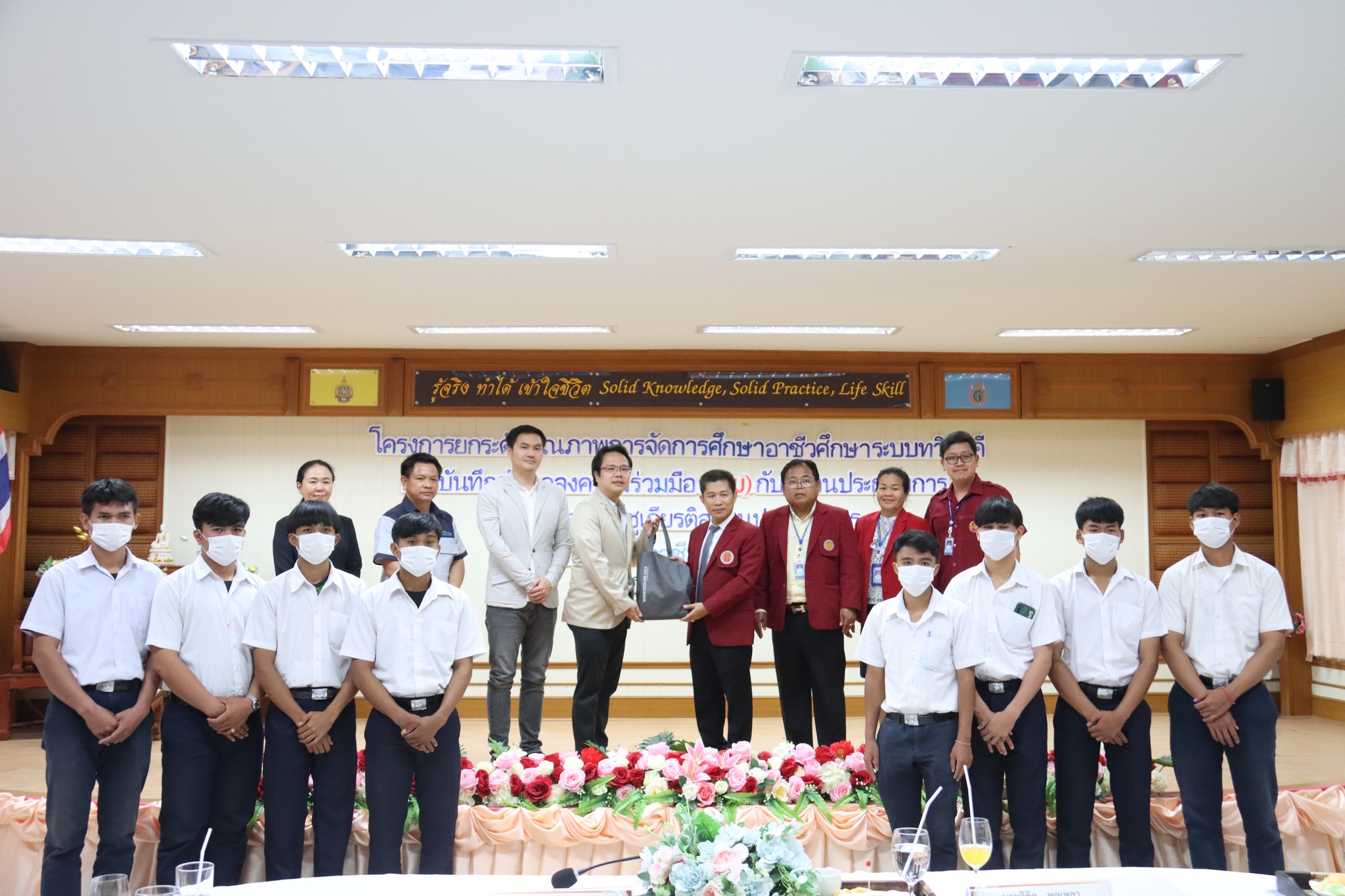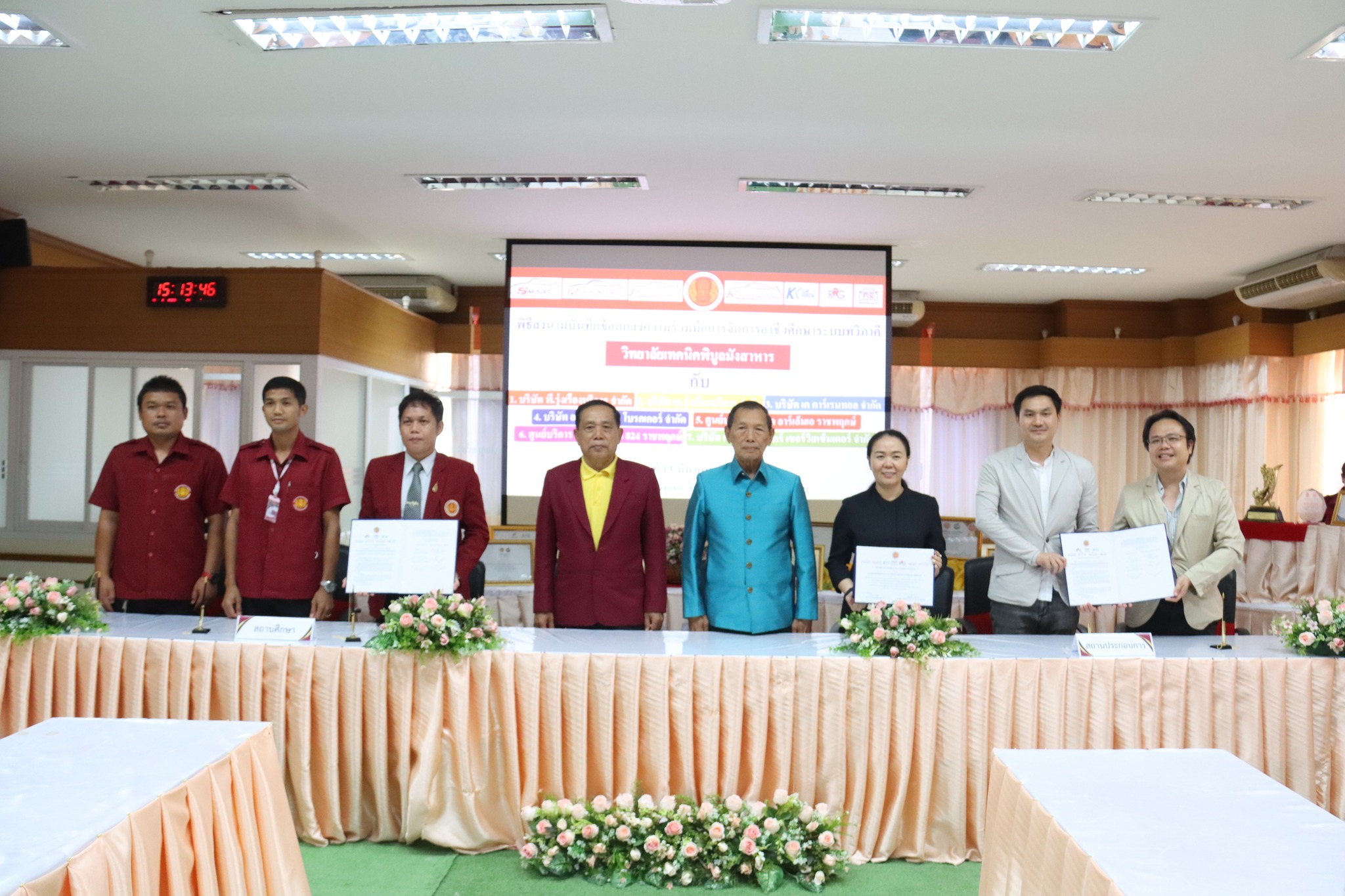 วันที่ ๑๓ มีนาคม ๒๕๖๖ เวลา ๑๓.๐๐ น. นายธาตรี พิบูลมณฑา ผู้อำนวยการวิทยาลัยเทคนิคอุบลราชธานีปฏิบัติหน้าที่ผู้อำนวยการสำนักงานอาชีวศึกษาจังหวัดอุบลราชธานี ให้เกียรติเข้าร่วมโครงการยกระดับคุณภาพการจัดการเรียนการศึกษาอาชีวศึกษาระบบทวิภาคี การบันทึกข้อตกลงความร่วมมือ (MOU) กับสถานประกอบการและยกย่องเชิดชูเกียรติสถานประกอบการ พร้อมทั้งกล่าวนโยบายและวัตถุประสงค์การจัดการเรียนการสอนระบบทวิภาคี เพื่อส่งเสริมให้ผู้เรียนเป็นผู้มีสมรรถนะสูง สอดคล้องกับ ๙ นโยบายเร่งด่วน ข้อ ๒ ยกระดับอาชีวศึกษาระบบทวิภาคี ในการนี้ได้รับเกียรติจาก นายลิขิต พลเหลา ผู้อำนวยการสถาบันการอาชีวศึกษาภาคตะวันออกเฉียงเหนือ ๔ เป็นผู้กล่าวต้อนรับและกล่าวถึง ๕ นโยบายหลัก ข้อที่ ๑ ยกระดับคุณภาพอาชีวศึกษา (Quality) พร้อมด้วยนางสุวนิจ สุริยพันตรี ผู้อำนวยการวิทยาลัยการอาชีพวารินชำราบ เป็นประธานเปิดพิธี และดร.สมใจ เทศศรีเมือง กรรมการผู้จัดการ บริษัท พี รุ่มเรืองบริการ จำกัด และคณะ เป็นผู้แนะนำภาพรวมกิจการ โดยมีคณะผู้บริหารสถานศึกษาในสังกัดสำนักงานอาชีวศึกษาจังหวัดอุบลราชธานี ได้แก่ ๑.วิทยาลัยการอาชีพวารินชำราบ ๒.วิทยาลัยเทคนิคอุบลราชธานี ๓.วิทยาลัยเทคนิคนครอุบลราชธานี ๔.วิทยาลัยเทคนิคตระการพืชผล ๕.วิทยาลัยเทคนิคเดชอุดม ๖.วิทยาลัยเทคนิคพิบูลมังสาหาร ๗.วิทยาลัยเทคนิคเขมราฐ และวิทยาลัยเทคนิคหัวตะพาน เข้าร่วมพิธีอย่างพร้อมเพรียง ณ ห้องประชุมวารินนคร วิทยาลัยการอาชีพวารินชำราบ