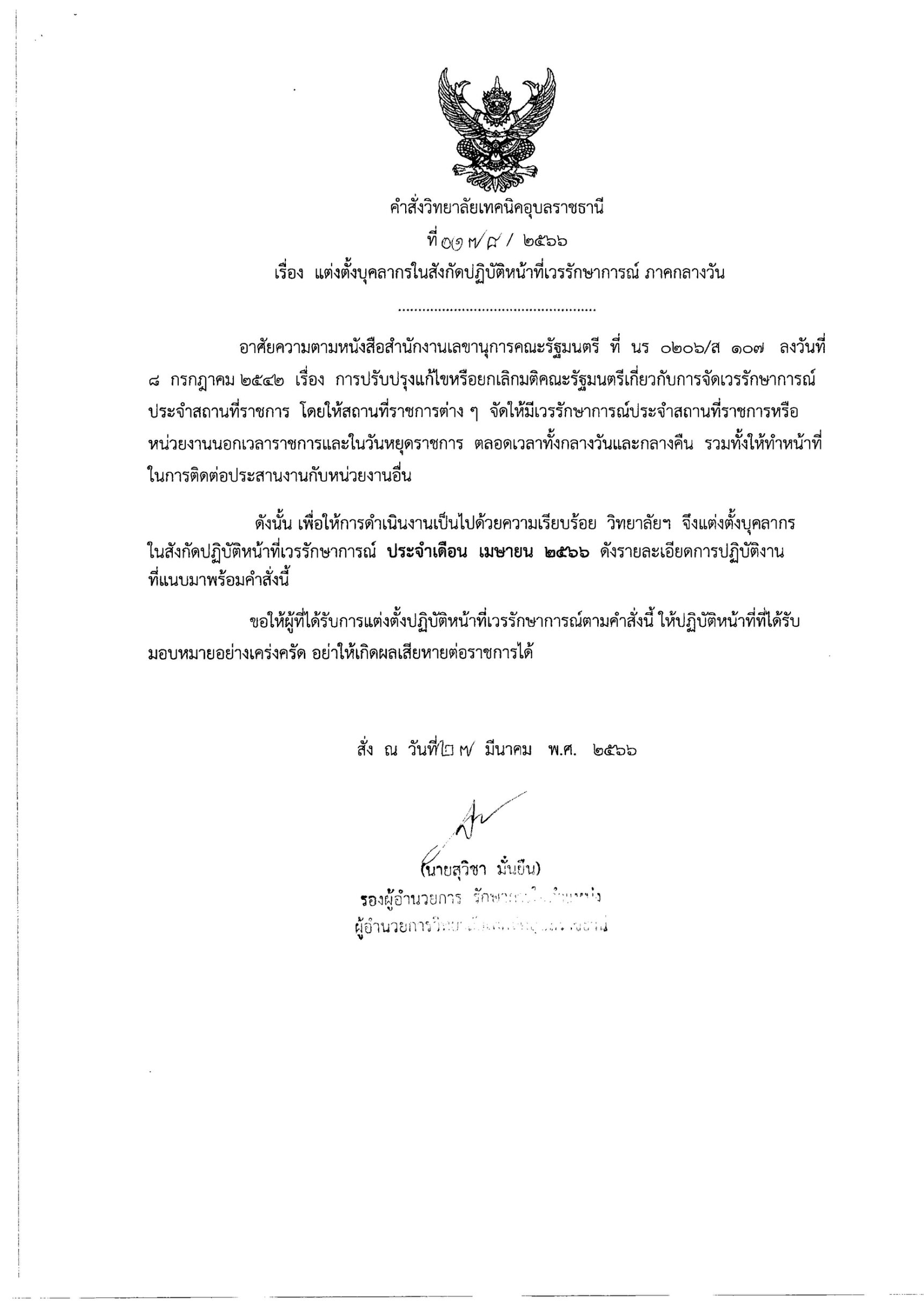 คำสั่งวิทยาลัยเทคนิคอุบลราชธานี 2566