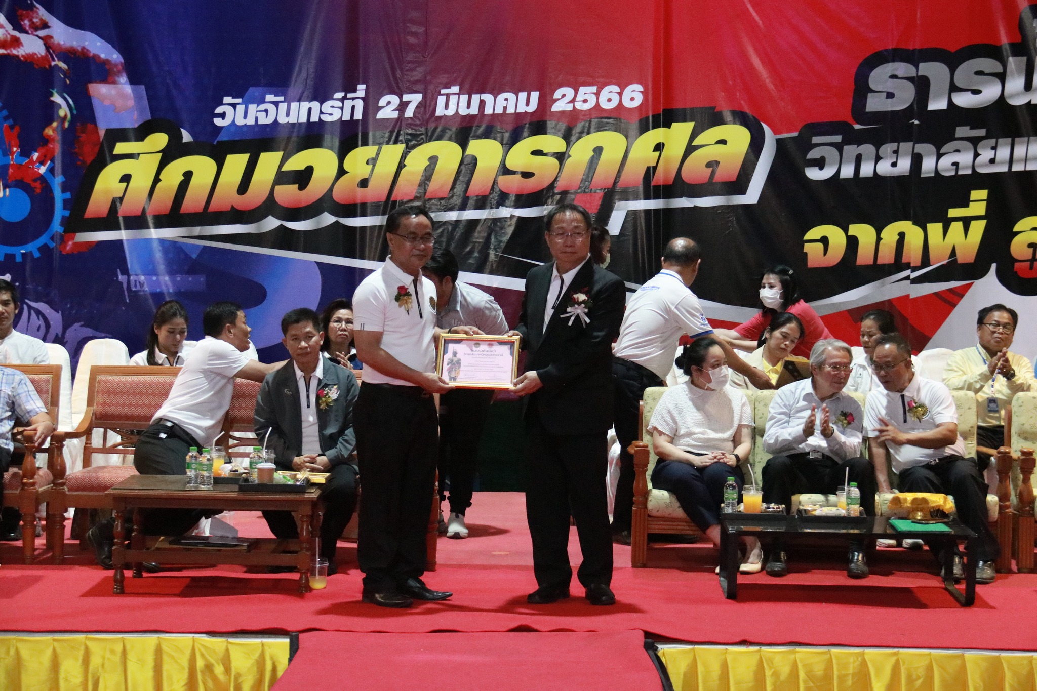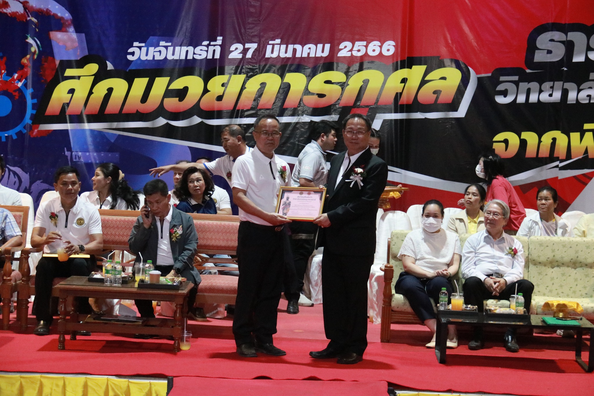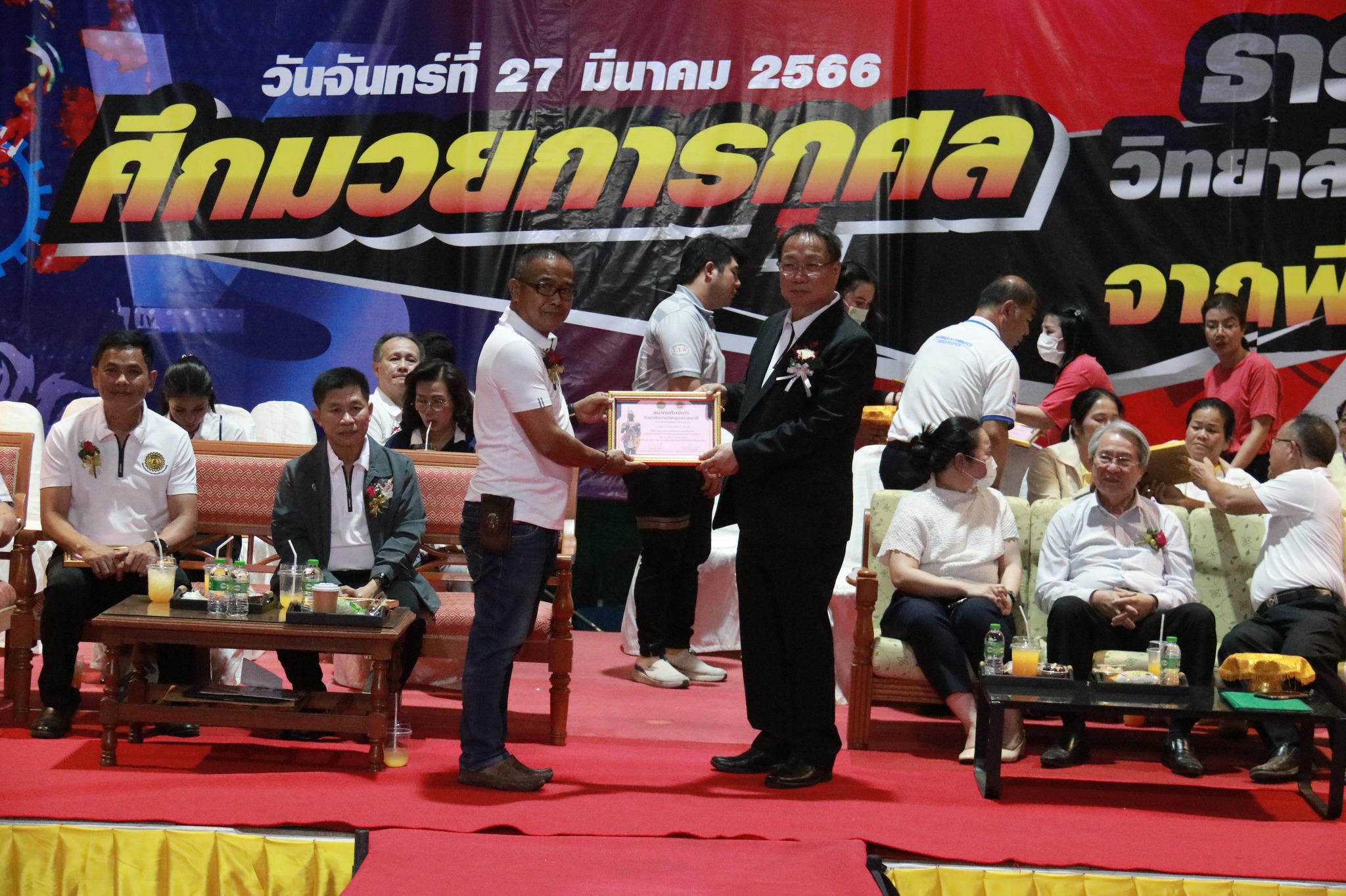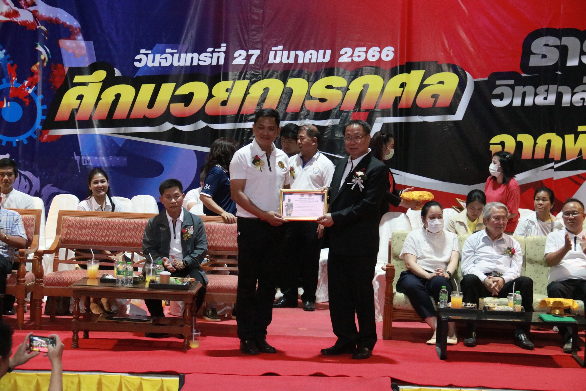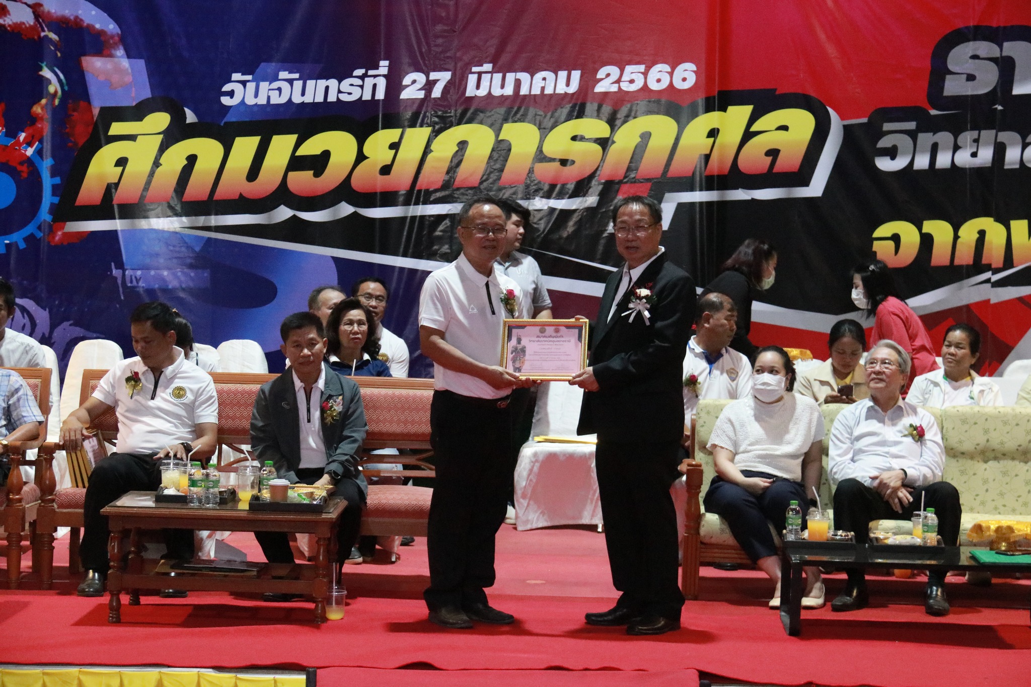วันที่ ๒๗ มีนาคม ๒๕๖๖ เวลา ๑๗.๐๐ น. นายธาตรี พิบูลมณฑา ผู้อำนวยการวิทยาลัยเทคนิคอุบลราชธานี ให้เกียรติกล่าวต้อนรับในพิธีเปิดกิจกรรมมวยการกุศล “ศึกวันธารน้ำใจศิษย์เก่าวิทยาลัยเทคนิคอุบลราชธานี จากพี่สู่น้อง” ซึ่งดำเนินการจัดกิจกรรมโดยสมาคมศิษย์เก่าวิทยาลัยเทคนิคอุบลราชธานี ในการนี้ได้รับเกียรติจาก นายกำพล สิริรัตตนนท์ รองผู้ว่าราชการจังหวัดอุบลราชธานี เป็นประธานในพิธี และนายประสงค์ จันจำปา นายกสมาคมศิษย์เก่าวิทยาลัยเทคนิคอุบลราชธานี เป็นผู้กล่าวรายงาน โดยมี นางสาวสายฝน สาระผล รองผู้อำนวยการฝ่ายบริหารทรัพยากร นางราตรี สะดีวงศ์ รองผู้อำนวยการฝ่ายแผนงานและความร่วมมือ นายสุวิชา มั่นยืน รองผู้อำนวยการฝ่ายวิชาการ พร้อมด้วยคณะครู บุคลากรทางการศึกษา และประชาชนที่ให้ความสนใจ เข้าร่วมกิจกรรมอย่างพร้อมเพรียง ณ หอประชุมโดมใหญ่ ทั้งนี้เพื่อหารายได้มอบเป็นทุนการศึกษาสำหรับนักศึกษาวิทยาลัยเทคนิคอุบลราชธานีที่เรียนดีแต่ขาดทุนทรัพย์, นักศึกษาที่ทำคุณประโยชน์ต่อสถานศึกษานำชื่อเสียงมาสู่วิทยาลัยฯ ตลอดทั้งสนับสนุนการดำเนินงานของสมาคมศิษย์เก่าวิทยาลัยเทคนิคอุบลราชธานีอีกด้วย