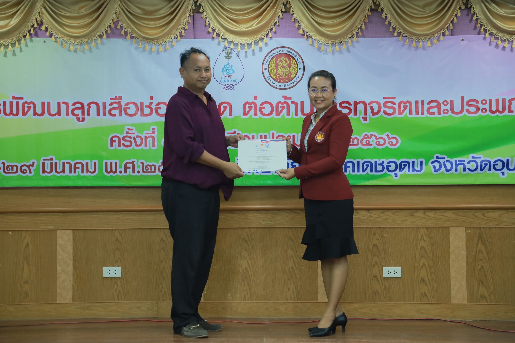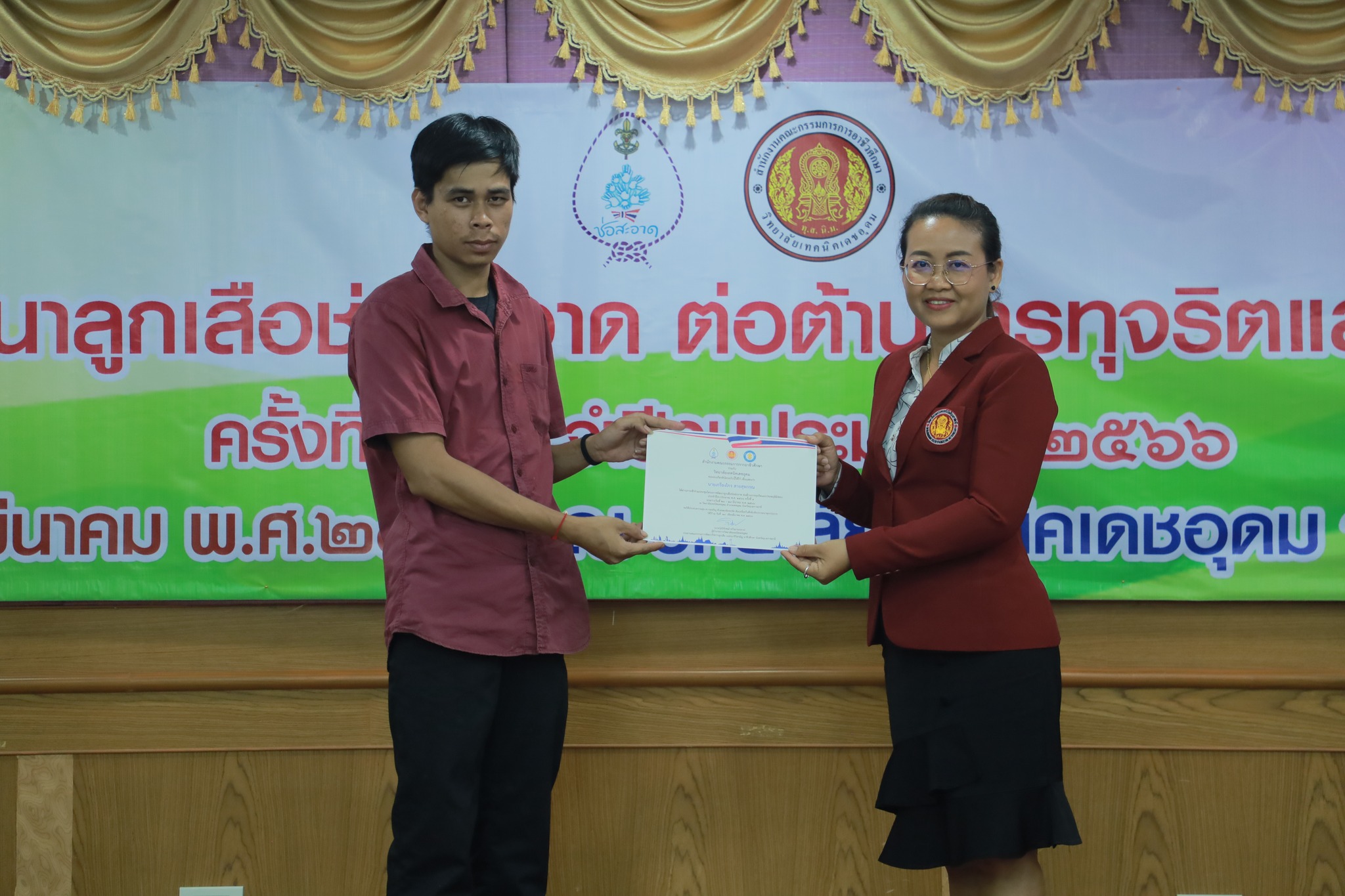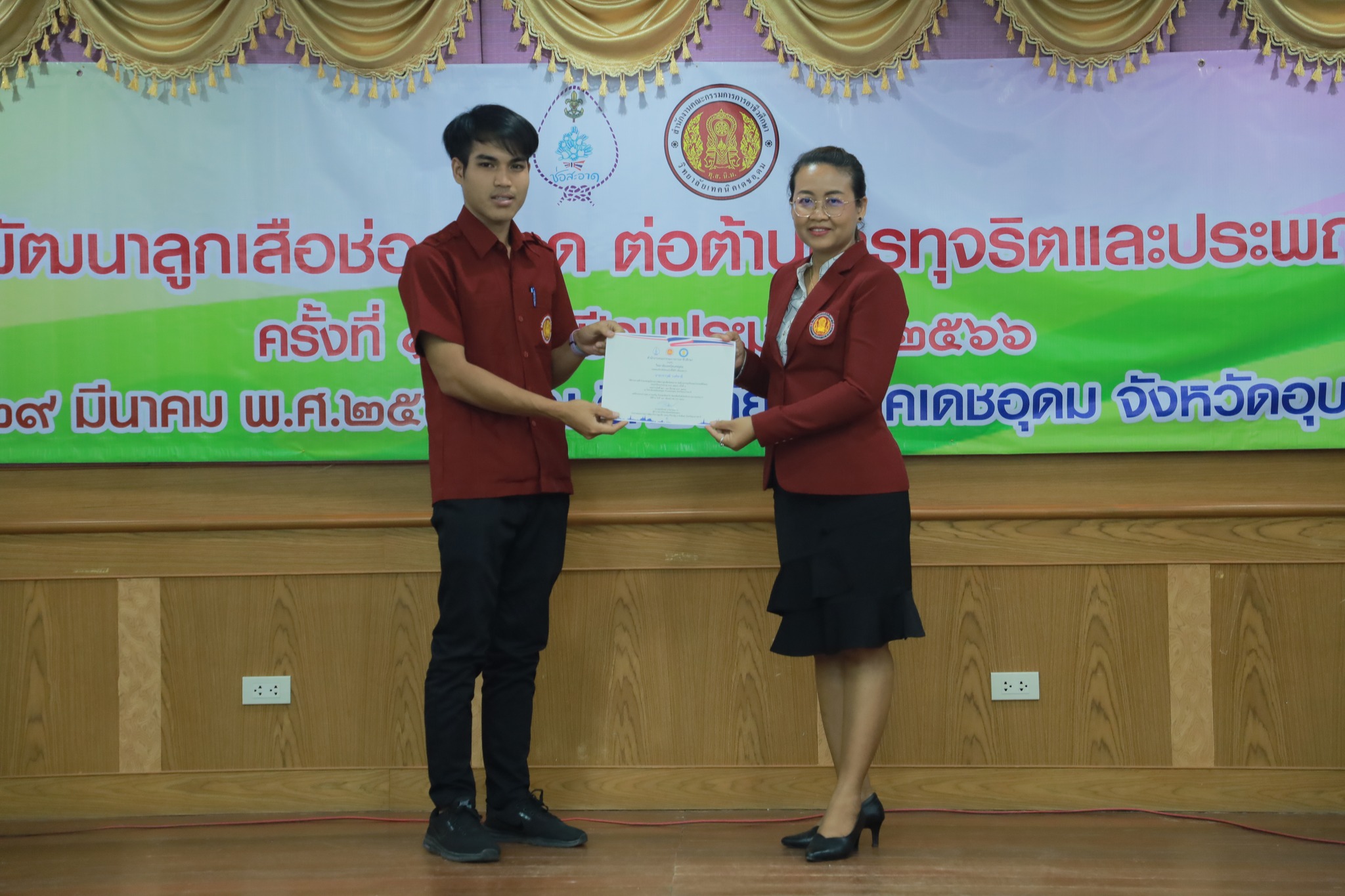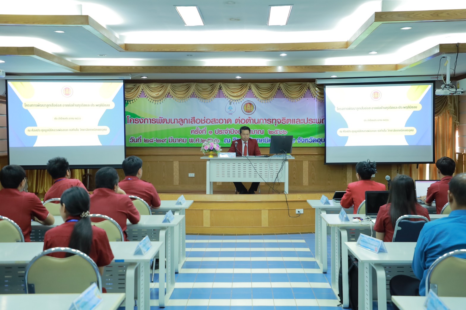 วันที่ ๒๘ มีนาคม ๒๕๖๖ ที่ผ่านมา นายธาตรี พิบูลมณฑา ผู้อำนวยการวิทยาลัยเทคนิคอุบลราชธานี ได้มอบหมายให้ ว่าที่ร้อยตรีขวัญชัย เนืองเนตร หัวหน้าครูที่ปรึกษาลูกเสือวิสามัญ และนางสาวสิริลักษณ์ รักสกุล ผู้ช่วยครูที่ปรึกษาลูกเสือวิสามัญ พร้อมด้วยคณะครู วิทยาลัยเทคนิคอุบลราชธานี เข้าร่วมการประชุมเชิงปฏิบัติการโครงการพัฒนาลูกเสือช่อสะอาด ต่อต้านการทุจริตและประพฤติมิชอบ ประจำปีงบประมาณพ.ศ. ๒๕๖๖ ครั้งที่ ๑ ซึ่งดำเนินการประชุมระหว่างวันที่ ๒๘ – ๒๙ มีนาคม ๒๕๖๖ ในการนี้มีนายพงษ์ศักดิ์ ศรีชา รองผู้อำนวยการวิทยาลัยเทคนิคเดชอุดม เป็นประธานเปิดการประชุม ณ ห้องประชุมหลวงพ่ออเนก ยสทินโน เพื่อการศึกษา วิทยาลัยเทคนิคเดชอุดม ทั้งนี้เพื่อสร้างการรับรู้ ความเข้าใจให้กับผู้บริหาร ครู และบุคลากรทางการศึกษาที่เกี่ยวข้องของสถานศึกษาในสังกัดสำนักงานอาชีวศึกษาจังหวัดอุบลราชธานี ต่อไป