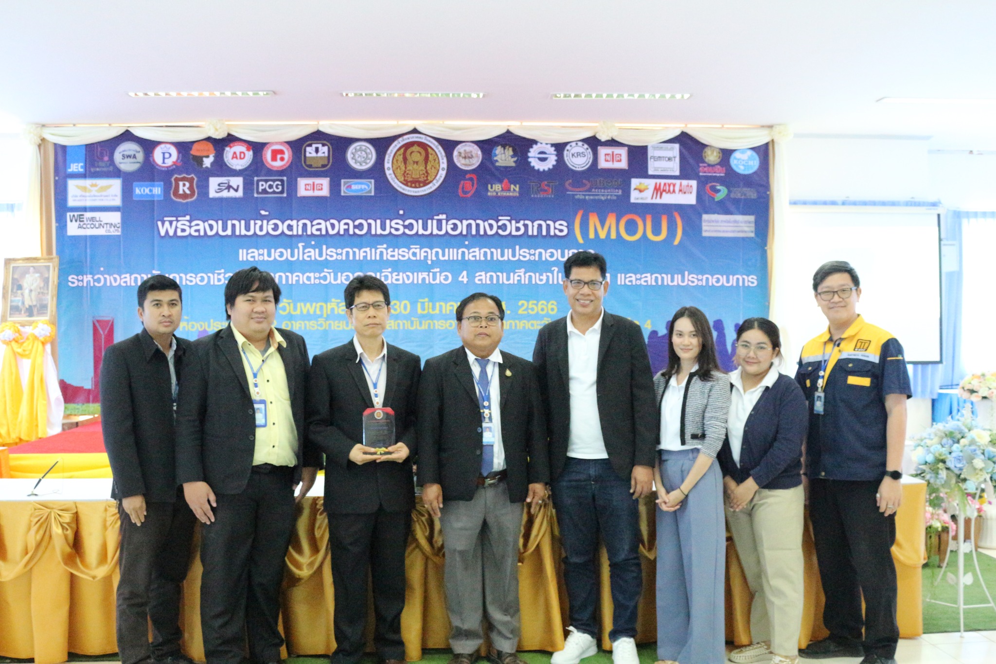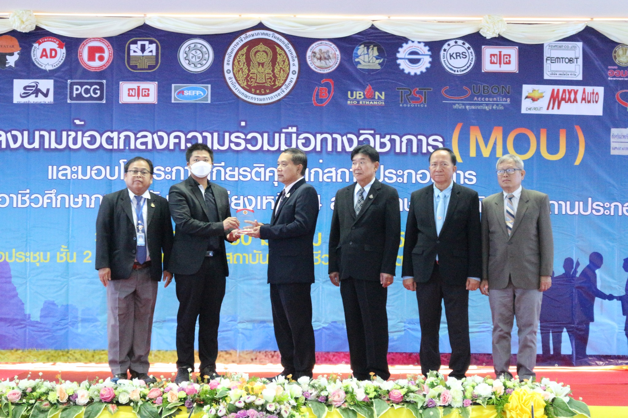 วันที่ ๓๐ มีนาคม ๒๕๖๖ เวลา ๐๙.๐๐ น. นายธาตรี พิบูลมณฑาผู้อำนวยการวิทยาลัยเทคนิคอุบลราชธานี ได้มอบหมายให้ นายสุวิชา มั่นยืน รองผู้อำนวยการฝ่ายวิชาการ พร้อมด้วยนายกตนนท์ นาทัน หัวหน้าแผนกวิชาช่างยนต์/เครื่องกล ว่าที่ ร.ต.กรีฑาวุฒิ ทนงจิต หัวหน้างานความร่วมมือ นายสถิระ กาญจันดา หัวหน้างานอาชีวศึกษาบัณฑิต และคณะครู วิทยาลัยเทคนิคอุบลราชธานี เข้าร่วมพิธีลงนามข้อตกลงความร่วมมือทางวิชาการ (MOU) ระหว่าง สถาบันการอาชีวศึกษาภาคตะวันออกเฉียงเหนือ ๔ ร่วมกับสถานศึกษาในสังกัดสถาบันการอาชีวศึกษาภาคตะวันออกเฉียงเหนือ ๔ และสถานประกอบการจำนวน ๑๖ แห่ง ณ สถาบันการอาชีวศึกษาภาคตะวันออกเฉียงเหนือ ๔ นอกจากนี้ได้จัดพิธีมอบโล่ประกาศเกียรติคุณแก่สถานประกอบการอีกด้วย ในการนี้ได้รับเกียรติจาก นายลิขิต พลเหลา ผู้อำนวยการสถาบันการอาชีวศึกษาภาคตะวันออกเฉียงเหนือ ๔ เป็นประธานในพิธีเปิด และมีคณะผู้บริหารสถานศึกษา ครู และบุคลากรทางการศึกษาในสังกัดสถาบันการอาชีวศึกษาภาคตะวันออกเฉียงเหนือ ๔ เข้าร่วมพิธีอย่างพร้อมเพรียง ทั้งนี้เพื่อสร้างเครือข่ายความร่วมมือทางวิชาการ แลกเปลี่ยนความรู้ ในการพัฒนาศักยภาพผู้เรียนอาชีวศึกษา และเพื่อเชิดชูเกียรติสถานประกอบการที่ให้ความร่วมมือในการจัดการอาชีวศึกษาระบบทวิภาคีต่อไป
