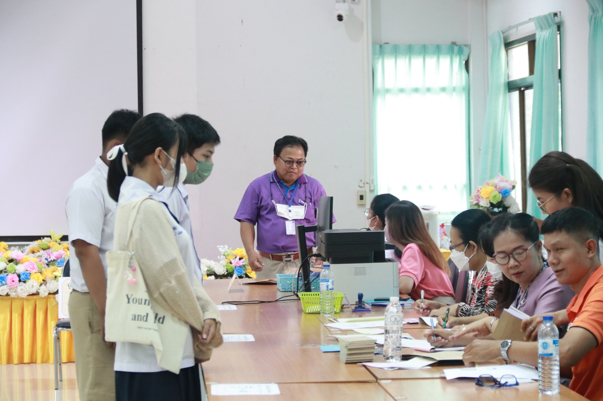 วันที่ ๑ เมษายน ๒๕๖๖ เวลา ๐๘.๓๐ น. นายธาตรี พิบูลมณฑา ผู้อำนวยการวิทยาลัยเทคนิคอุบลราชธานี ได้มอบหมายให้ นางสาวสายฝน สาระผล รองผู้อำนวยการฝ่ายบริหารทรัพยากร นางราตรี สะดีวงศ์ รองผู้อำนวยการฝ่ายแผนงานและความร่วมมือ นายไวพจน์ ศรีธัญ รองผู้อำนวยการฝ่ายพัฒนากิจการนักเรียนนักศึกษา และนายสุวิชา มั่นยืน รองผู้อำนวยการฝ่ายวิชาการ เข้าติดตามการดำเนินงานรับมอบตัวนักเรียน นักศึกษา ประเภททั่วไป ประจำปีการศึกษา ๒๕๖๖ ณ อาคารหอประชุมโดมน้อย ซึ่งในวันนี้ วิทยาลัยเทคนิคอุบลราชธานี ได้กำหนดให้เป็นการมอบตัวนักเรียน นักศึกษา ระดับประกาศนียบัตรวิชาชีพ (ปวช.) ระดับประกาศนียบัตรวิชาชีพชั้นสูง (ปวส.) และระดับปริญญาตรีเทคโนโลยีบัณฑิต (ทล.บ.) โดยภายในงานได้มีการขึ้นทะเบียนเป็นนักเรียน นักศึกษาใหม่ พร้อมการรับชุดนักเรียนนักศึกษา และชุดฝึกงานด้วย