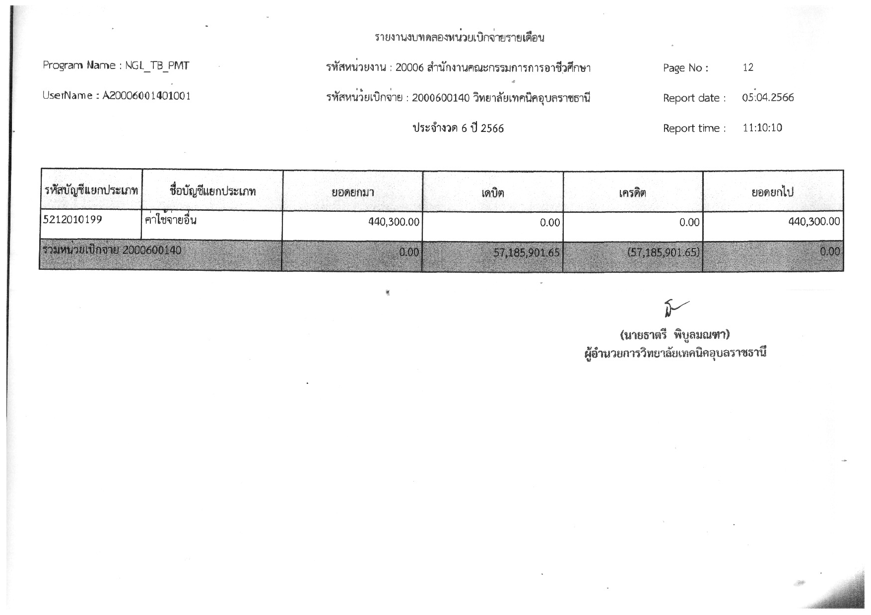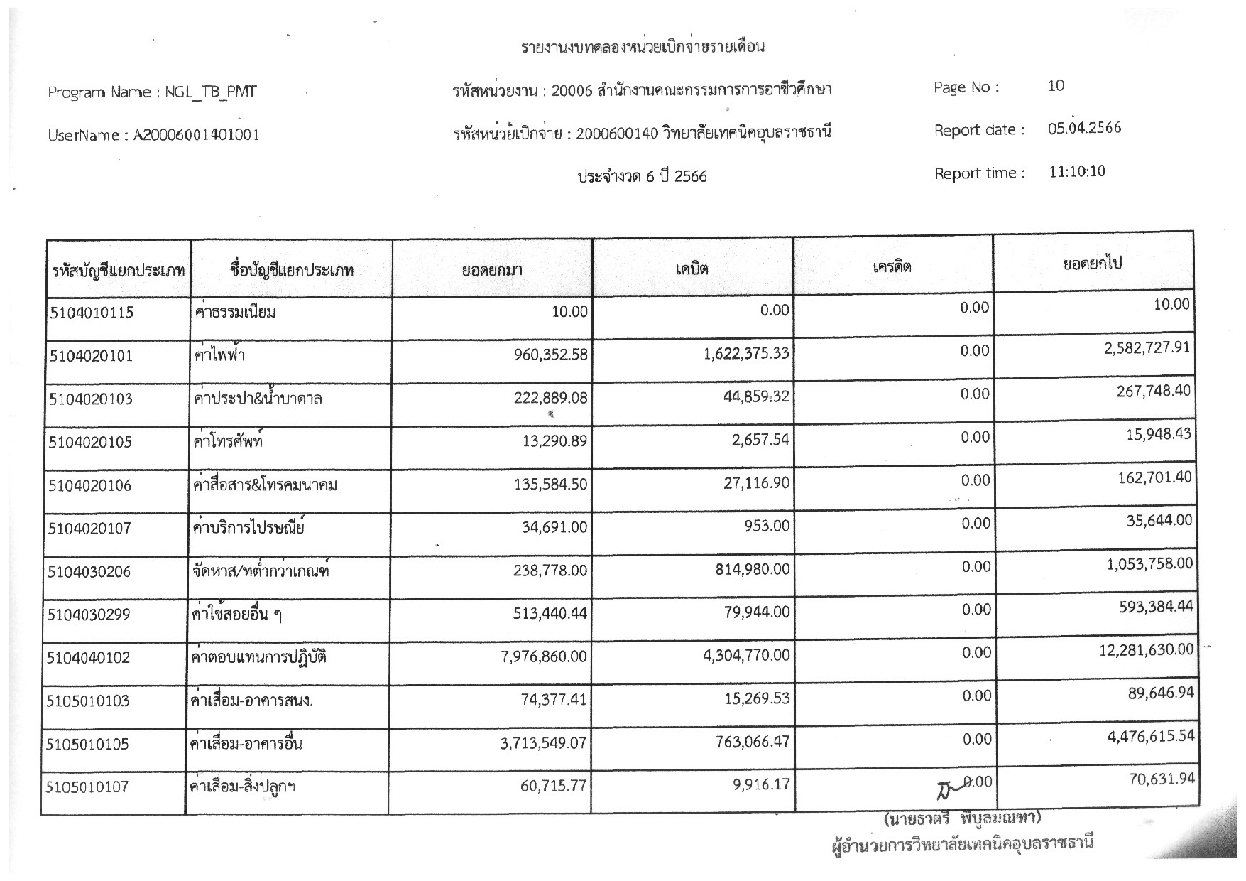 รายงานงบทดลองประจำเดือน มีนาคม2566