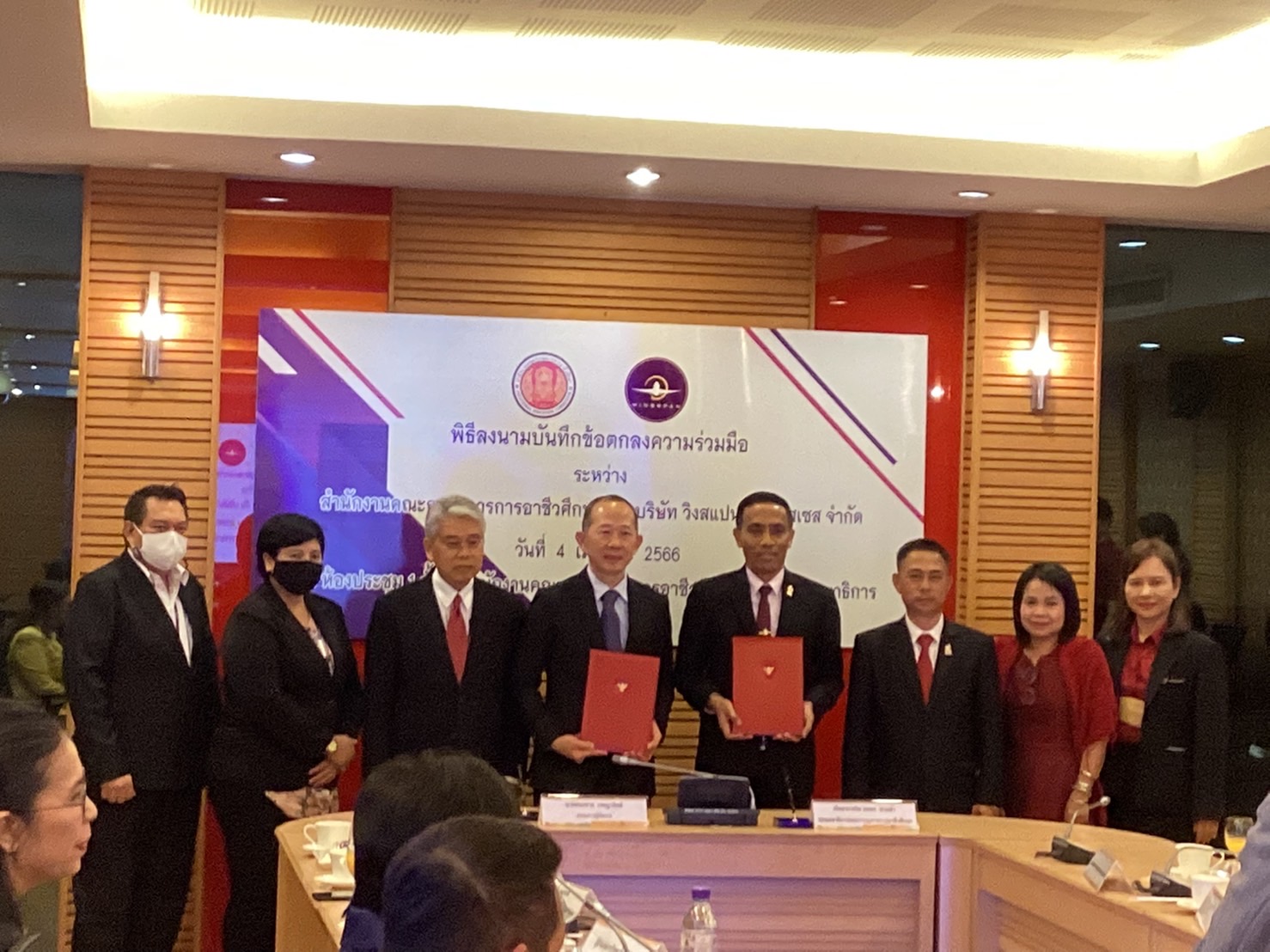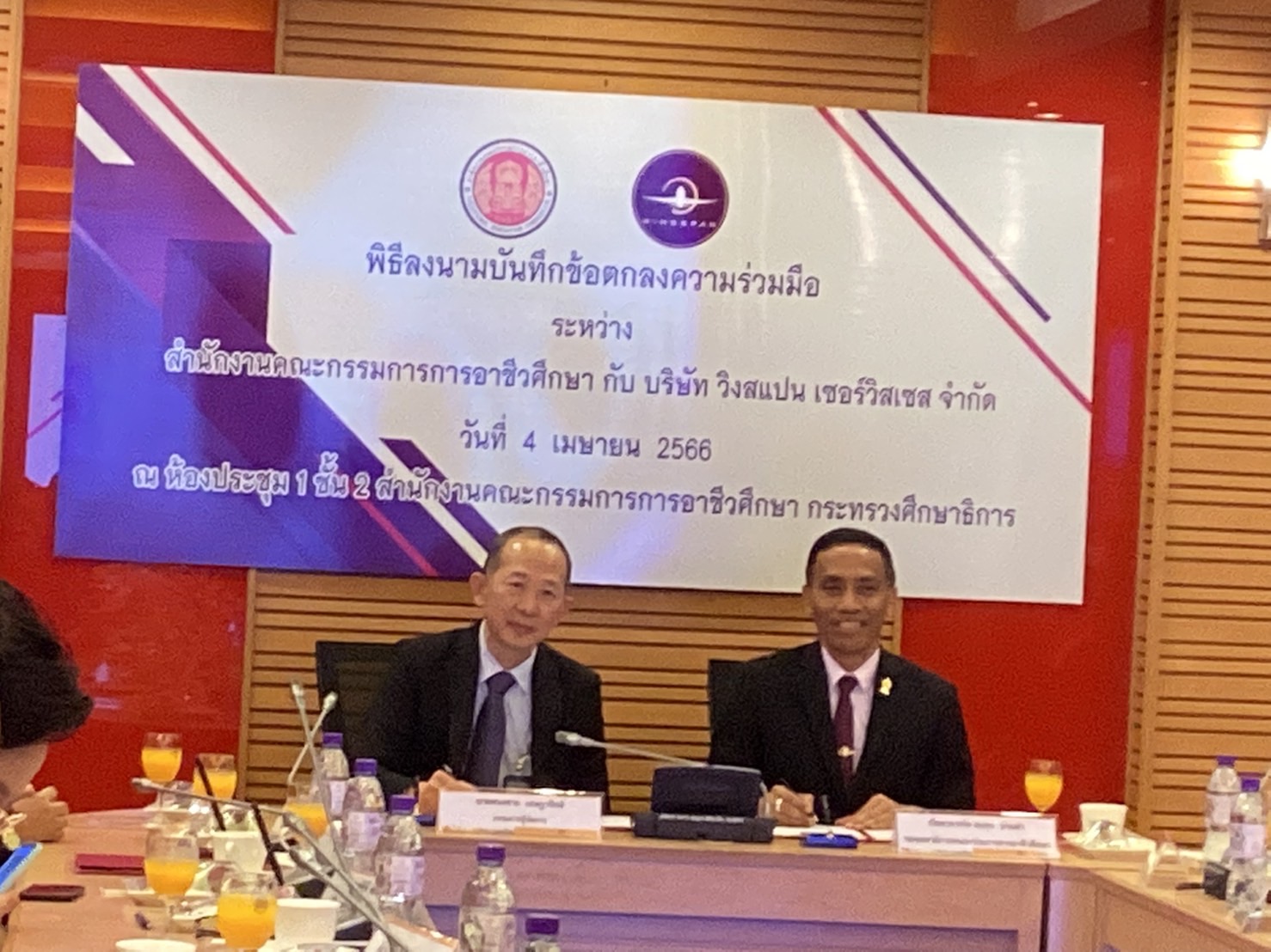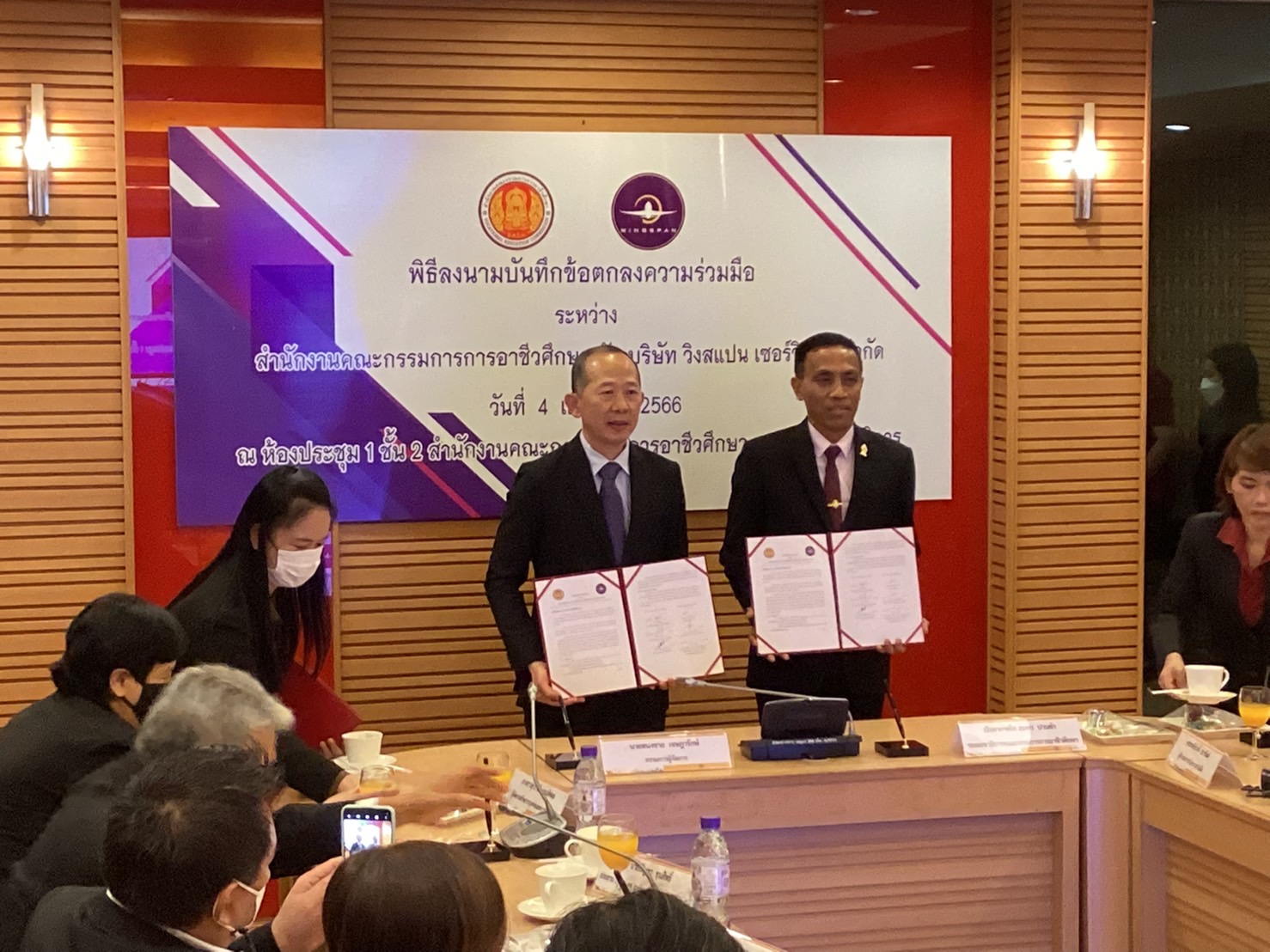 พิธีลงนามบันทึกข้อตกลงความร่วมมือระหว่าง สำนักงานคณะกรรมการการอาชีวศึกษา กับ บริษัท วิงสแปน เซอร์วิสเซส จำกัด