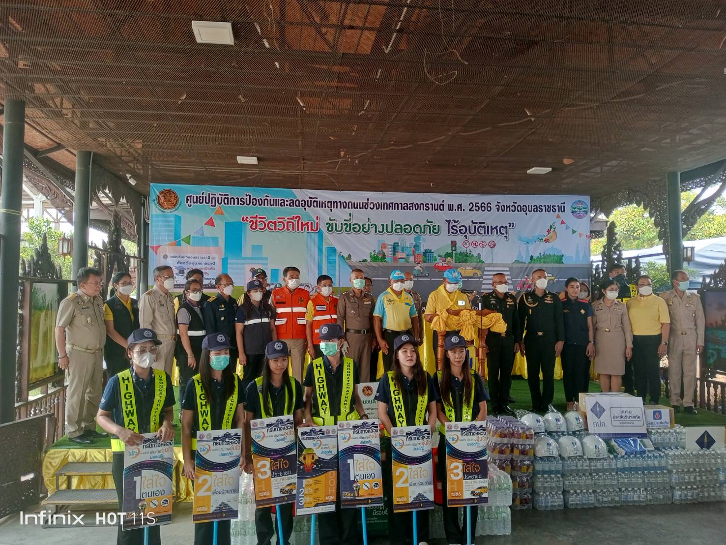 กิจกรรมเปิดศูนย์ปฏิบัติการป้องกันและลดอุบัติเหตุทางถนนช่วงเทศกาลสงกรานต์ พ.ศ. ๒๕๖๖ จังหวัดอุบลราชธานี ในการนี้ได้รับเกียรติจาก นายชลธี ยังตรง ผู้ว่าราชการจังหวัดอุบลราชธานี