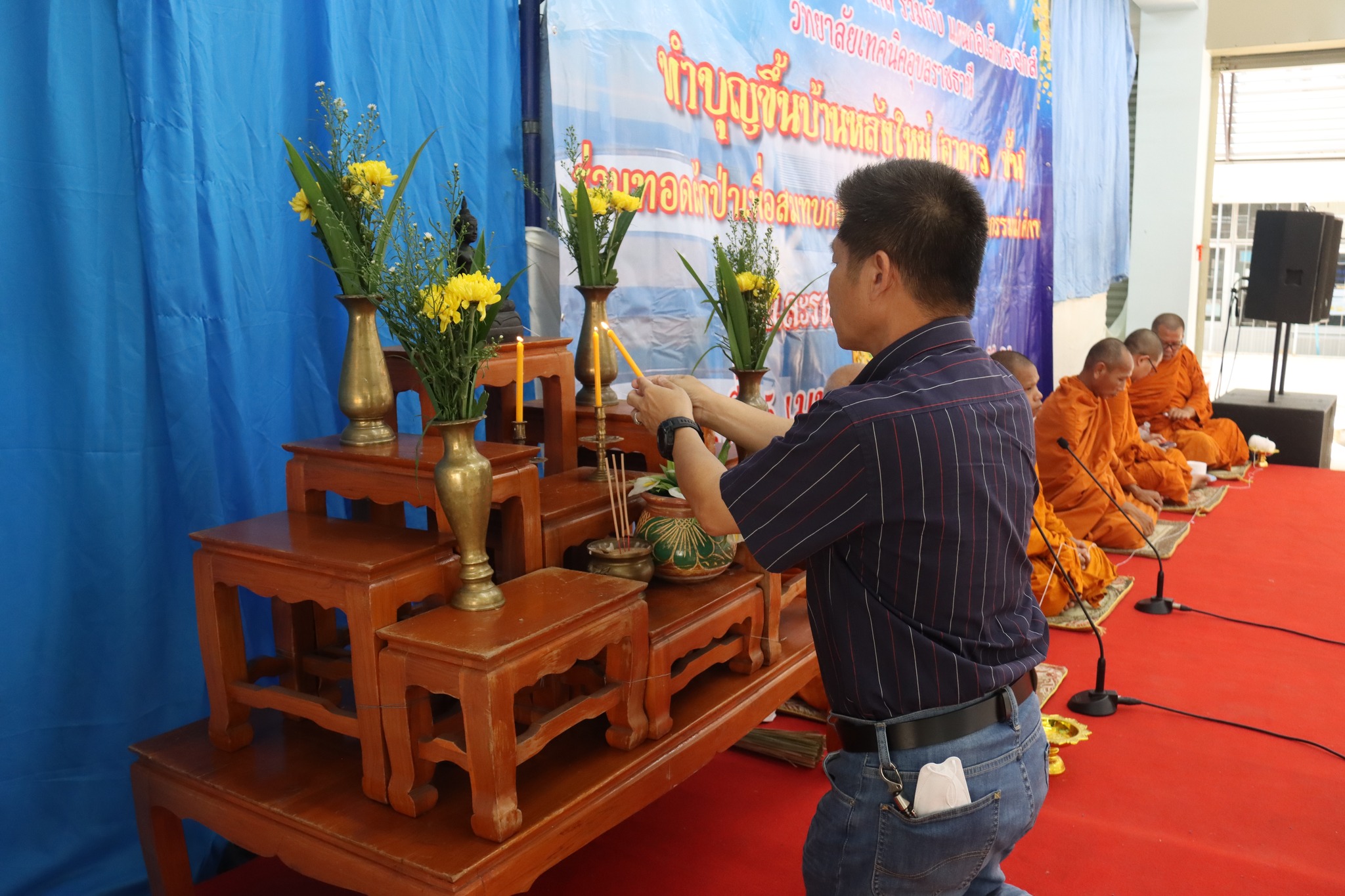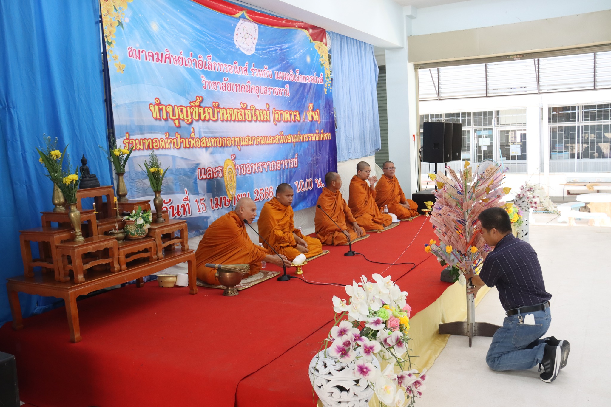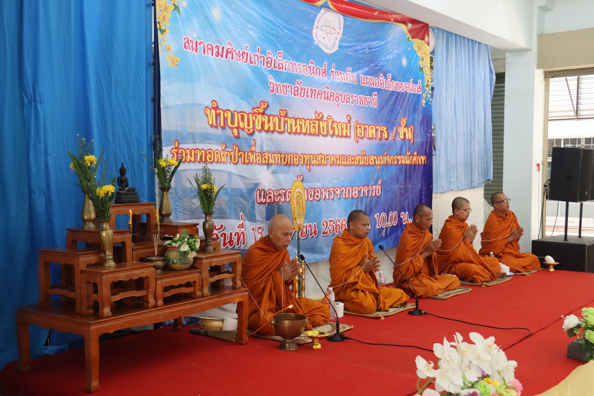 วันที่ ๑๕ เมษายน ๒๕๖๖เวลา ๑๐.๐๐ น. นายธาตรี พิบูลมณฑา ผู้อำนวยการวิทยาลัยเทคนิคอุบลราชธานี ให้เกียรติิเป็นประธานในพิธีทำบุญขึ้นบ้านใหม่ (อาคาร ๔ ชั้น) ร่วมทอดผ้าป่าเพื่อสมทบกองทุนสมาคมและสนับสนุนกิจกรรมนักศีกษา และรดน้ำขอพรจากอาจารย์ ซึ่งสมาคมศิษย์เก่าแผนกวิชาอิเล็กทรอนิกส์ ร่วมกับแผนกวิชาอิเล็กทรอนิกส์ วิทยาลัยเทคนิคอุบลราชธานี เป็นผู้ดำเนินการจัดพิธีในครั้งนี้ ในการนี้ได้รับความเมตตาจาก พระครูสารธรรมประคุณ เจ้าอาวาสวัดกุดคูณ เป็นประธานคณะสงฆ์ โดยมี นางสาวสายฝน สาระผล รองผู้อำนวยการฝ่ายบริหารทรัพยากร นายวิเชียร กำทอง หัวหน้าแผนกวิชาอิเล็กทรอนิกส์ พร้อมด้วยสมาคมศิษย์เก่าแผนกวิชาอิเล็กทรอนิกส์ ครูผู้เกษียณอายุราชการ ครูแผนกวิชาอิเล็กทรอนิกส์ และบุคลากรทางการศึกษาที่เกี่ยวข้อง เข้้าร่วมพิธีอย่างพร้อมเพรียง ณ แผนกวิชาอิเล็กทรอนิกส์