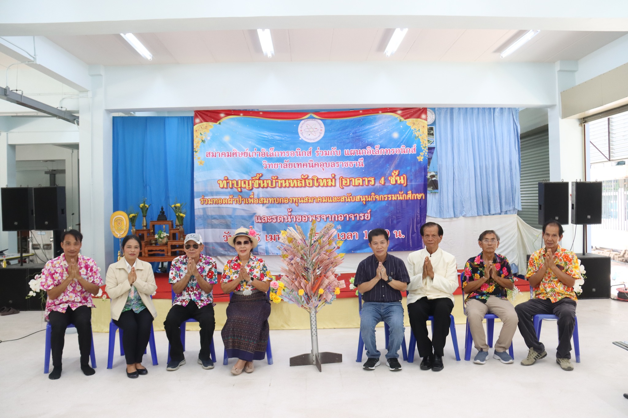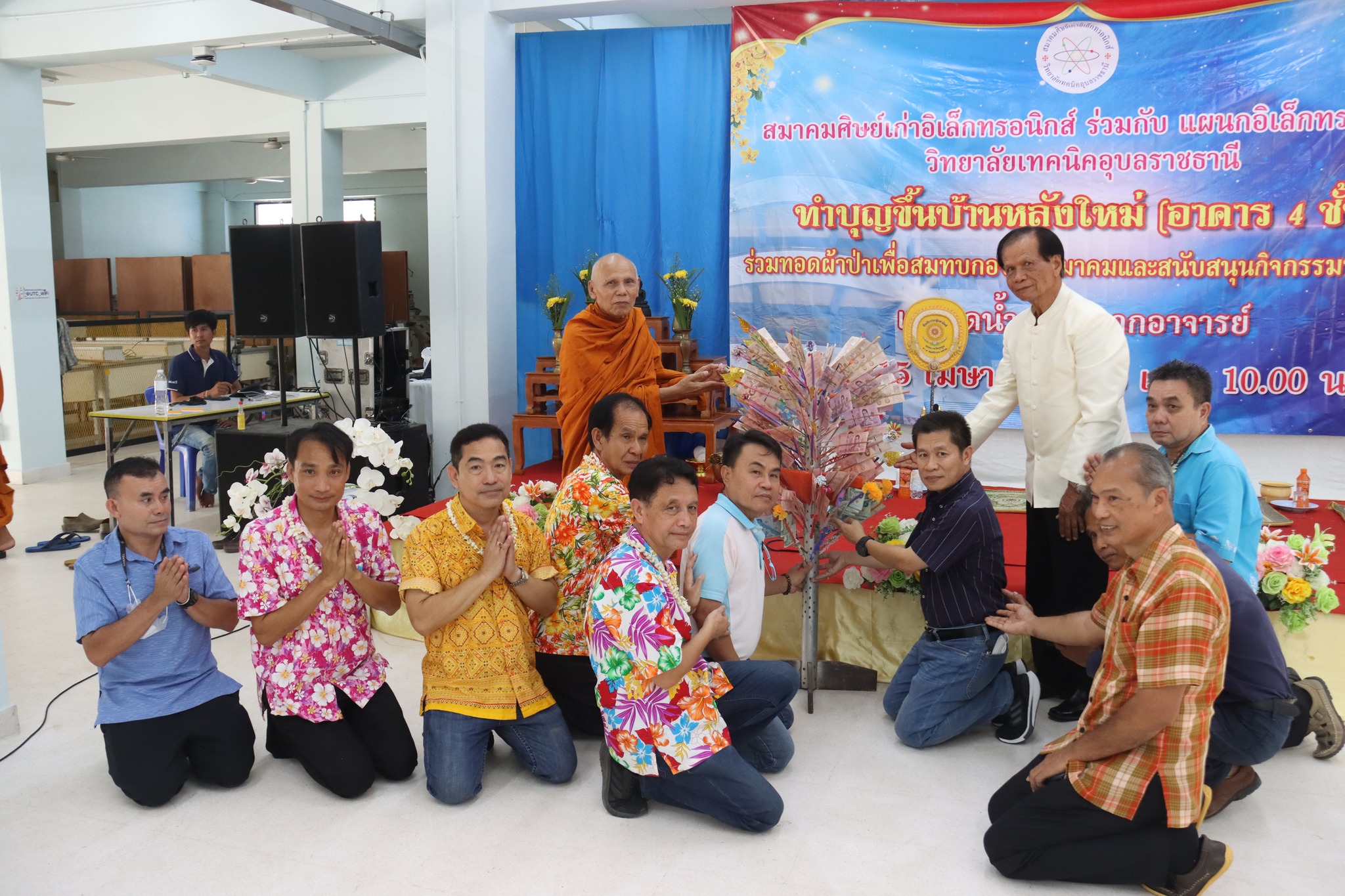 ธีทำบุญขึ้นบ้านใหม่ (อาคาร ๔ ชั้น) ร่วมทอดผ้าป่าเพื่อสมทบกองทุนสมาคมและสนับสนุนกิจกรรมนักศีกษา และรดน้ำขอพรจากอาจารย์ ซึ่งสมาคมศิษย์เก่าแผนกวิชาอิเล็กทรอนิกส์ ร่วมกับแผนกวิชาอิเล็กทรอนิกส์ วิทยาลัยเทคนิคอุบลราชธานี