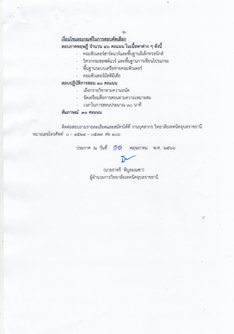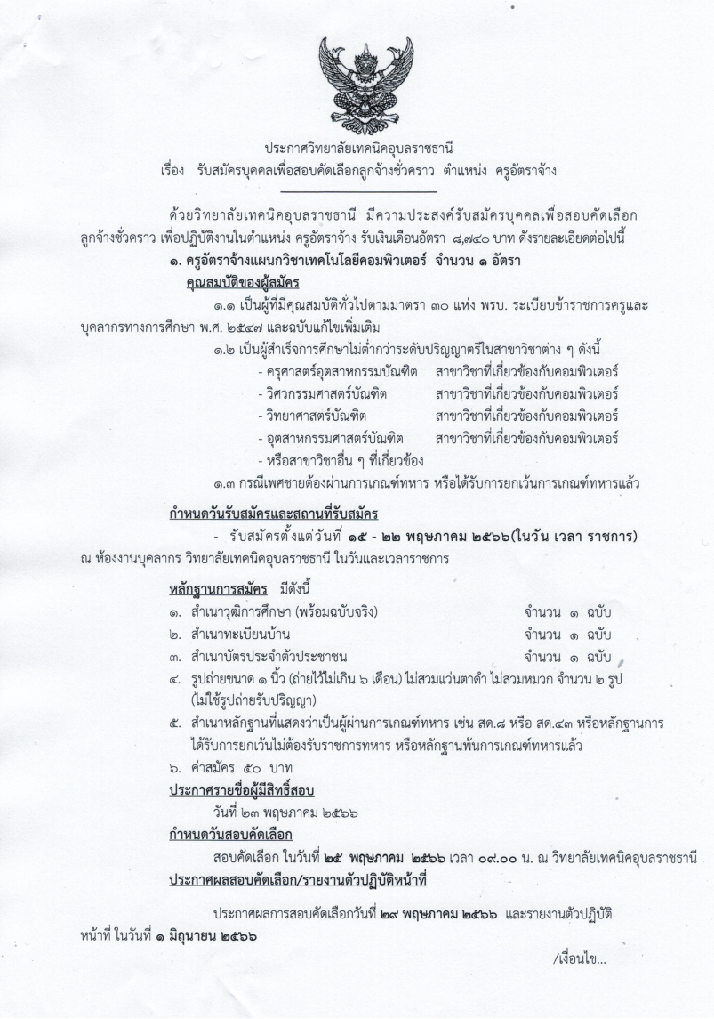 ตามประกาศวิทยาลัยเทคนิคอุบลราชธานี เรื่อง รับส (เพิ่มเติม…)