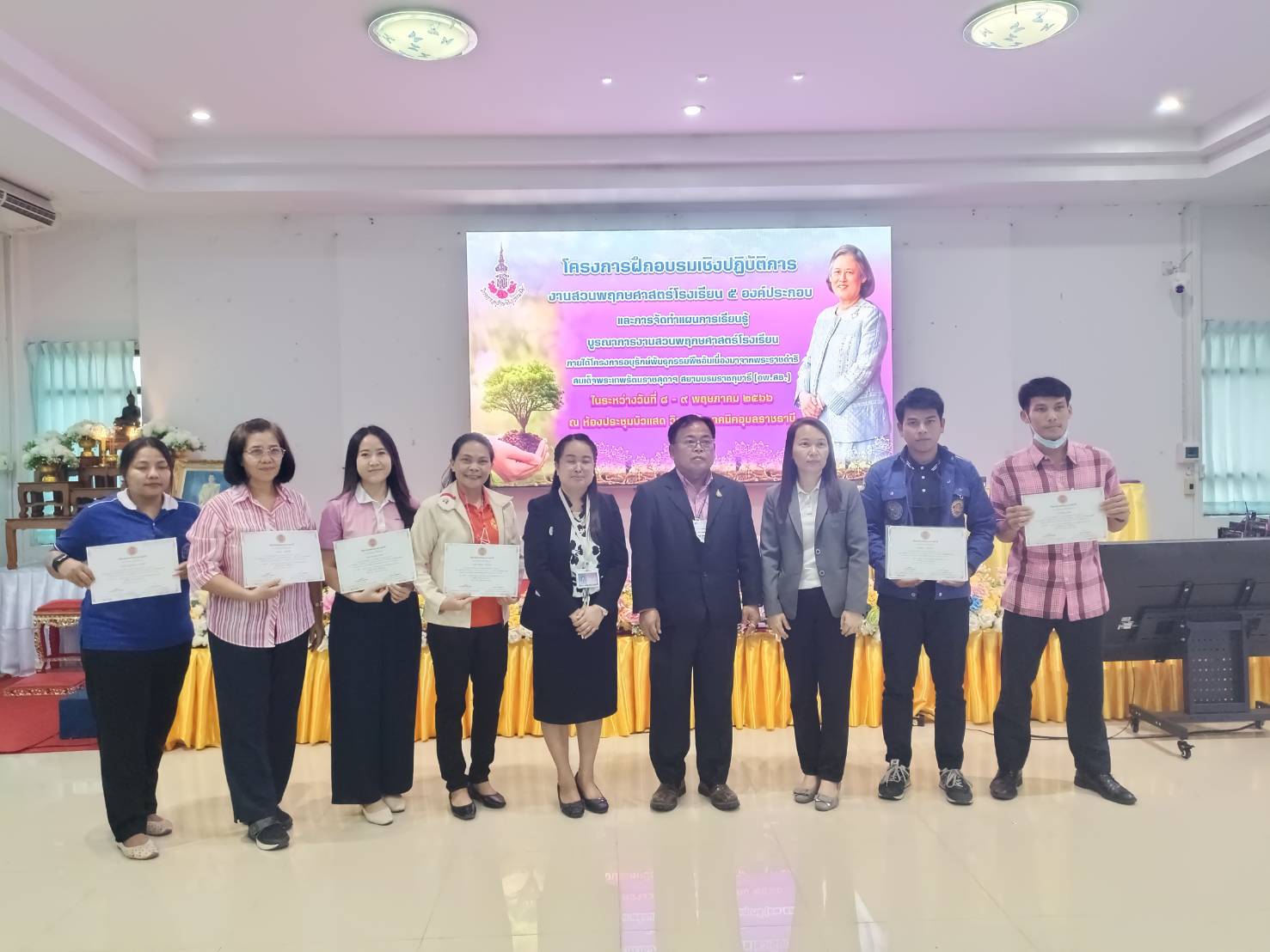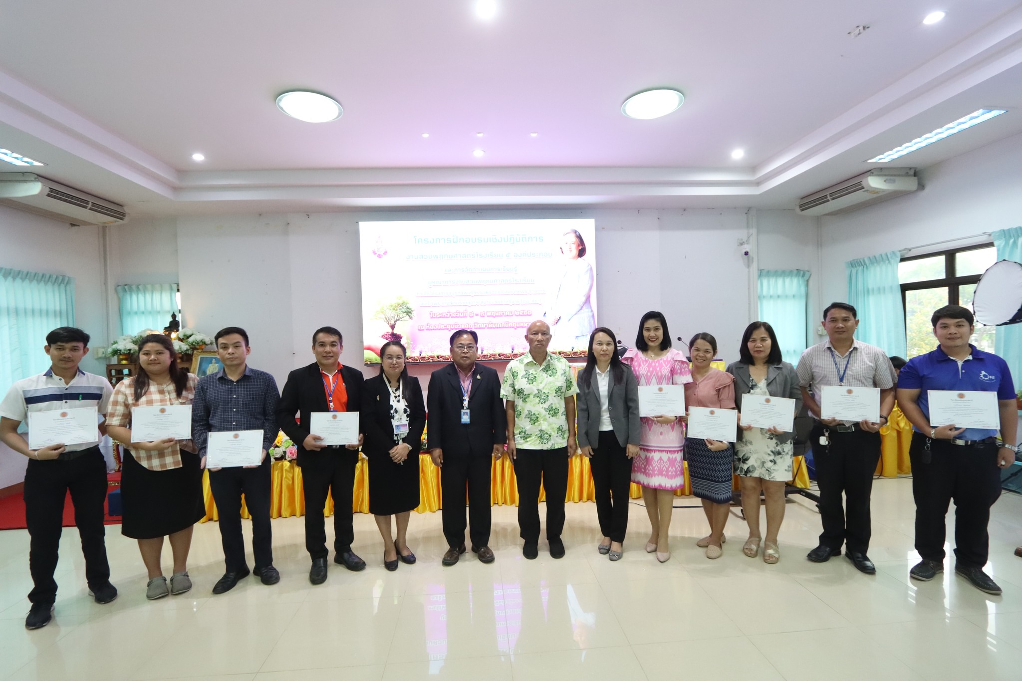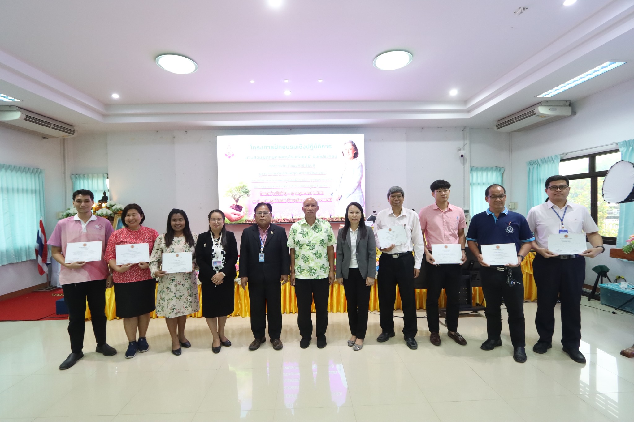 พิธีปิดและมอบเกียรติบัตรให้แก่ผู้เข้าร่วมโครงการฝึกอบรมเชิงปฏิบัติการงานสวนพฤกษศาสตร์โรงเรียน ๕ องค์ประกอบ และจัดทำแผนการเรียนรู้ บูรณาการงานสวนพฤกษศาสตร์โรงเรียน