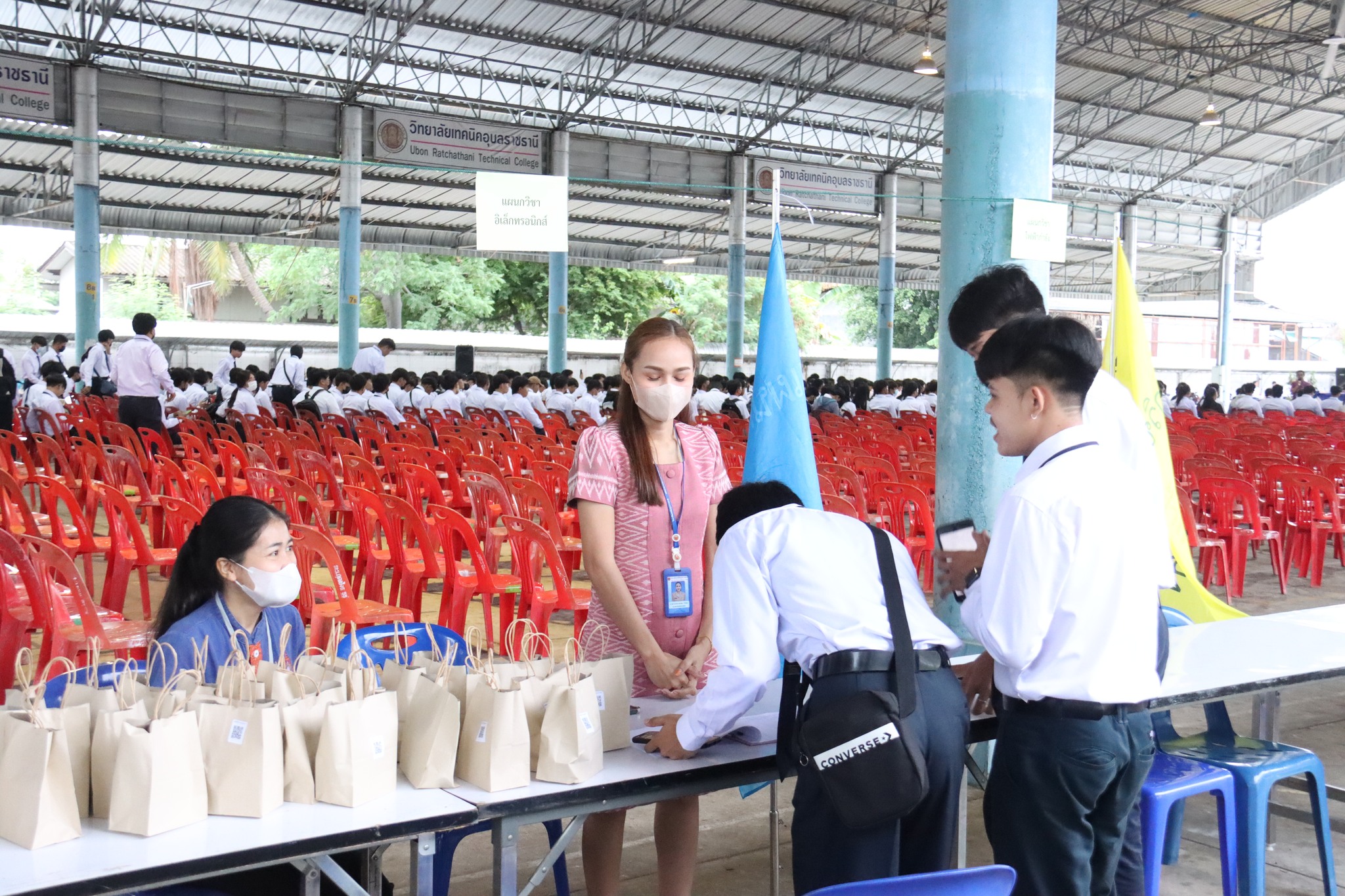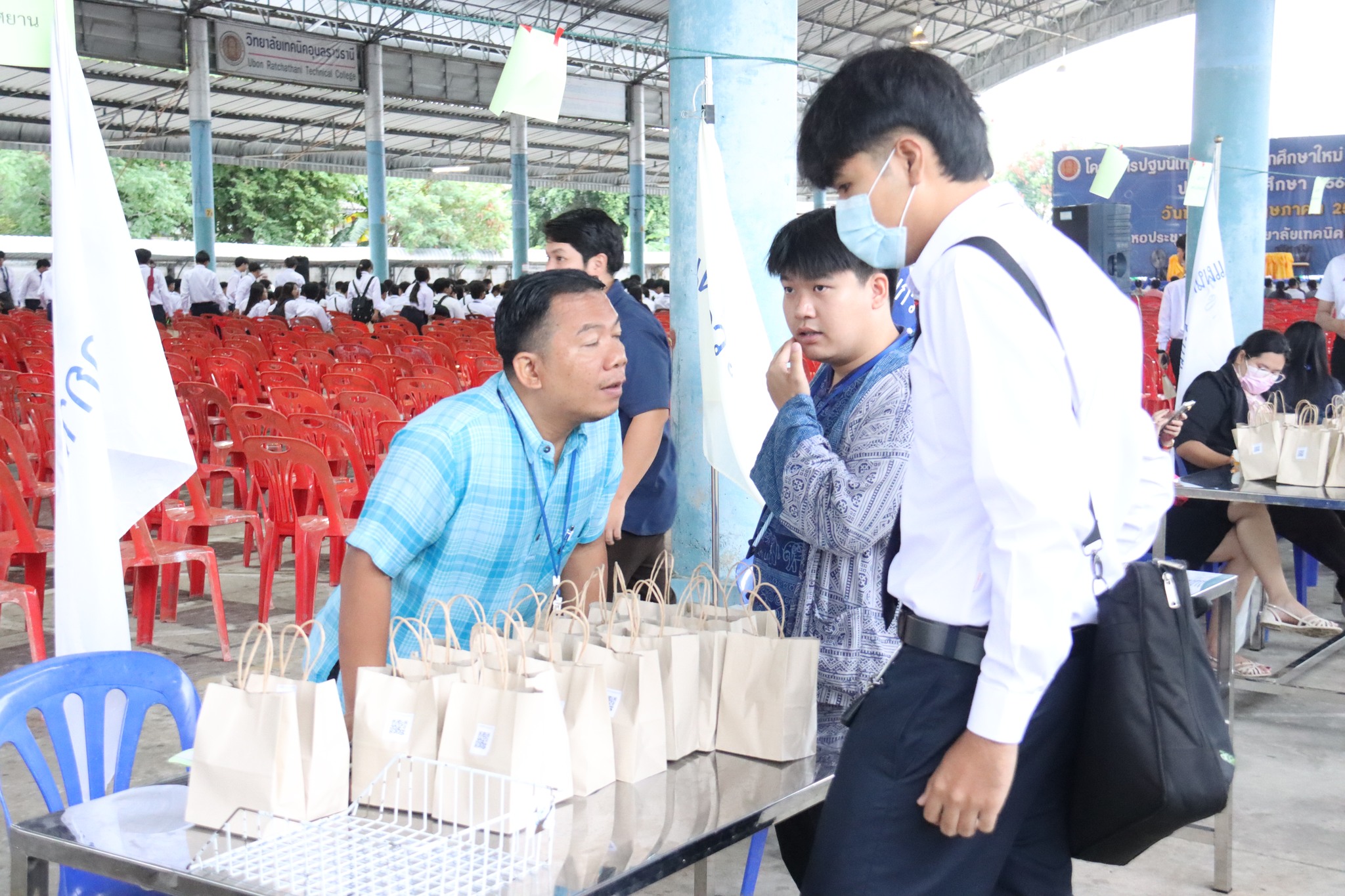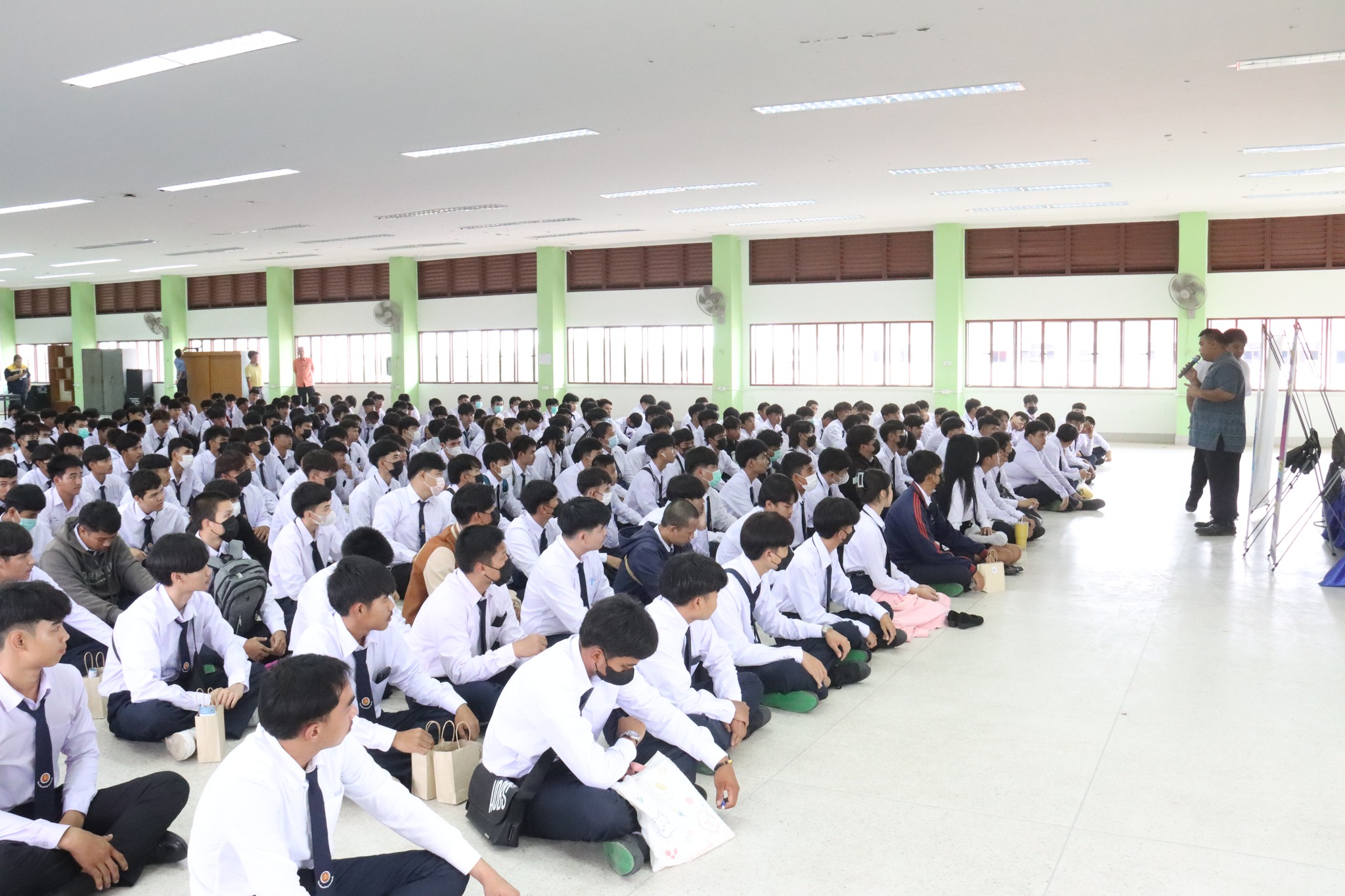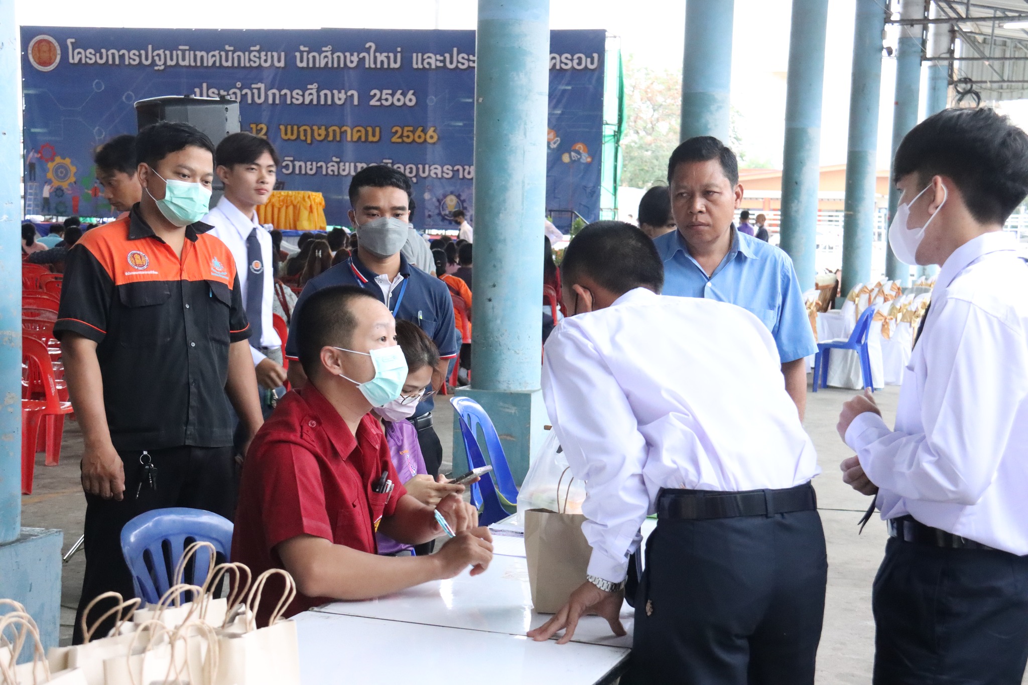 วันที่ ๑๒ พฤษภาคม ๒๕๖๖ เวลา ๐๘.๐๐ น. นายธาตรี พิบูลมณฑา ผู้อำนวยการวิทยาลัยเทคนิคอุบลราชธานี ให้เกียรติกล่าวให้โอวาทแก่นักศึกษาใหม่ในโครงการปฐมนิเทศนักเรียน นักศึกษาใหม่ และประชุมผู้ปกครอง ประจำปีการศึกษา ๒๕๖๖ ณ หอประชุมโดมใหญ่ วิทยาลัยเทคนิคอุบลราชธานี ซึ่งวันนี้เป็นระดับชั้น ปวส.๑ โดยจะแบ่งออกเป็น ๒ รอบ ได้แก่ รอบเช้า และรอบบ่าย ในการนี้มี นางสาวสายฝน สาระผล รองผู้อำนวยการฝ่ายบริหารทรัพยากร นางราตรี สะดีวงษ์ รองผู้อำนวยการฝ่ายแผนงานและความร่วมมือ นายไวพจน์ ศรีธัญ รองผู้อำนวยการฝ่ายพัฒนากิจการนักเรียนนักศึกษา นายสุวิชา มั่นยืน รองผู้อำนวยการฝ่ายวิชาการ พร้อมด้วยหัวหน้าแผนกวิชา หัวหน้างาน ครู นักศึกษา และผู้ปกครอง เข้าร่วมกิจกรรมอย่างพร้อมเพรียง