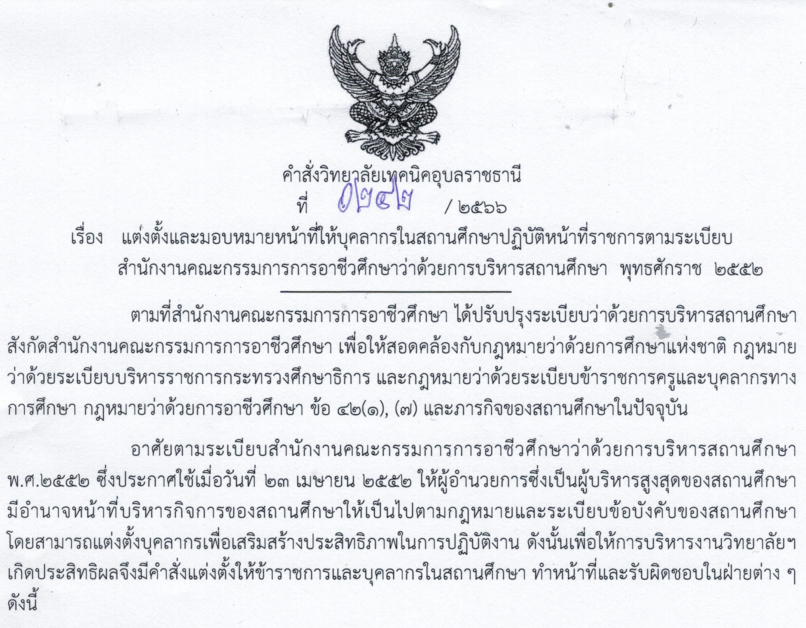 คำสั่งวิทยาลัยเทคนิคอุบลราชธานี 2566