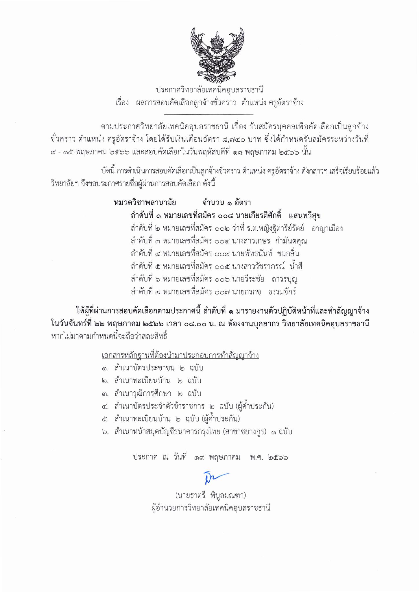 ประกาศวิทยาลัยเทคนิคอุบลราชธานี