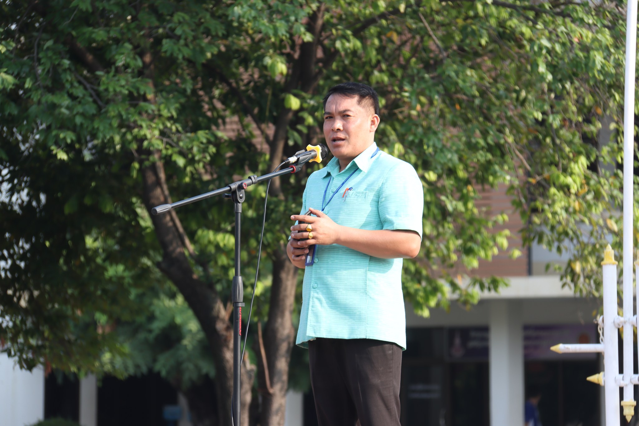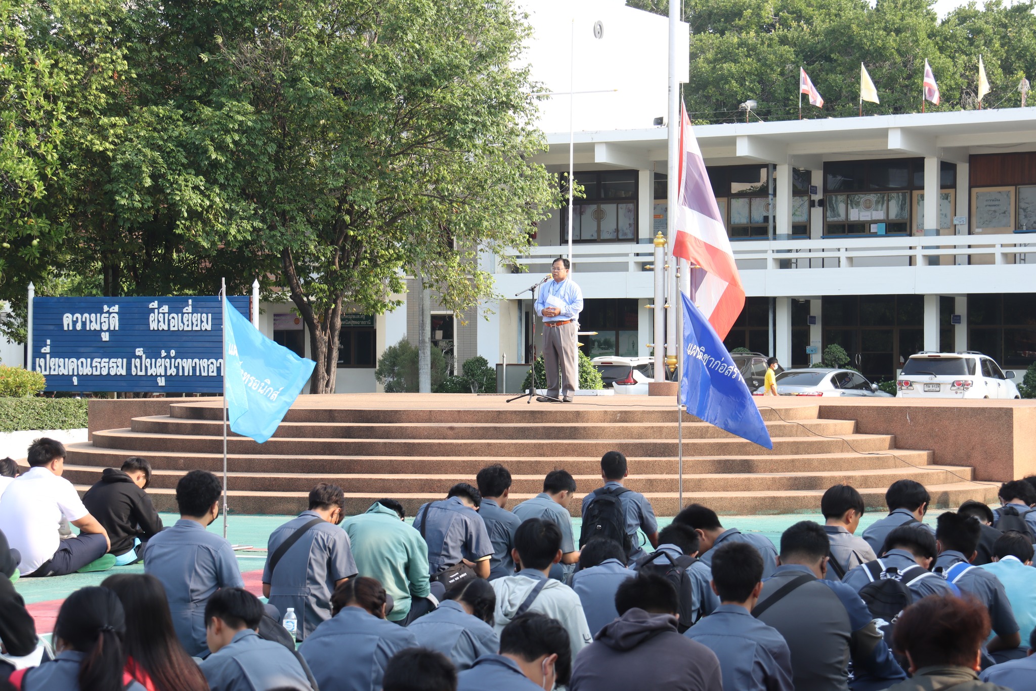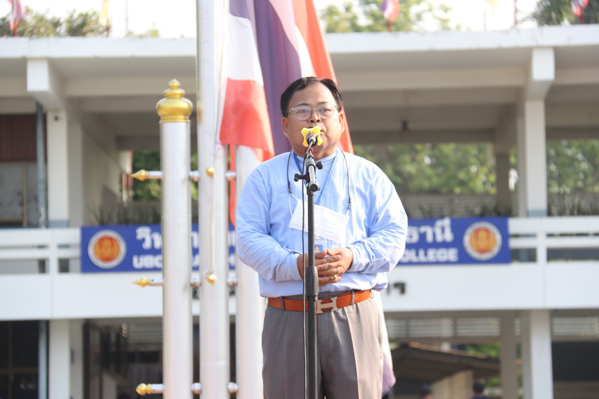 วันที่ ๑๙ พฤษภาคม ๒๕๖๖ เวลา ๐๗.๓๐ น. นายธาตรี พิบูลมณฑา ผู้อำนวยการวิทยาลัยเทคนิคอุบลราชธานี ได้มอบหมายให้ นายสุวิชา มั่นยืน รองผู้อำนวยการฝ่ายวิชาการให้โอวาทแก่นักเรียน นักศึกษา ณ ลานกิจกรรมหน้าเสาธง โดยเน้นย้ำถึงความสำคัญในการเข้าร่วมกิจกรรมของวิทยาลัยเทคนิคอุบลราชธานี และการมีความรับผิดชอบต่อหน้าที่ของนักเรียน นักศึกษา ในการนี้มี นางสาวสายฝน สาระผล รองผู้อำนวยการฝ่ายบริหารทรัพยากร นางราตรี สะดีวงศ์ รองผู้อำนวยการฝ่ายแผนงานและความร่วมมือ นายไวพจน์ ศรีธัญ รองผู้อำนวยการฝ่ายพัฒนากิจการนักเรียนนักศึกษา พร้อมด้วยคณะครู บุคลากรทางการศึกษา และนักเรียน นักศึกษา เข้าร่วมกิจกรรมอย่างพร้อมเพรียง