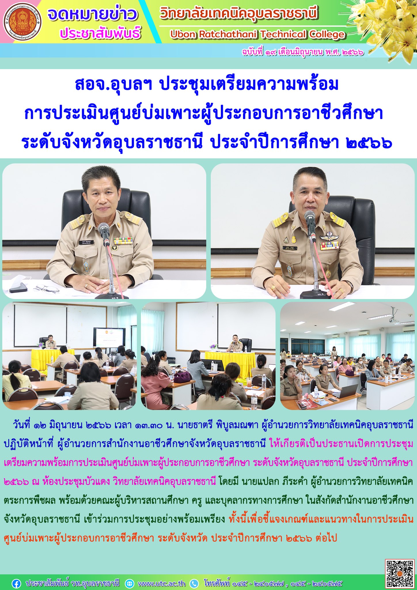การประชุมเตรียมความพร้อมการประเมินศูนย์บ่มเพาะผู้ประกอบการอาชีวศึกษา ระดับจังหวัดอุบลราชธานี ประจำปีการศึกษา ๒๕๖๖