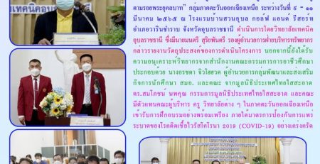 วันที่ ๑๙ กรกฎาคม ๒๕๖๖ เวลา ๐๙.๐๐ น. นายธาตรี พิบูลมณฑา ผู้อำนวยการวิทยาลัยเทคนิคอุบลราชธานี ให้เกียรติเป็นประธานในพิธีเปิดโครงการพัฒนาทักษะภาษาอังกฤษเพื่อเตรียมความพร้อมสู่การทำงาน ปีงบประมาณ ๒๕๖๖ และกล่าวพบปะผู้เข้าอบรม ณ ห้องประชุมบัวแสด วิทยาลัยเทคนิคอุบลราชธานี ซึ่งหมวดวิชาภาษาต่างประเทศ แผนกวิชาสามัญสัมพันธ์ เป็นผู้ดำเนินโครงการดังกล่าว โดยมี นางสาวสายฝน สาระผล รองผู้อำนวยการฝ่ายบริหารทรัพยากร นางราตรี สะดีวงศ์ รองผู้อำนวยการฝ่ายแผนงานและความร่วมมือ นายไวพจน์ ศรีธัญ รองผู้อำนวยการฝ่ายพัฒนากิจการนักเรียนนักศึกษา นายสุวิชา มั่นยืน รองผู้อำนวยการฝ่ายวิชาการ พร้อมด้วยคณะครู แผนกวิชาสามัญสัมพันธ์ นำนักเรียน นักศึกษา เข้าร่วมการอบรมอย่างพร้อมเพรียง ทั้งนี้เพื่อให้นักเรียน นักศึกษา มีความรู้และพัฒนาทักษะภาษาอังกฤษ พร้อมเข้าสู่งานอาชีพ กล้าคิด กล้าทำ กล้าแสดงออกในการสื่อสารภาษาอังกฤษ และได้แลกเปลี่ยนวัฒนธรรม เชื่อมความสัมพันธ์ระหว่างครู นักเรียน นักศึกษา ให้มีเจตคติที่ดีต่อการเรียนภาษาอังกฤษต่อไป
