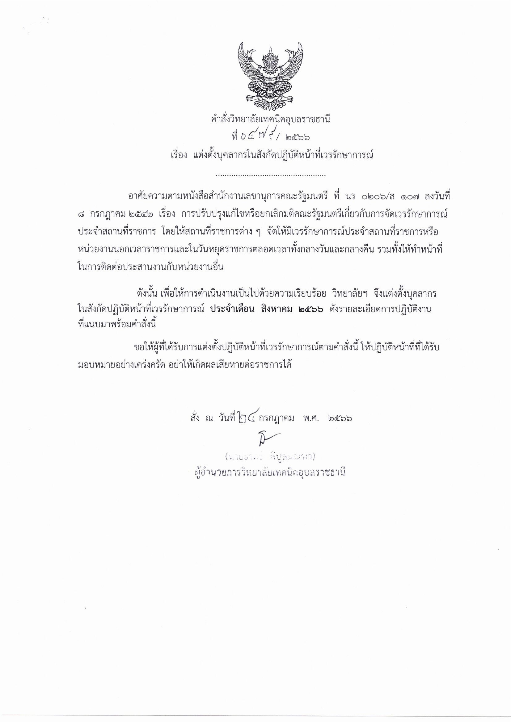แต่งตั้งบุคคลากรในสังกัดปฏิบัติหน้าที่เวรรักษาการณ์ ภาคกลางวัน ประจำเดือนสิงหาคม 2565