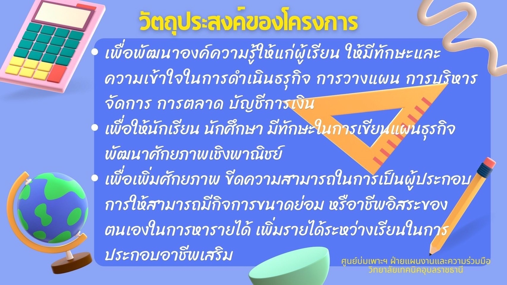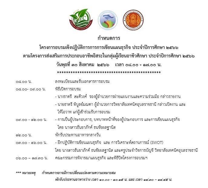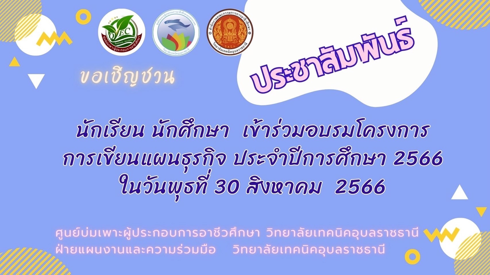 ขอเชิญชวน นักเรียน นักศึกษา เข้าร่วมอบรมโครงการ การเขียนแผนธุรกิจ ประจำปีการศึกษา ๒๕๖๖