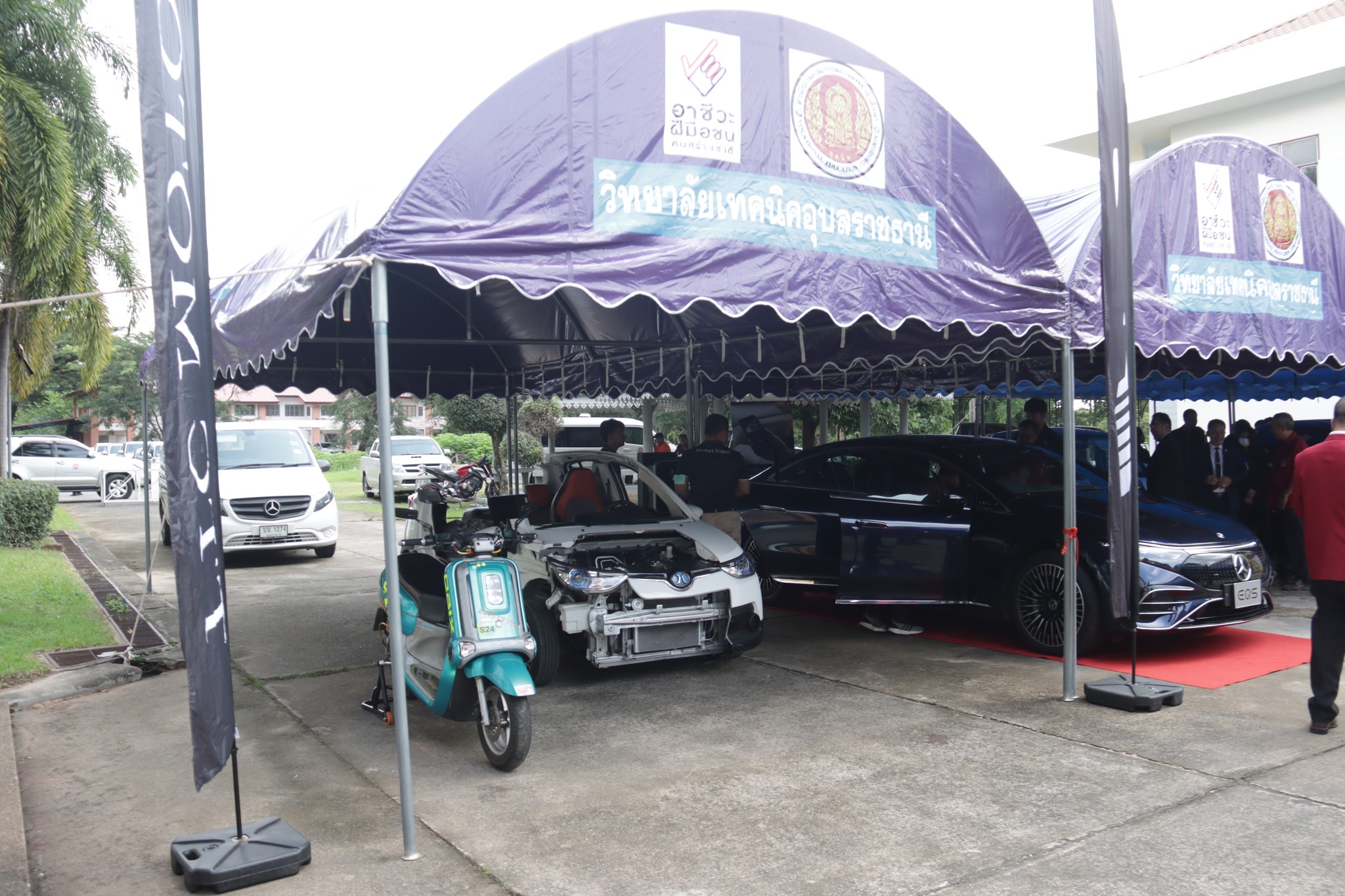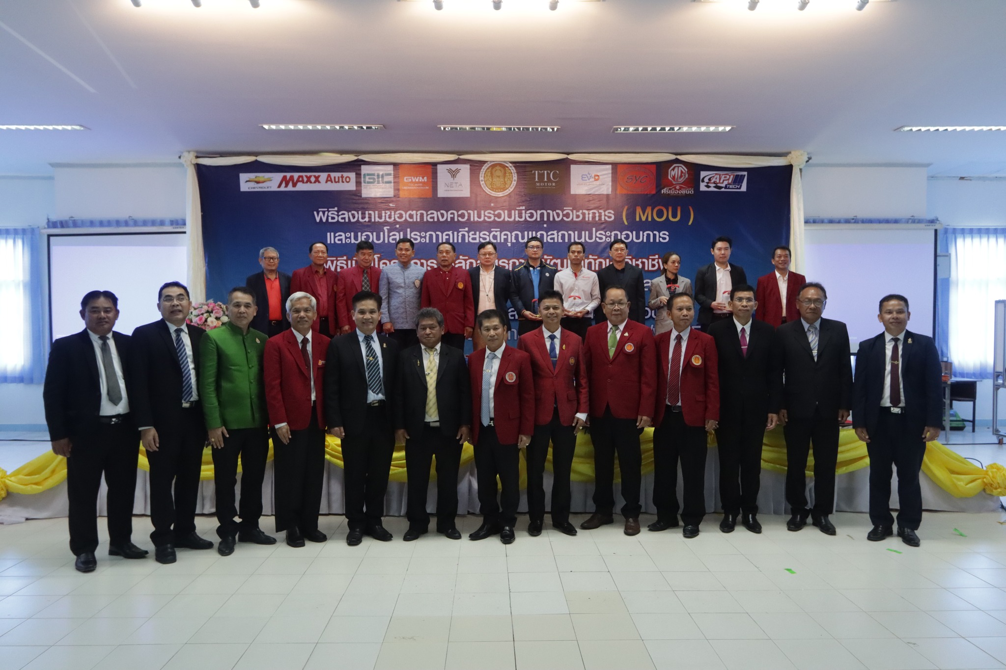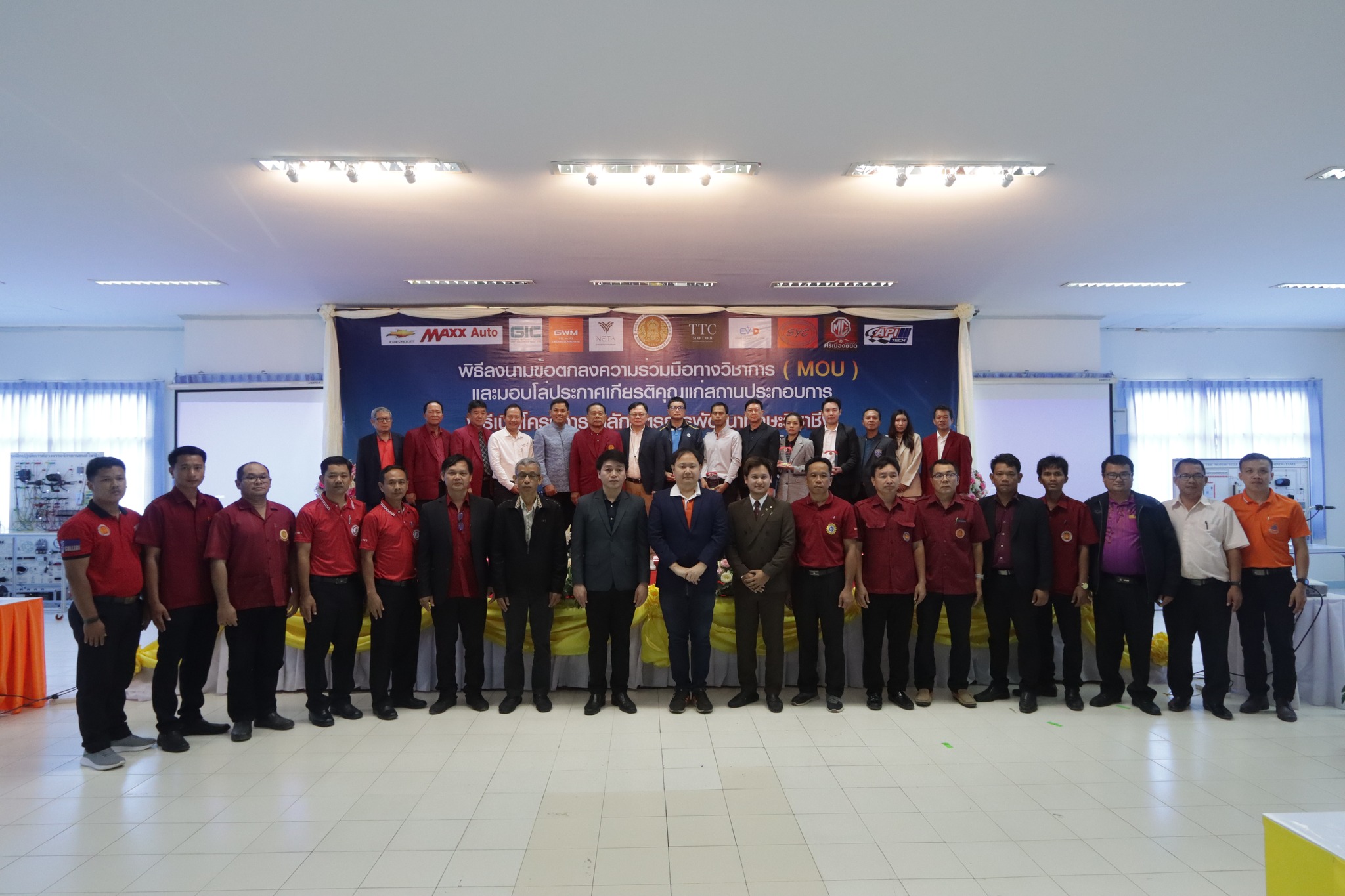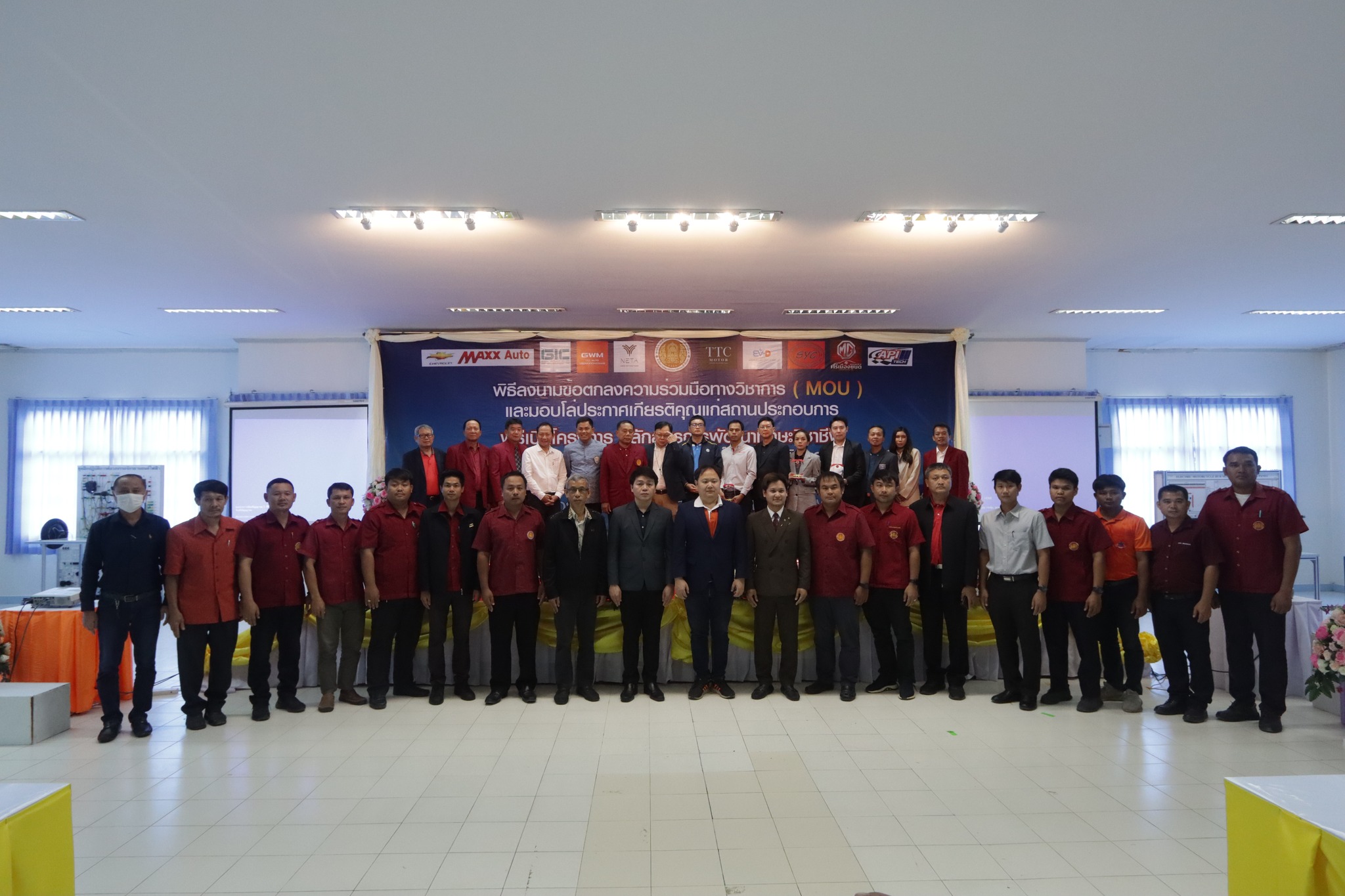 วันที่ ๑ กันยายน ๒๕๖๖ เวลา ๑๐.๐๐ น. นายลิขิต พลเหลา ผู้อำนวยการสถาบันการอาชีวศึกษาภาคตะวันออกเฉียงเหนือ ๔ ให้เกียรติเป็นประธานในพิธีลงนามข้อตกลงความร่วมมือทางวิชาการ (MOU) และมอบโล่ประกาศเกียรติคุณแก่สถานประกอบการ พิธีเปิดโครงการหลักสูตรการพัฒนาทักษะวิชาชีพและการสอนงานบริการยานยนต์ไฟฟ้าระดับกลาง และโครงการพัฒนาองค์ความรู้และทักษะในการประกอบการและการทำงานของกำลังคนในอุตสาหกรรมยานยนต์ไฟฟ้า (EV) ณ ห้องประชุมชั้น ๒ อาคารวิทยบริการ สถาบันการอาชีวศึกษาภาคตะวันออกเฉียงเหนือ ๔ ในการนี้ นายธาตรี พิบูลมณฑา ผู้อำนวยการวิทยาลัยเทคนิคอุบลราชธานี ปฏิบัติหน้าที่ ผู้อำนวยการสำนักงานอาชีวศึกษาจังหวัดอุบลราชธานี ให้เกียรติเข้าร่วมพิธีเปิด และร่วมลงนามข้อตกลงความร่วมมือทางวิชาการ (MOU) โดยมี สถานประกอบการทั้ง ๗ แห่ง ได้แก่ ๑.บริษัท วี กรุ๊ป เอ็น ที จำกัด ๒.บริษัท ศรีเมืองยนต์อุบล จำกัด ๓.บริษัท ซีซีซี ออโต้ จำกัด ๔.บริษัท ทีทีซี มอเตอร์ อุบลราชธานี จำกัด ๕.บริษัท EV – D อุบลราชธานี จำกัด ๖.Maxx Auto Chevrolet และ ๗.บริษัท สมยง คาร์เซ็นเตอร์ จำกัด เข้าร่วมพิธีลงนามในครั้งนี้ ทั้งนี้มีคณะผู้บริหาร ครู และบุคลากรทางการศึกษา ในสังกัดสถาบันการอาชีวศึกษาภาคตะวันออกเฉียงเหนือ ๔ เข้าร่วมพิธีอย่างพร้อมเพรียง