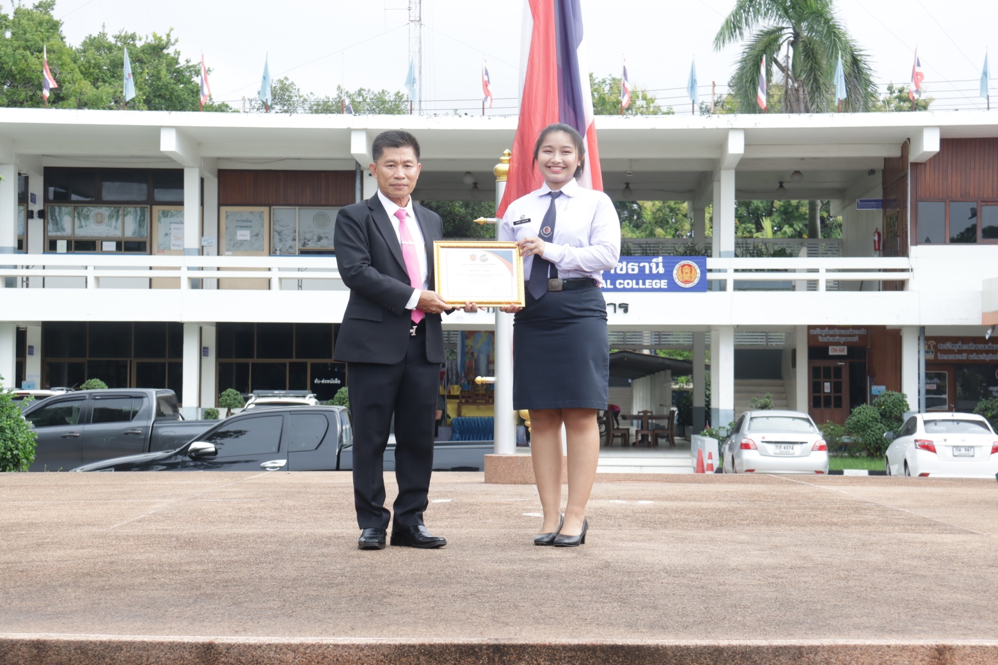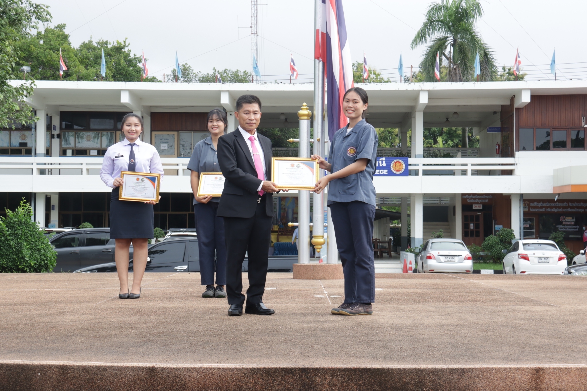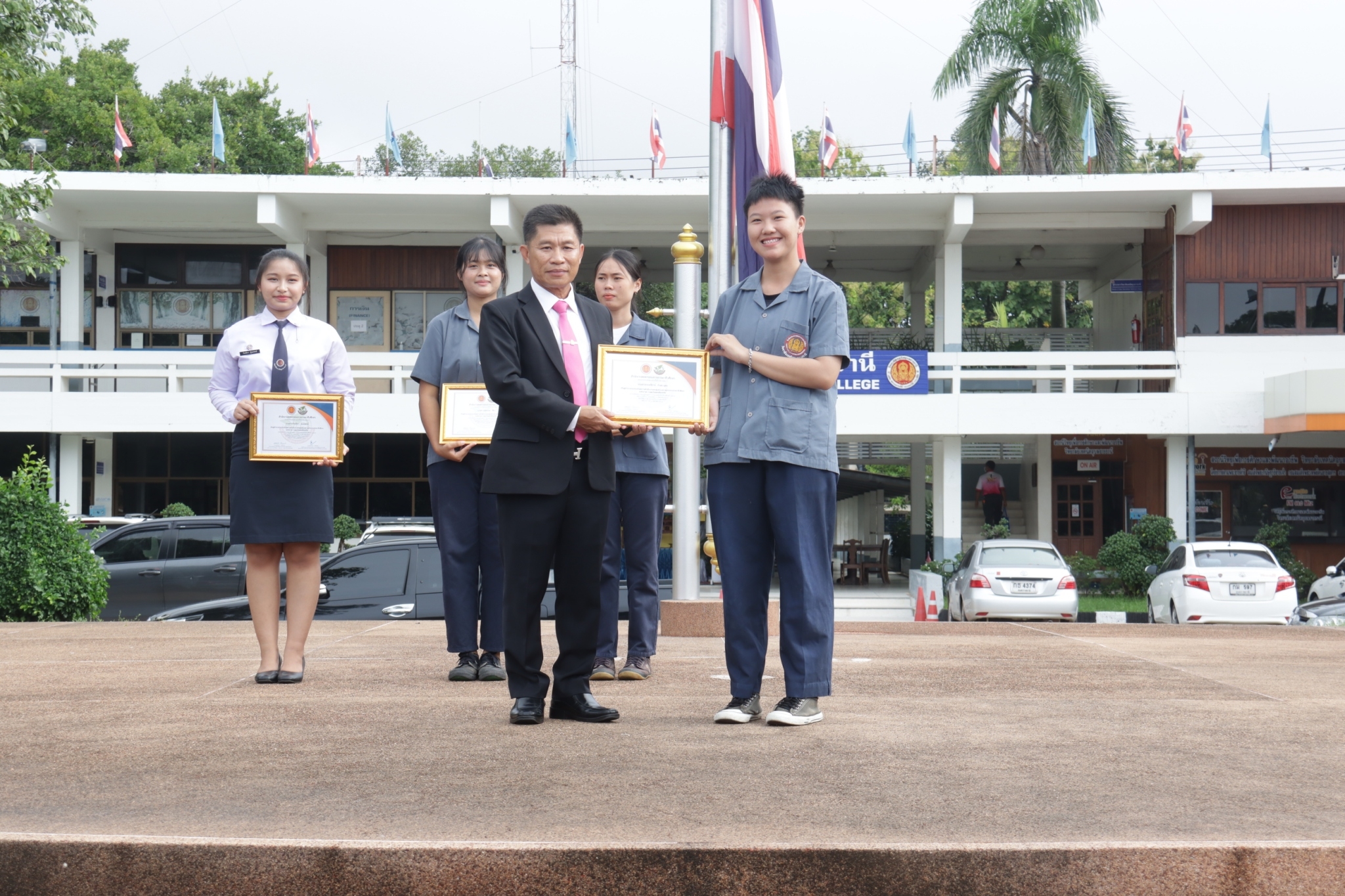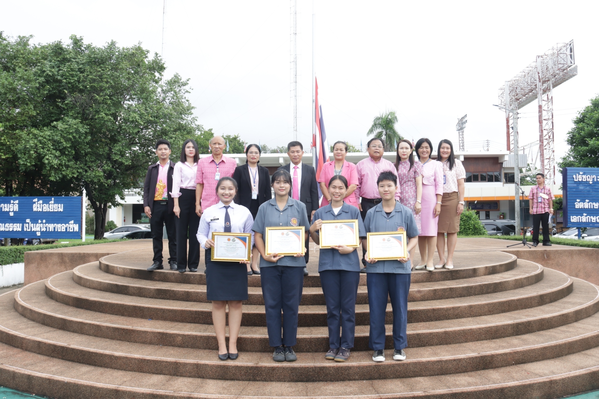 วันที่ ๕ กันยายน ๒๕๖๖ เวลา ๐๗.๓๐ น. นายธาตรี พิบูลมณฑา ผู้อำนวยการวิทยาลัยเทคนิคอุบลราชธานีให้เกียรติมอบเกียรติบัตรแก่ผู้เข้าร่วมการประเมินผลการดำเนินงานของศูนย์บ่มเพาะผู้ประกอบการอาชีวศึกษาระดับภาค ภาคตะวันออกเฉียงเหนือ โดยศูนย์บ่มเพาะผู้ประกอบการอาชีวศึกษา วิทยาลัยเทคนิคอุบลราชธานี ธุรกิจ Organic Earthworm มีผลคะแนนรวม ๘๘.๕๕ ได้รับสูงสุด ระดับ ๔ ดาว เป็นลำดับที่ ๕ ในจำนวน ๒๓ สถานศึกษา และให้โอวาทแก่นักเรียน นักศึกษา เรื่องความรับผิดชอบต่อหน้าที่ และการตรงต่อเวลา ณ ลานกิจกรรมหน้าเสาธง โดยมี นางสาวสายฝน สาระผล รองผู้อำนวยการฝ่ายบริหารทรัพยากร นางราตรี สะดีวงศ์ รองผู้อำนวยการฝ่ายแผนงานและความร่วมมือ นายไวพจน์ ศรีธัญ รองผู้อำนวยการฝ่ายพัฒนากิจการนักเรียนนักศึกษานายสุวิชา มั่นยืน รองผู้อำนวยการฝ่ายวิชาการ นางสุภาพร ไชยชนะ หัวหน้างานส่งเสริมผลิตผลการค้าและประกอบธุรกิจ และครูที่ปรึกษาธุรกิจ นายอิทธิวัฒน์ ไทยแท้ นางมนัสนันท์ ไทยแท้ นายธานินทร์ สันตวงษ์ นางสาววรางคณา สายใหม ครูแผนกวิชาสามัญสัมพันธ์ และนางกัลยกร อมรคำตัน ครูแผนกวิชาการบัญชี พร้อมด้วยคณะครู และนักเรียน นักศึกษา เข้าร่วมกิจกรรมอย่างพร้อมเพรียง