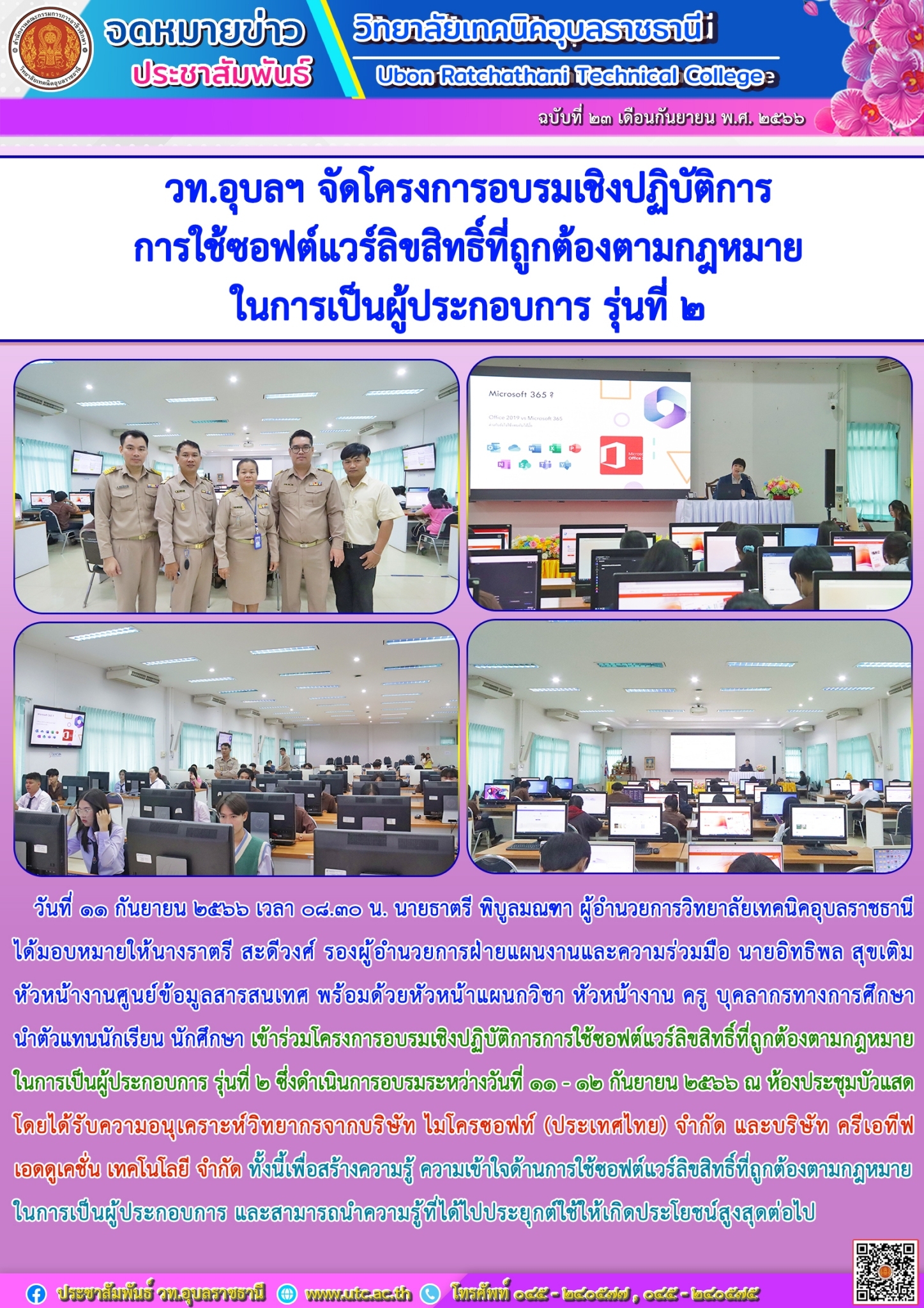 FacebookTwitterLineวันที่ ๑๔ กรกฎาคม ๒๕๖๗ ที่ผ่านมา นายธาตรี พิบูลมณฑา ผู้อำนวยการวิทยาลัยเทคนิคอุบลราชธานี มอบหมายให้ นางสาวศวิตา แสงงาม (เพิ่มเติม…)