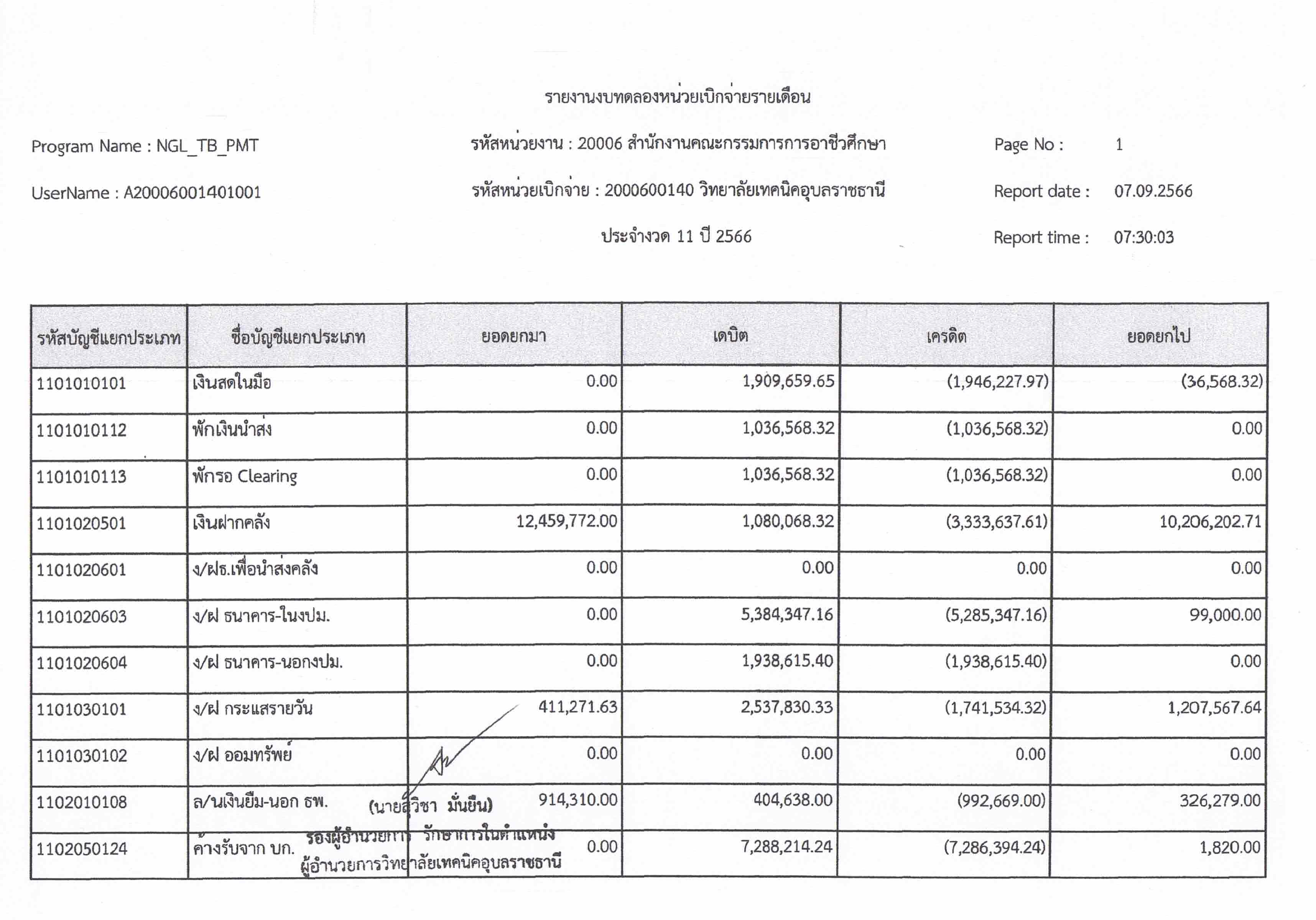 รายงานงบทดลองประจำเดือนสิงหาคม 2566