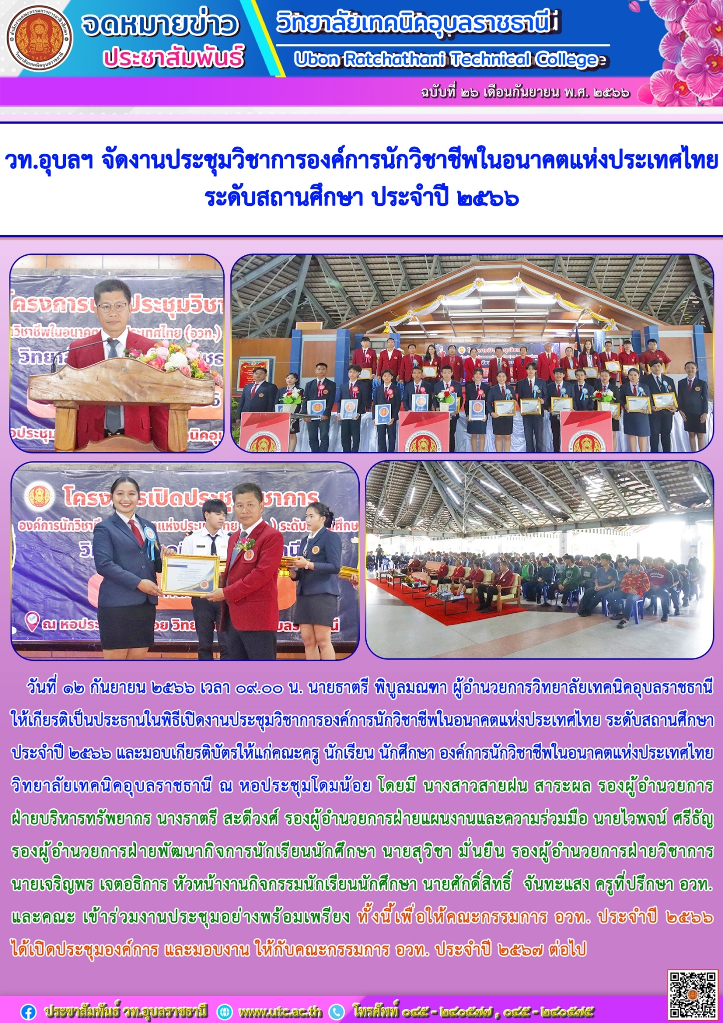 วท.อุบลฯ จัดงานประชุมวิชาการองค์การนักวิชาชีพในอนาคตแห่งประเทศไทย ระดับสถานศึกษา ประจำปี ๒๕๖๖