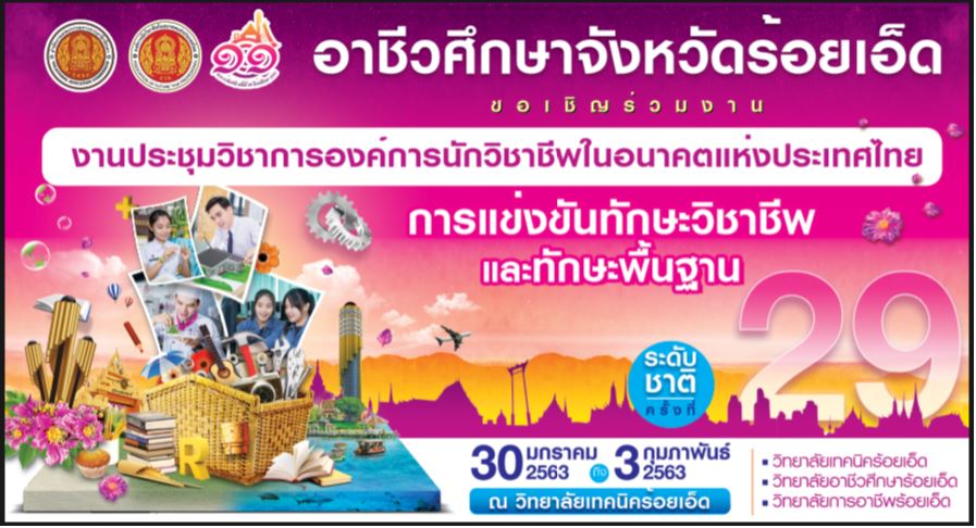 ตามที่ สำนักงานคณะกรรมการการอาชีวศึกษา อนุมัติให้องค์การนักวิชาชีพในอนาคตแห่งประเทศไทยจัดงานประชุมวิชาการองค์การนักวิชาชีพในอนาคตแห่งประเทศไทย การแข่งขันทักษะวิชาชีพ และทักษะพื้นฐาน ระดับชาติ ครั้งที่ 29 ประจำปีการศึกษา 2562 ในระหว่างวันที่ 30 มกราคม – 3 กุมภาพันธ์ 2563 ณ จังหวัดร้อยเอ็ด ดังนั้น เพื่อให้การจัดงานฯ ดังกล่าว เป็นไปด้วยความเรียบร้อย มีประสิทธิภาพ และบรรลุ วัตถุประสงค์ สำนักงานคณะกรรมการการอาชีวศึกษา จึงแต่งตั้งคณะกรรมการดำเนินงานจัดงานประชุมวิชาการ องค์การนักวิชาชีพในอนาคตแห่งประเทศไทย การแข่งขันทักษะวิชาชีพ และทักษะพื้นฐาน ระดับชาติ ครั้งที่ 29 ประจำปีการศึกษา 2562 ซึ่งประกอบด้วยผู้ดำรงตำแหน่ง และรายนาม ดังเอกสารที่แนบมานี้
