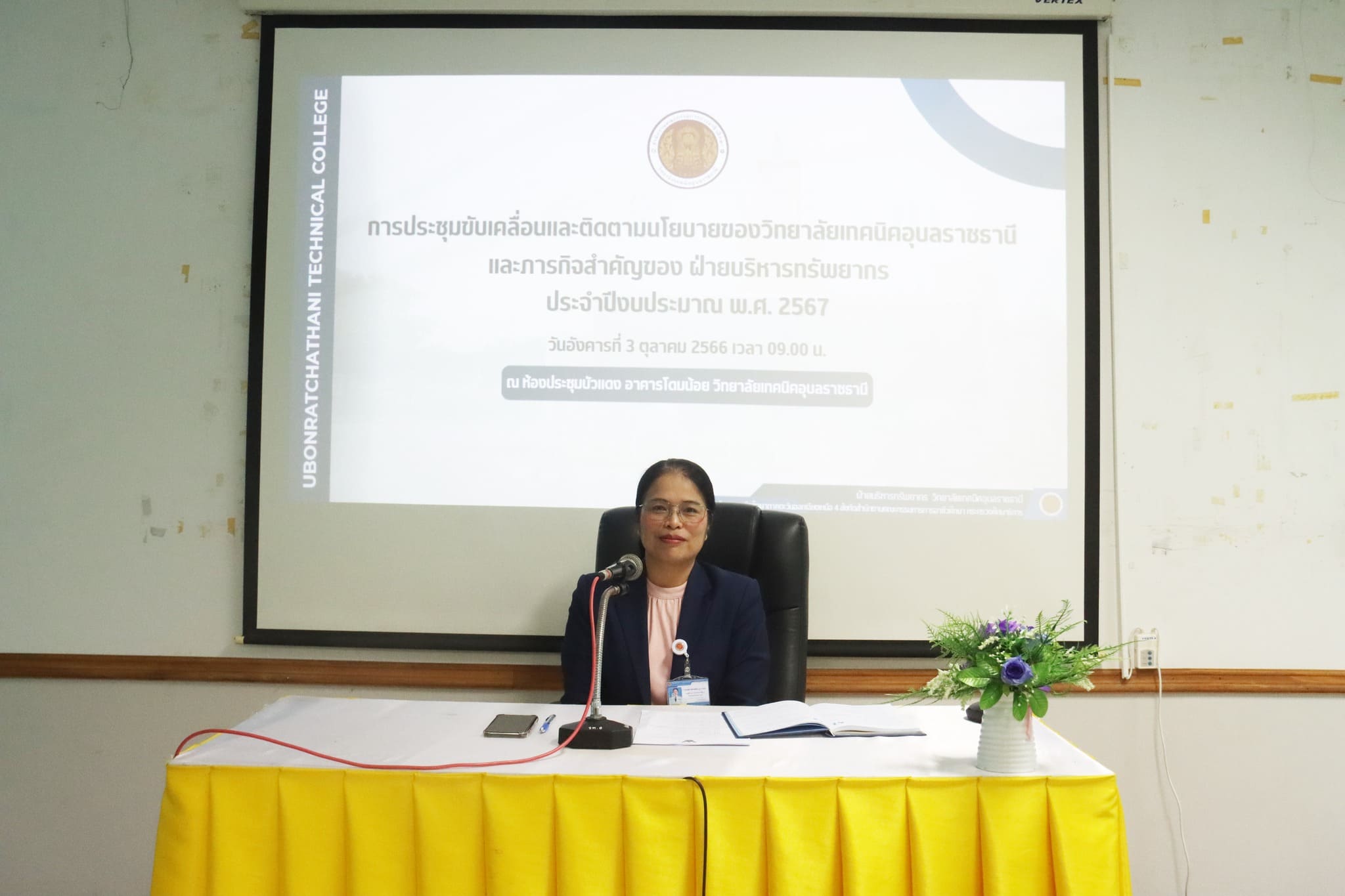 รองผู้อำนวยการฝ่ายบริหารทรัพยากร จัดประชุมขับเคลื่อนและติดตามนโยบายของวิทยาลัยเทคนิคอุบลราชธานี ฯ