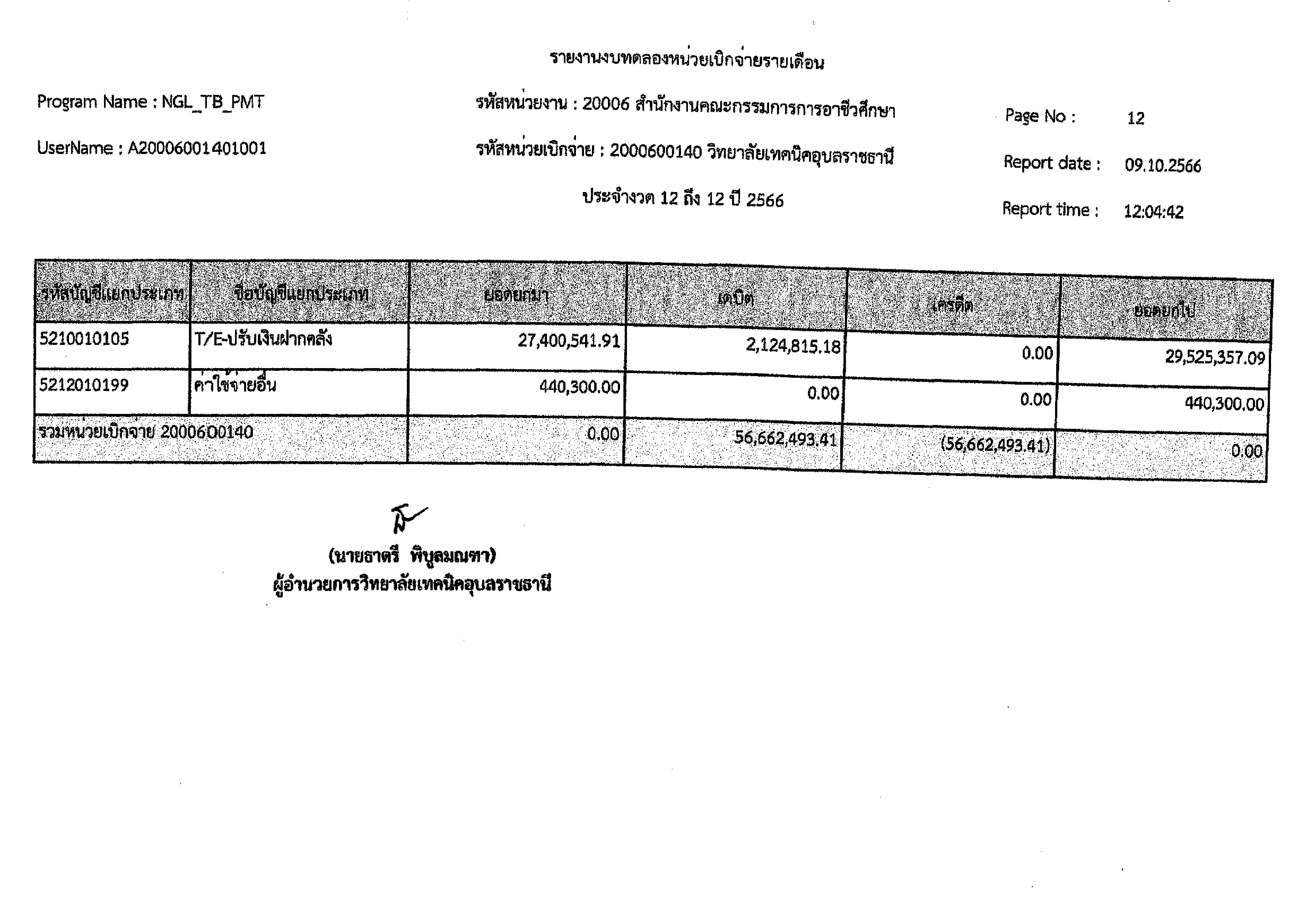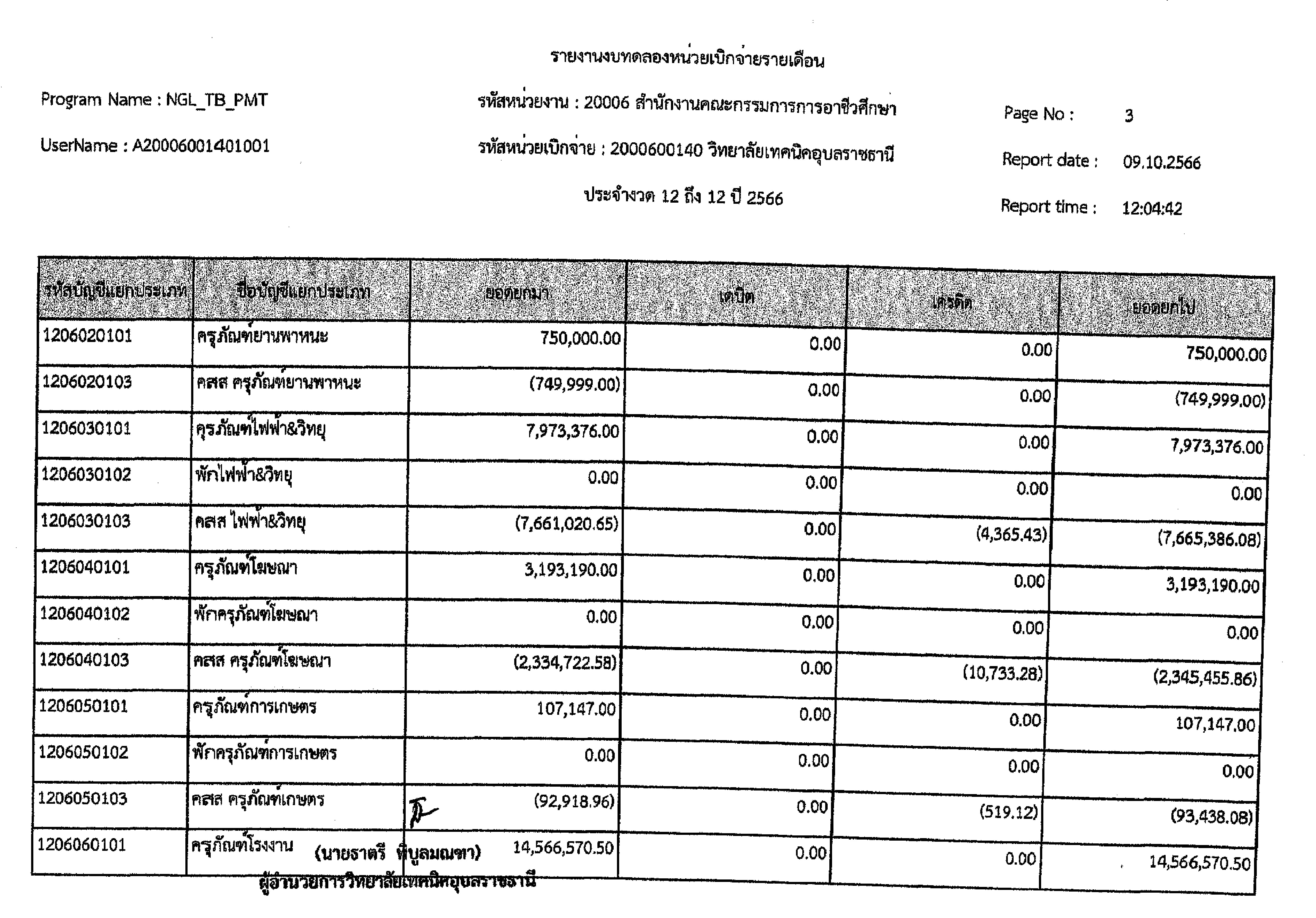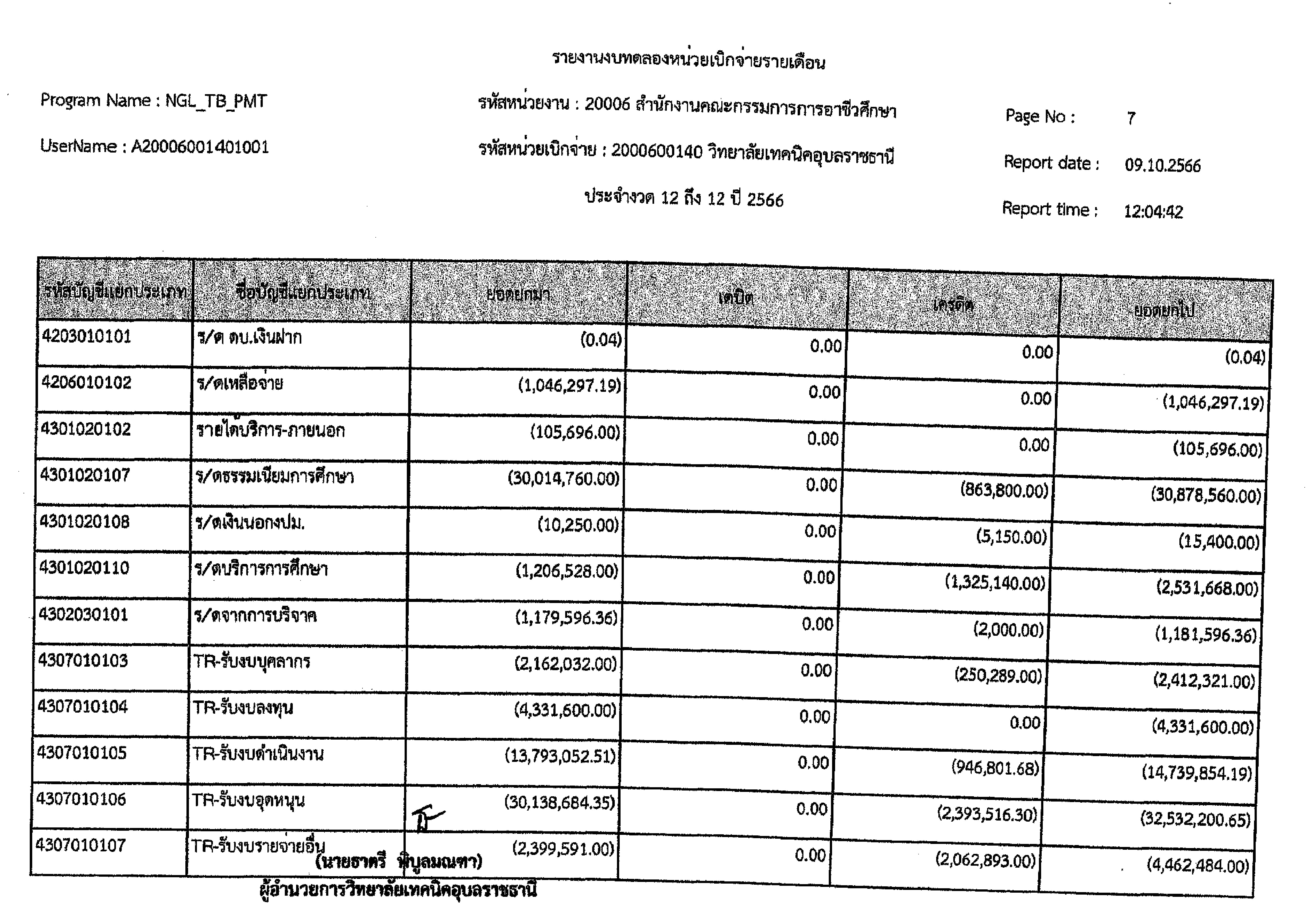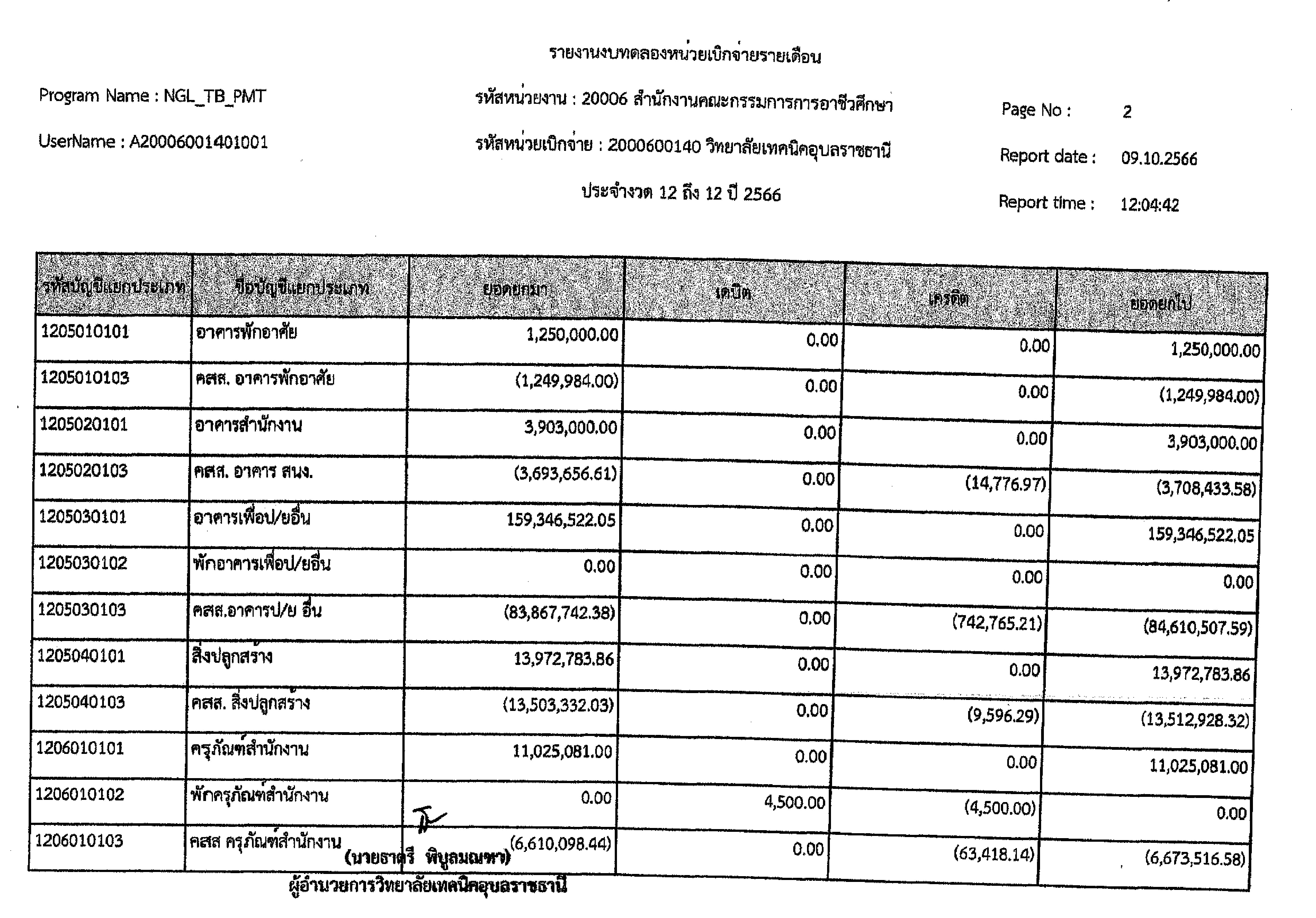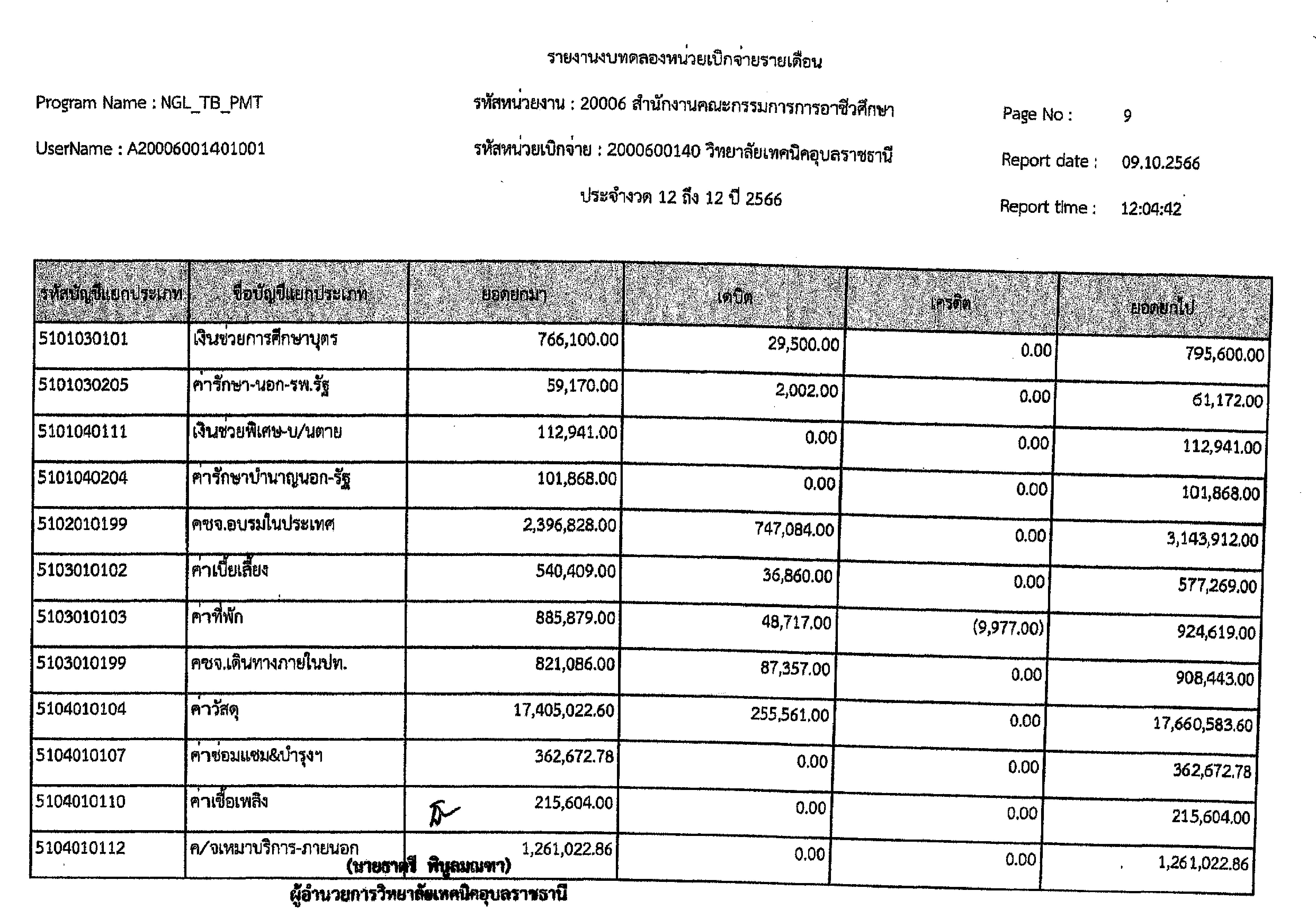 รายงานงบทดลองประจำเดือนกันยายน 2566